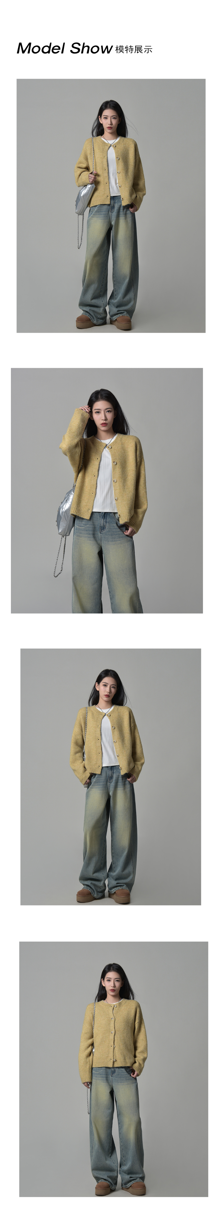 SIXI四喜家秋冬 普吉鎮日落 短款針織開衫女軟糯疊穿外搭毛衣外套