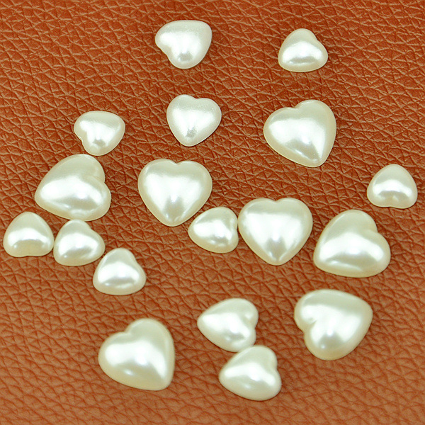 珍珠批发 米白色桃心珍珠 爱心珍珠 手机壳diy美容平底半面珍珠