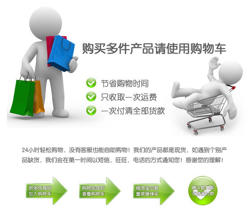 2.本店的货品都是实物拍摄,尽可能将照片与实物的色差降到小,但色差是在所难免的,色差、感觉不是想        像的那样(大小、光泽、手感等)没有注意看产品描述等主观意见,不能作为退货理由。由于质量问题需        要退货,各自承担自己发货的运费。由于质量问题需要换货,由店主承担所有换货运费。请买家垫付邮费将        产品寄回,本店收到后会检查确认,确是质量问题将退还路费或在下次购物时扣除,请勿选择到付,到付商        品一律拒签!