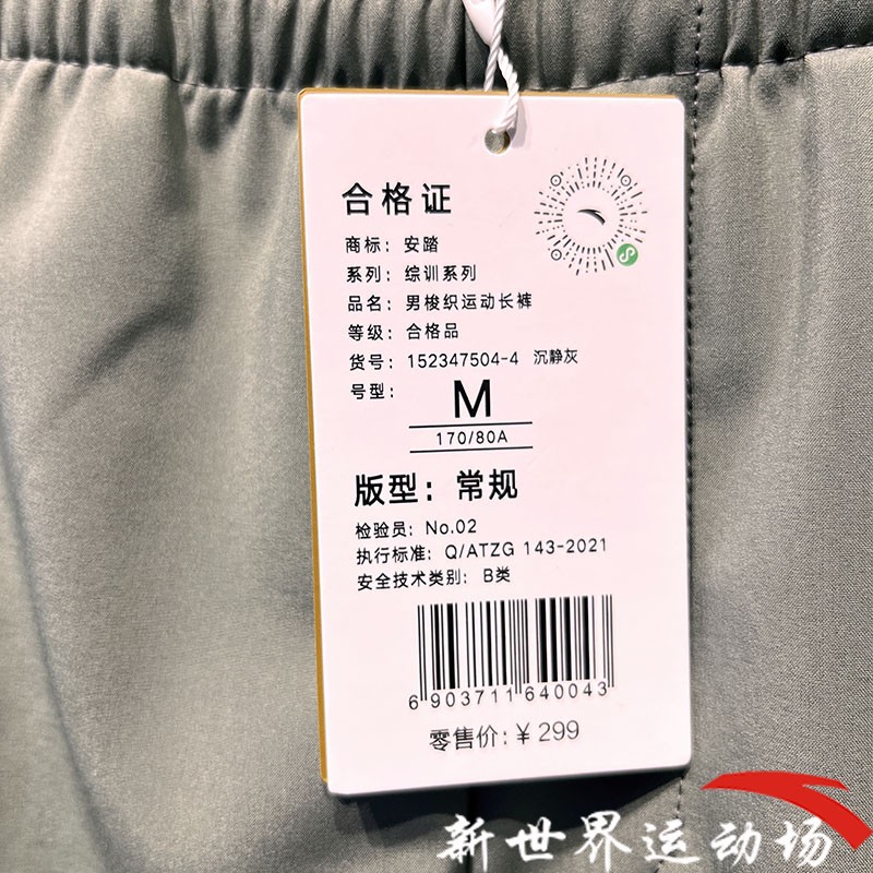 安踏男褲2023冬新款保暖舒適直筒加絨加厚運動梭織長褲152347504