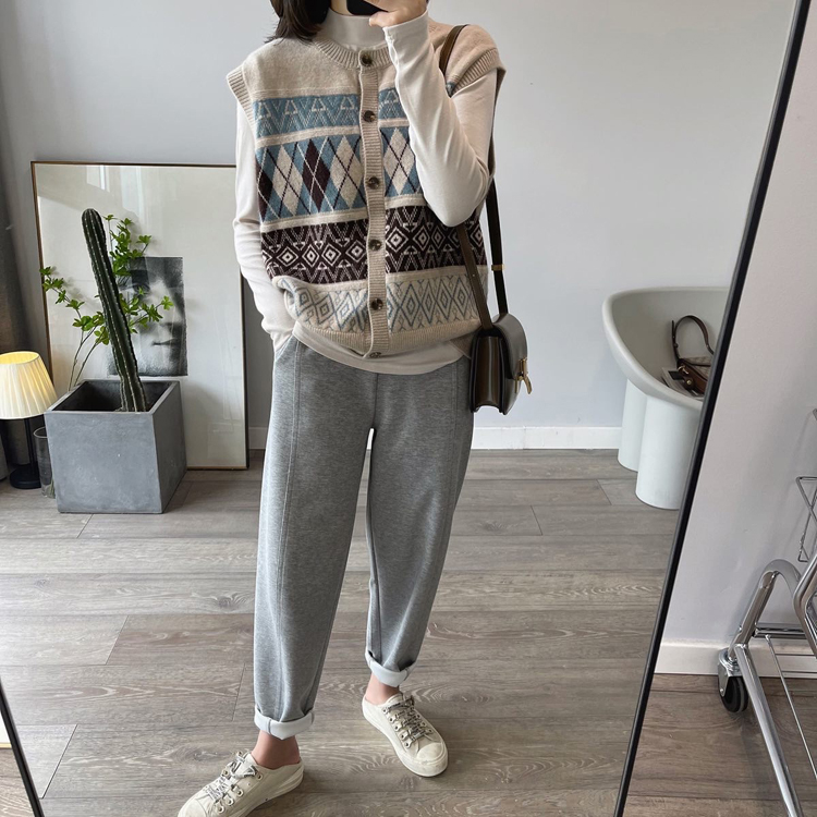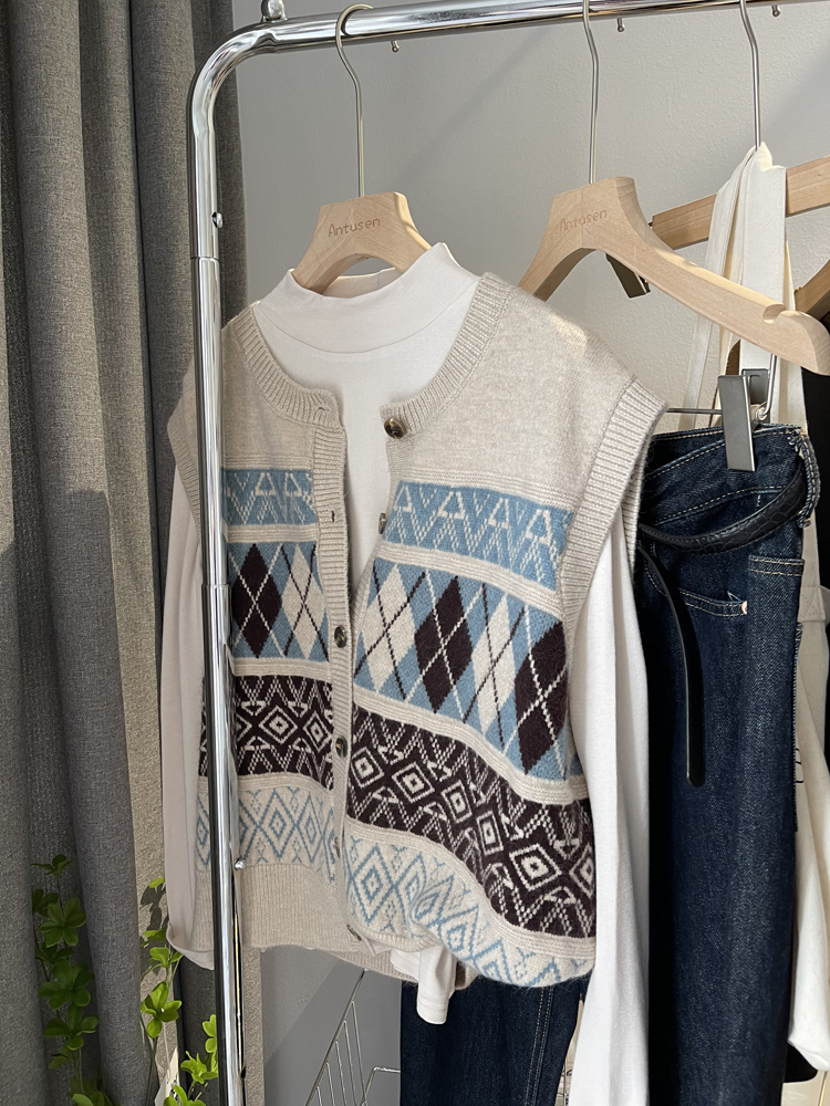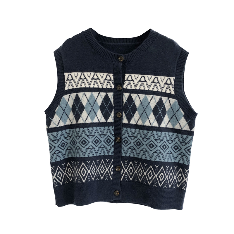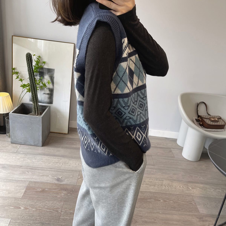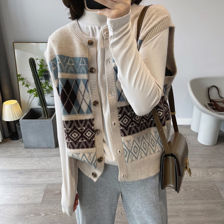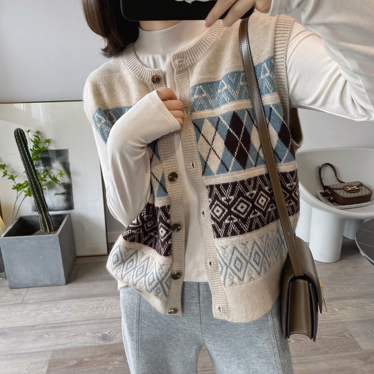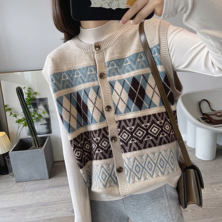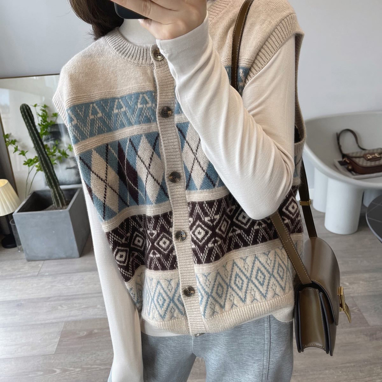 復古菱形提花針織馬甲女早春背心外穿2023年新款寬鬆韓版坎肩上衣