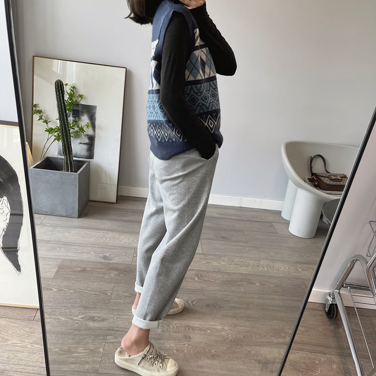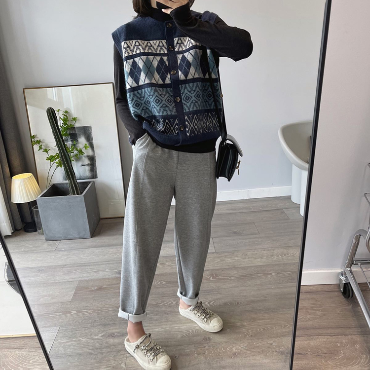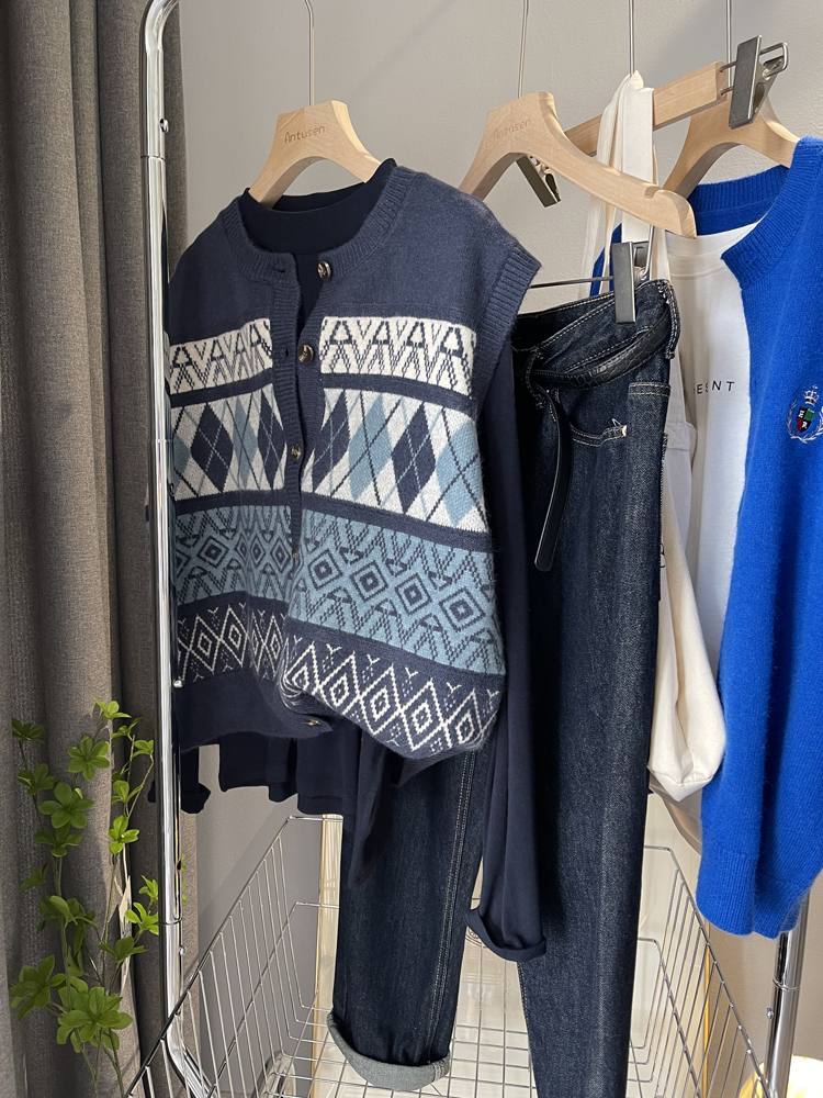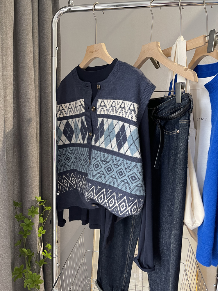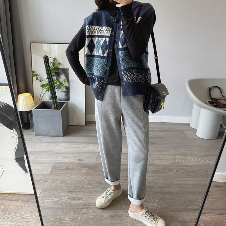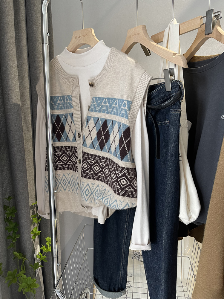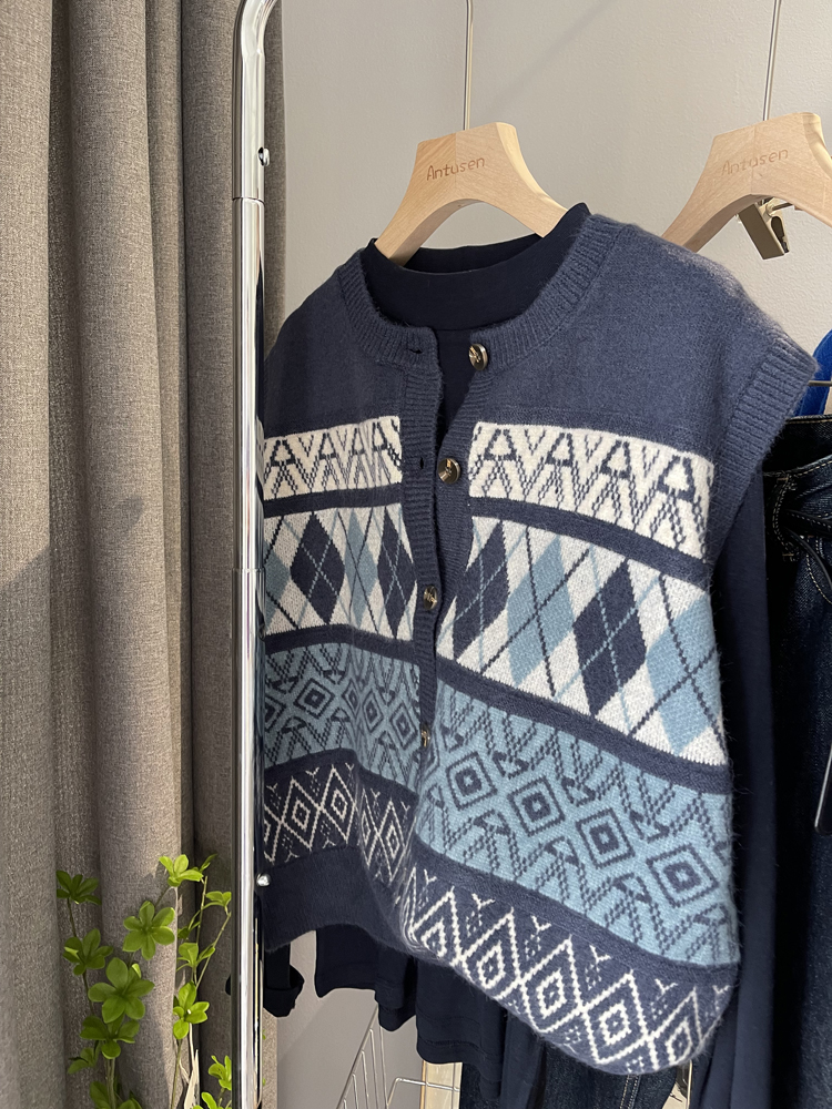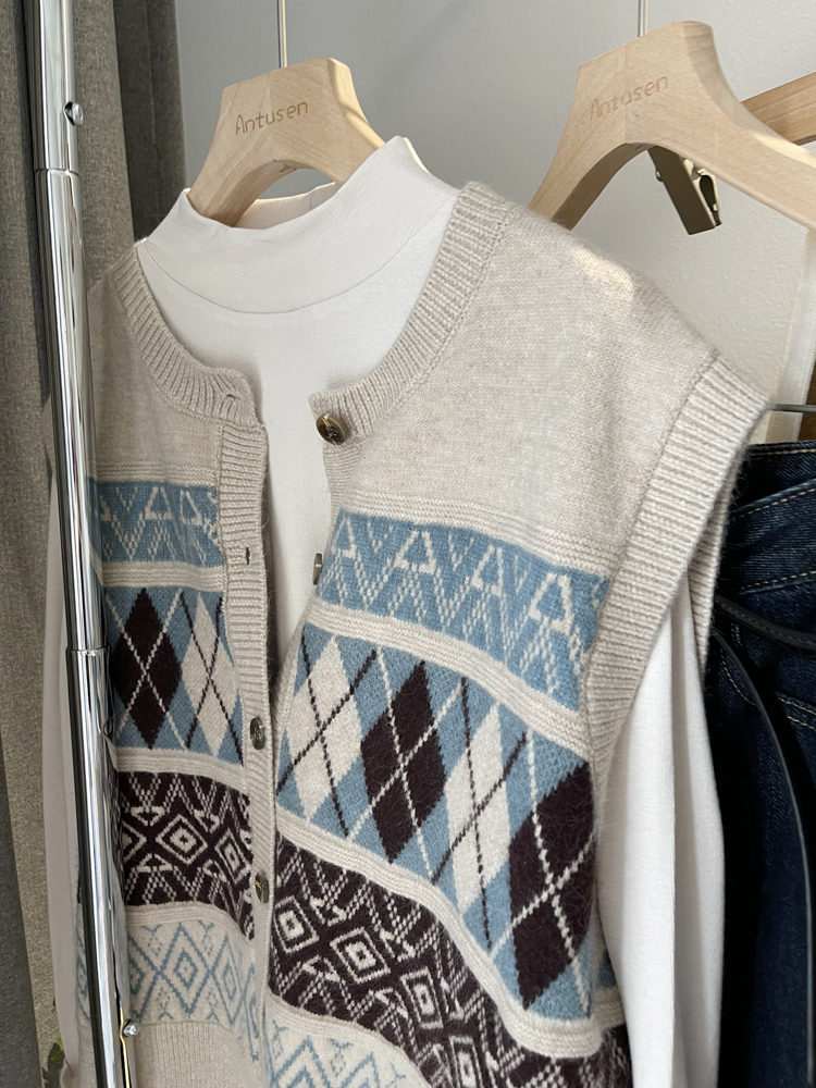 復古菱形提花針織馬甲女早春背心外穿2023年新款寬鬆韓版坎肩上衣