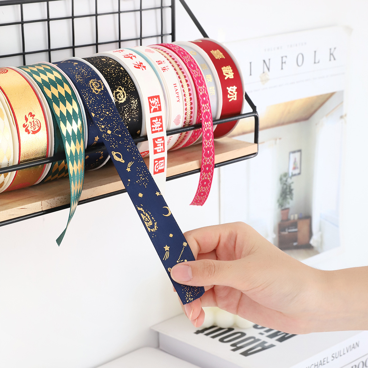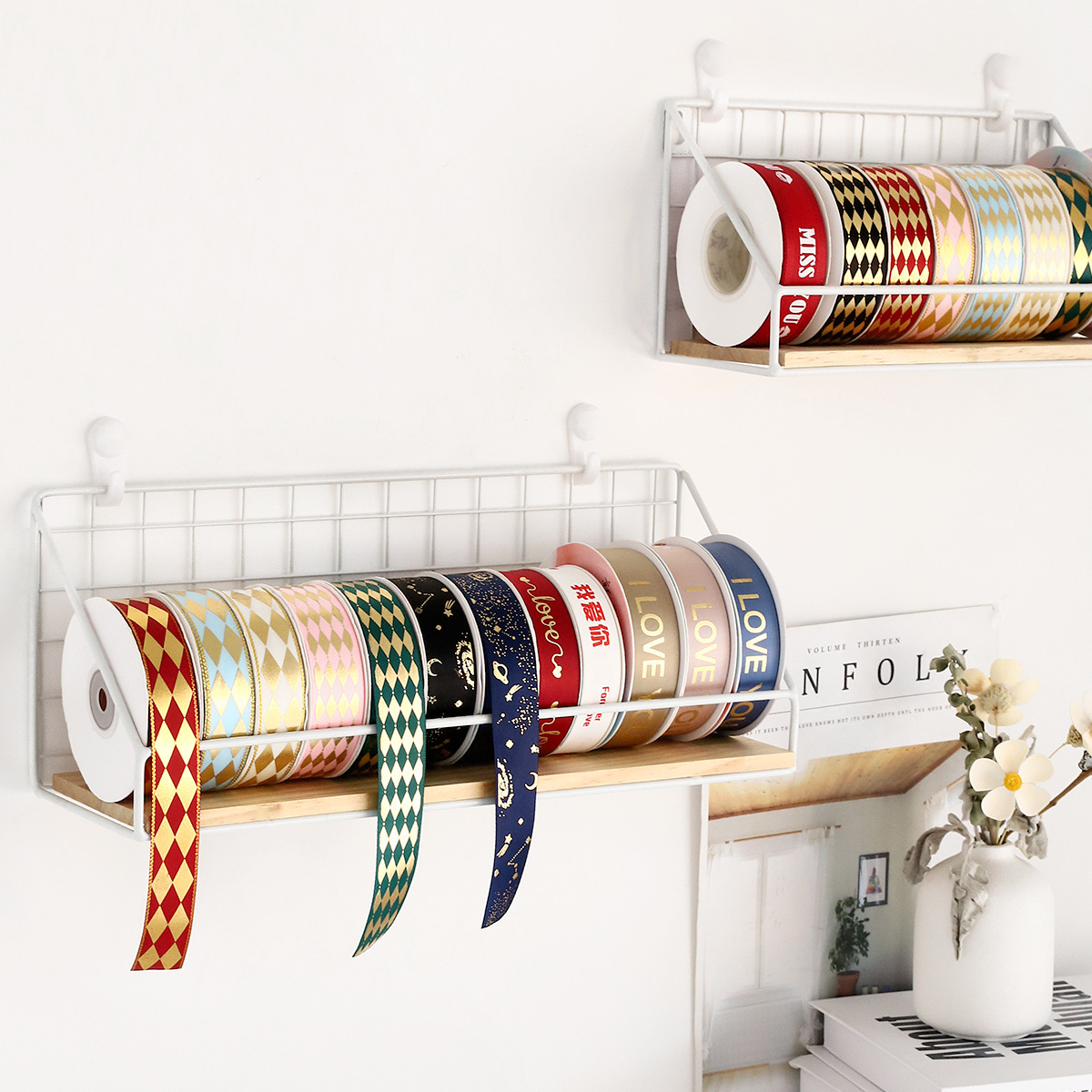 GPW5彩带收纳盒鲜花店专用整理置物架丝带架子缎带收纳架花艺展示