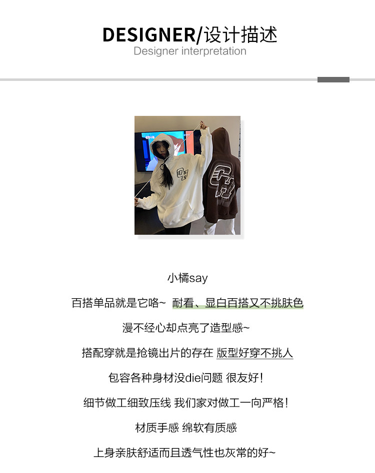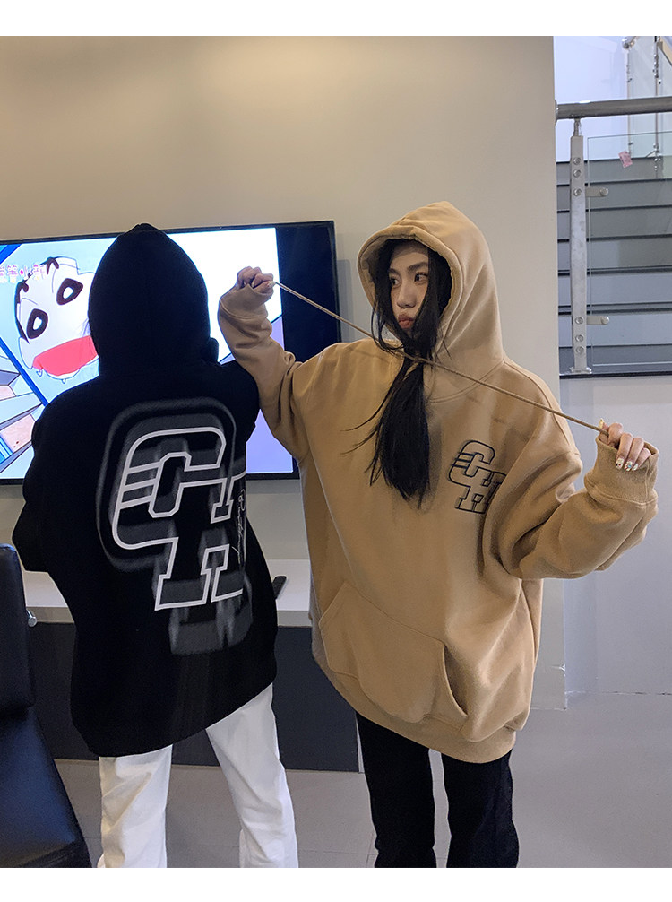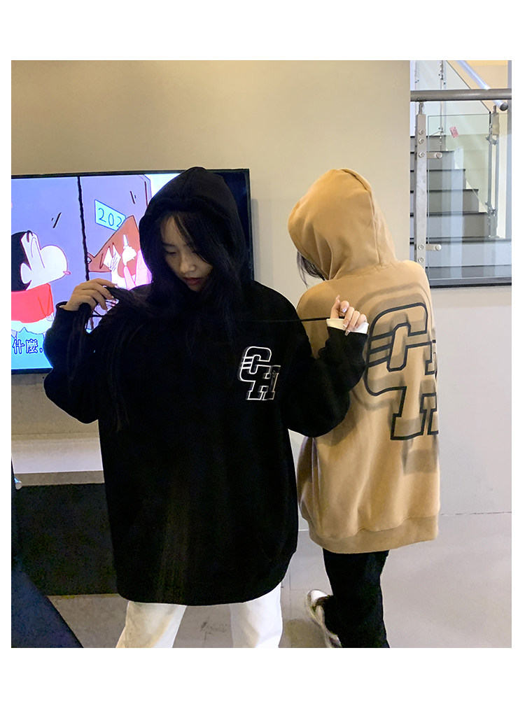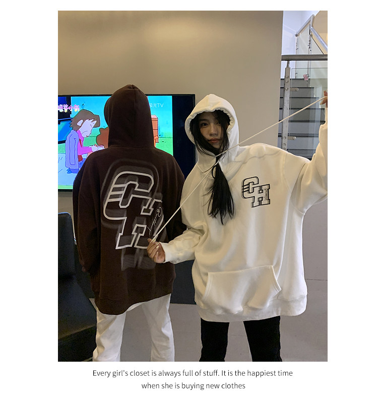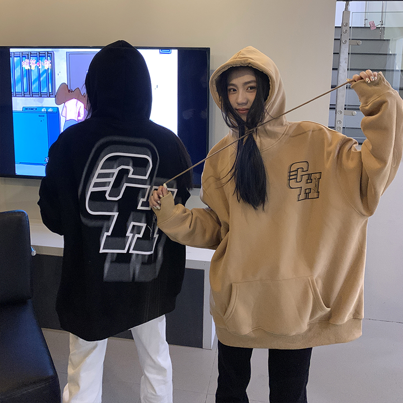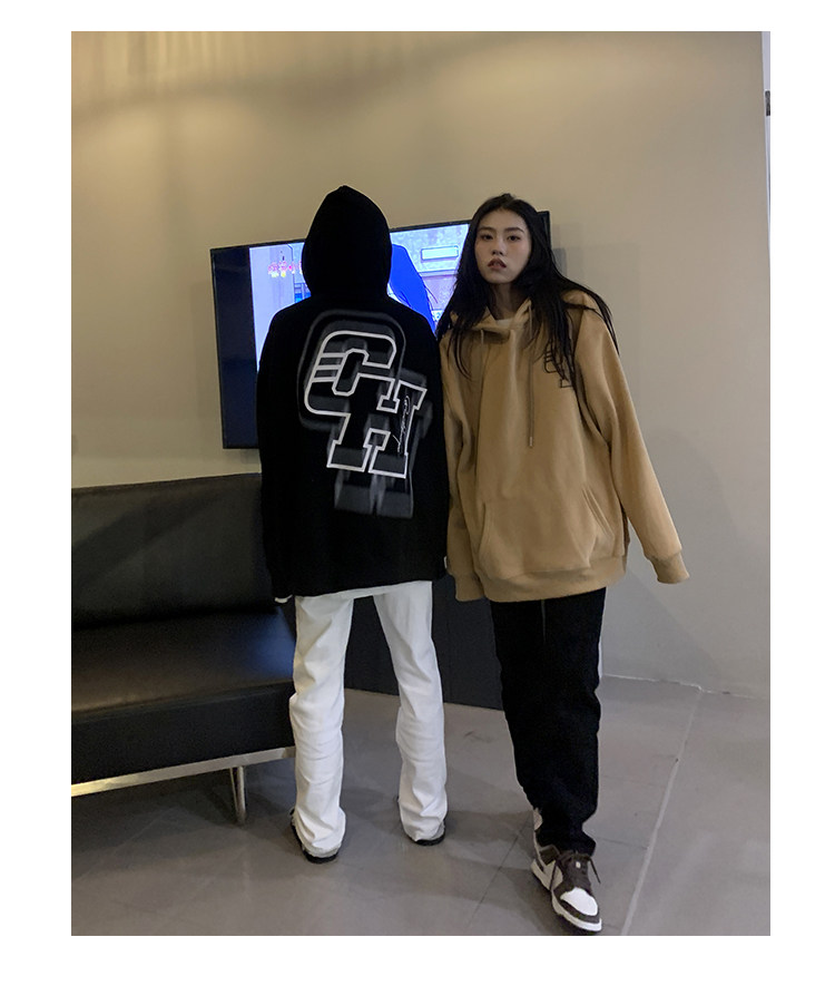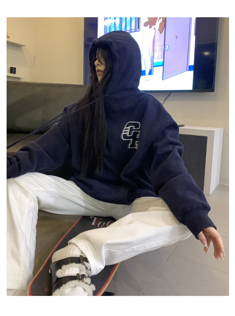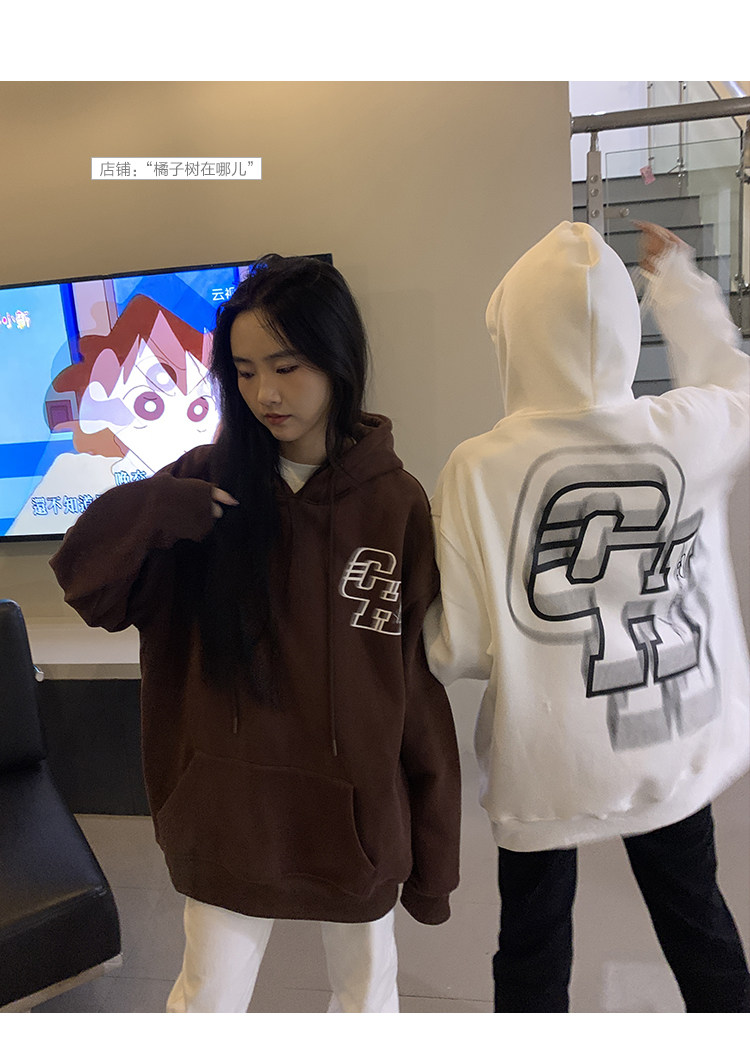 橘子樹在哪兒銀狐絨oversais連帽運動衫春秋寬鬆情侶中長版國潮帽衫