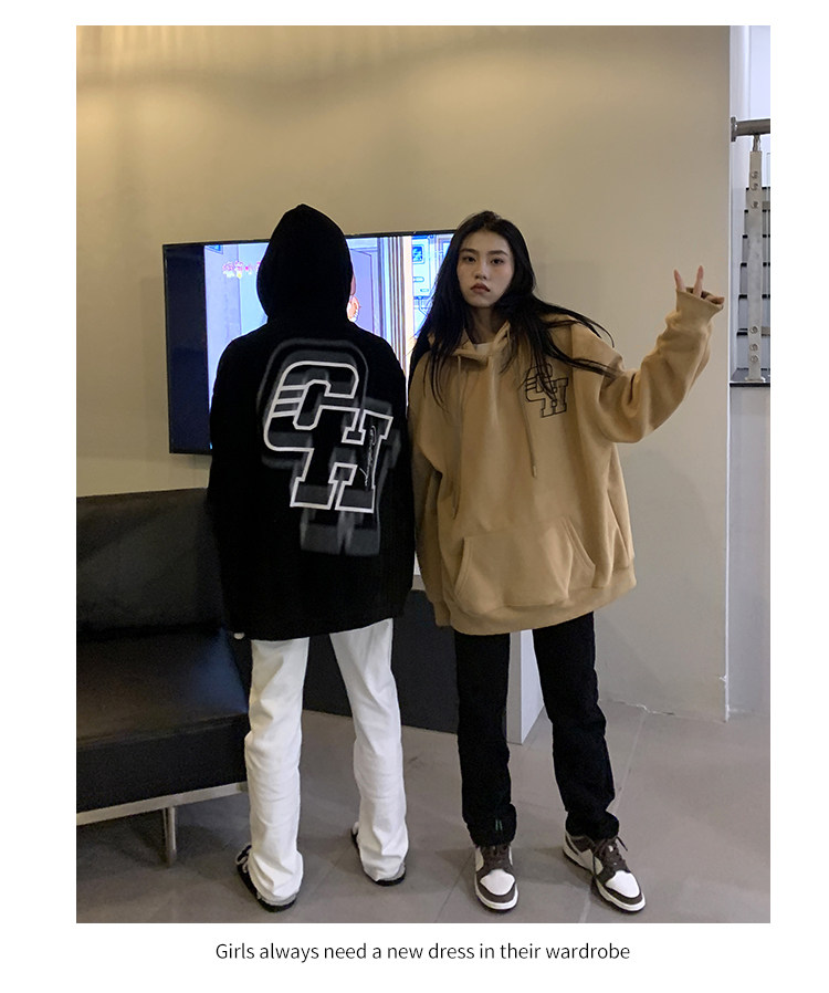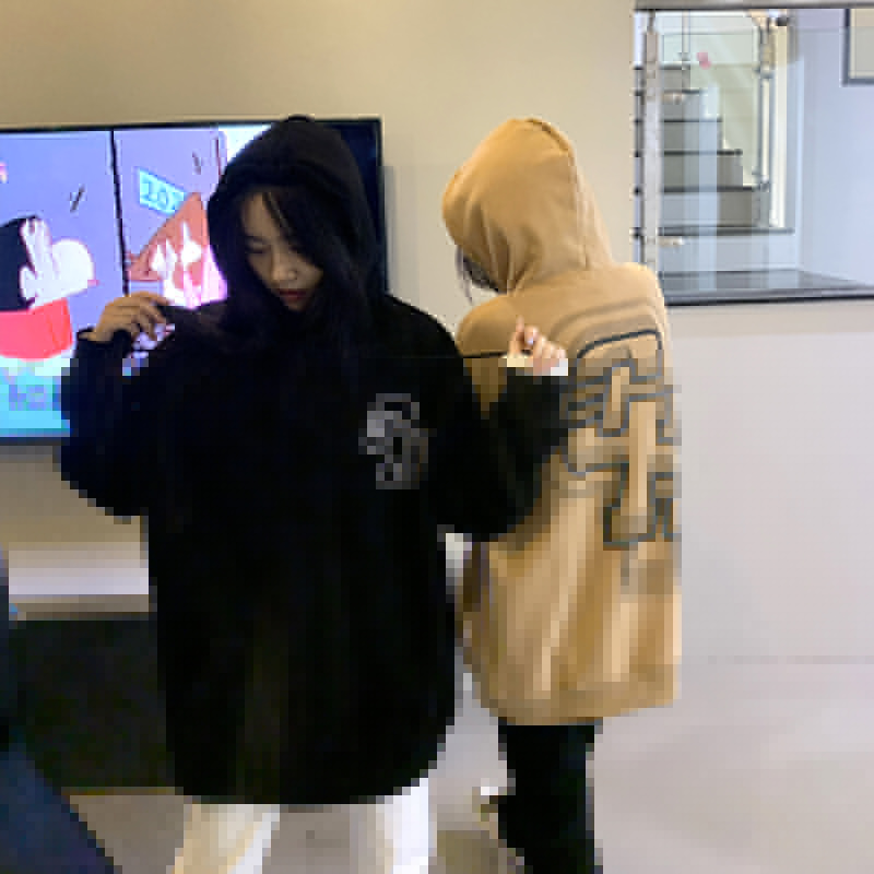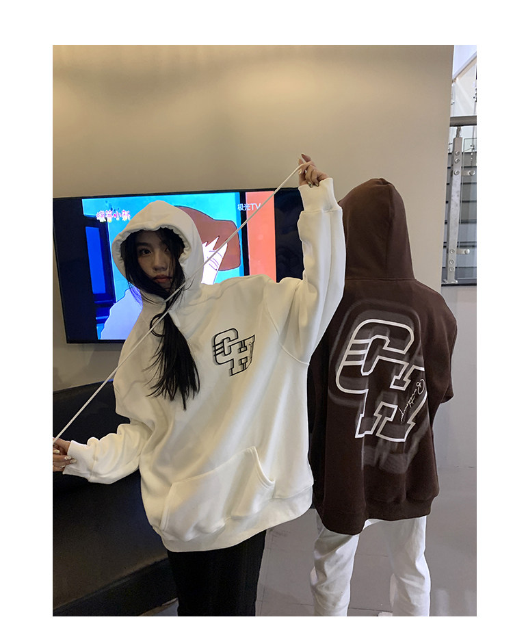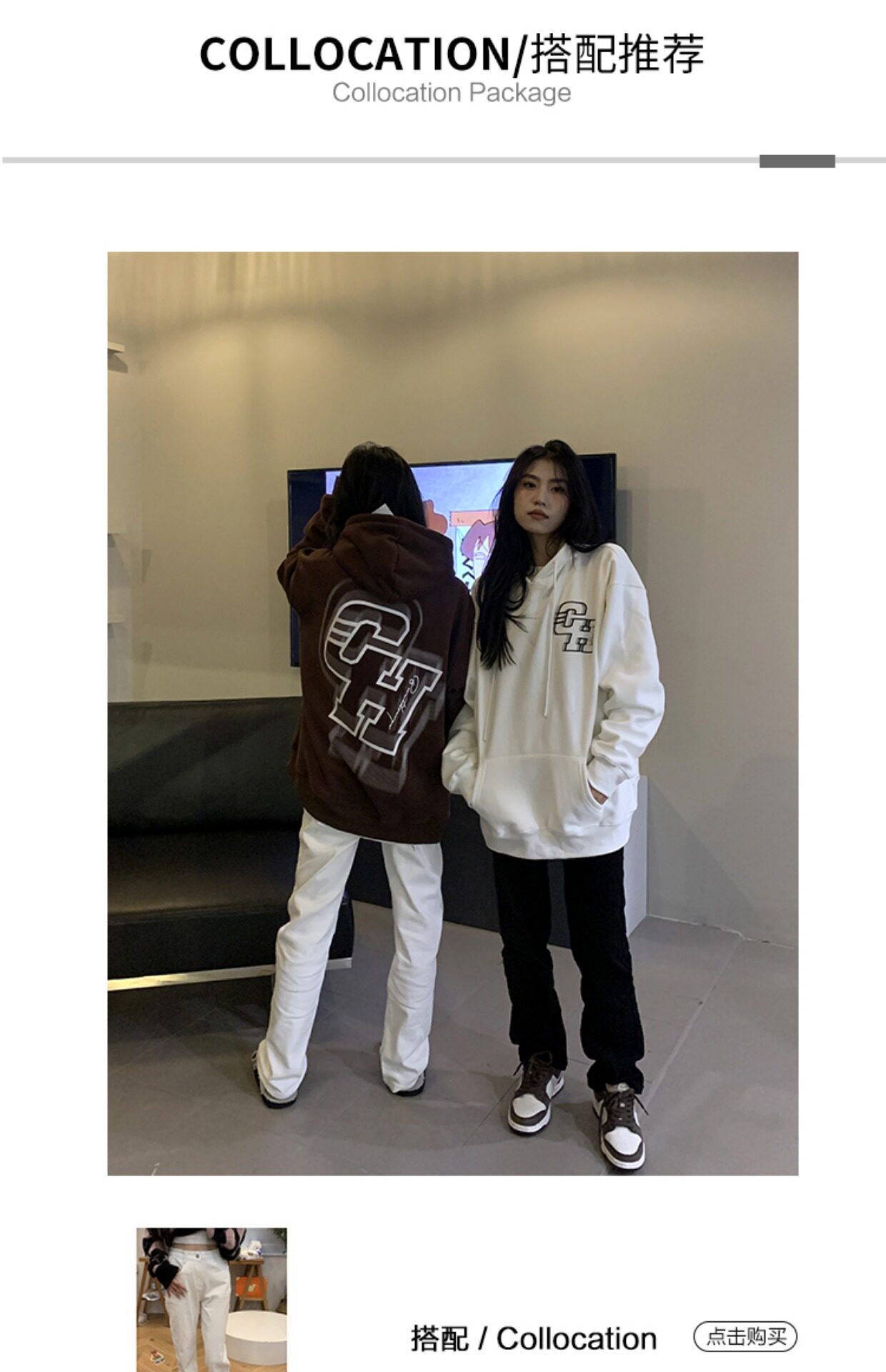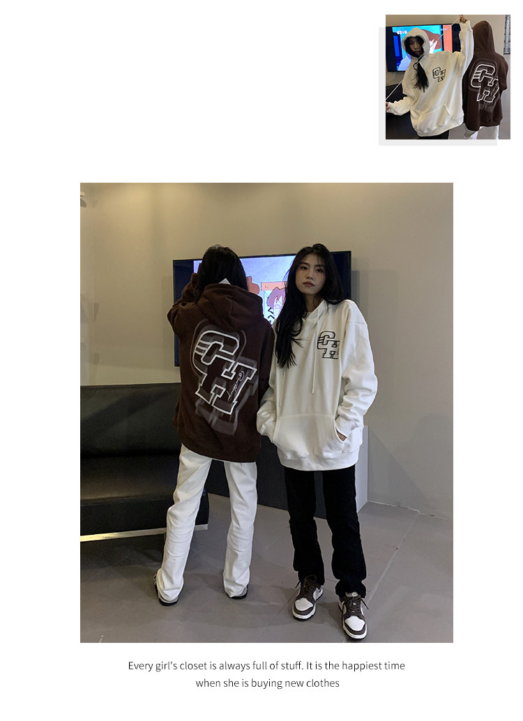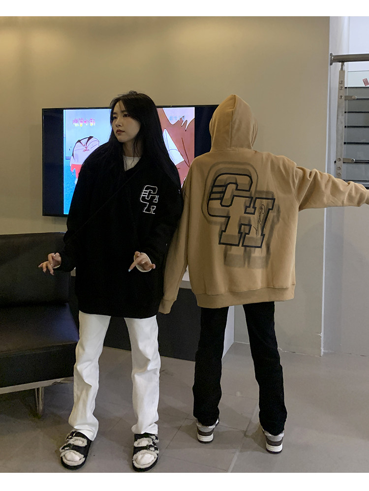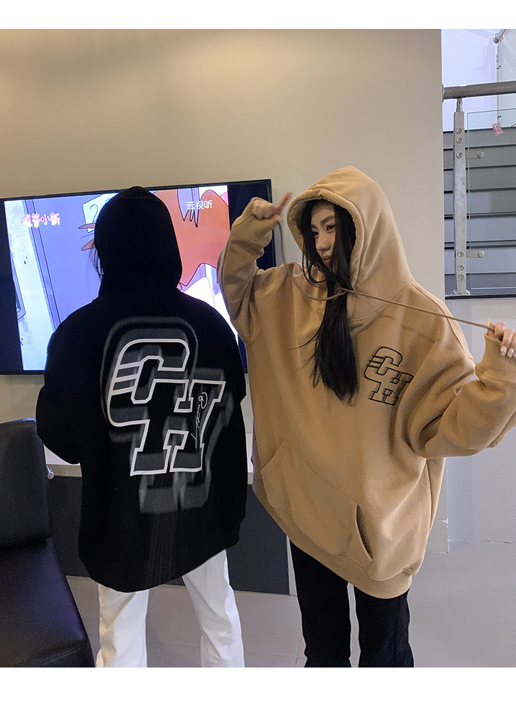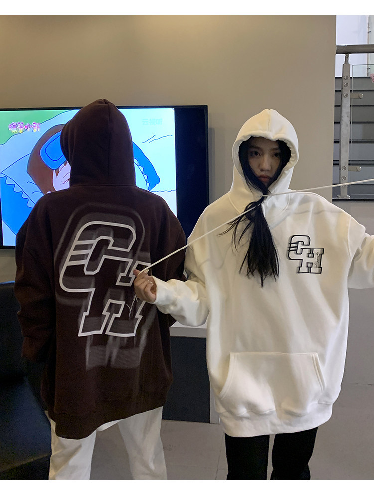 橘子樹在哪兒銀狐絨oversais連帽運動衫春秋寬鬆情侶中長版國潮帽衫