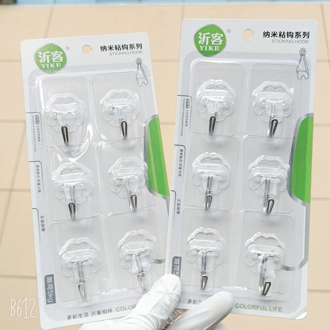 实惠6个装免打孔塑料透明挂勾强力无痕魔力粘钩子卫生间墙面挂钩