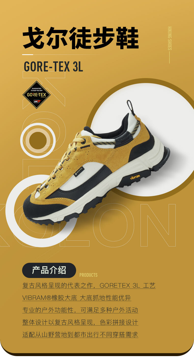 KOLON SPORT可隆韓國同款戈爾GORE-TEX 3L科技戶外防水徒步運動鞋