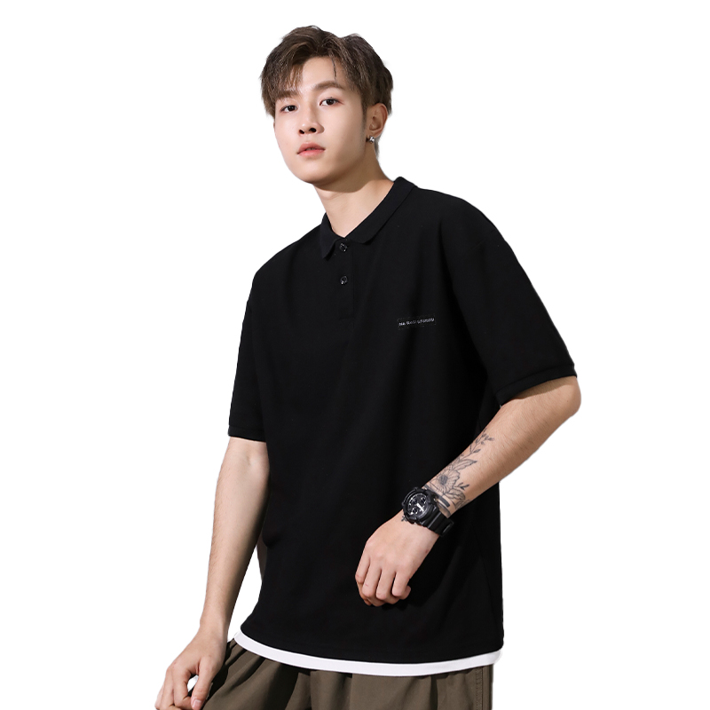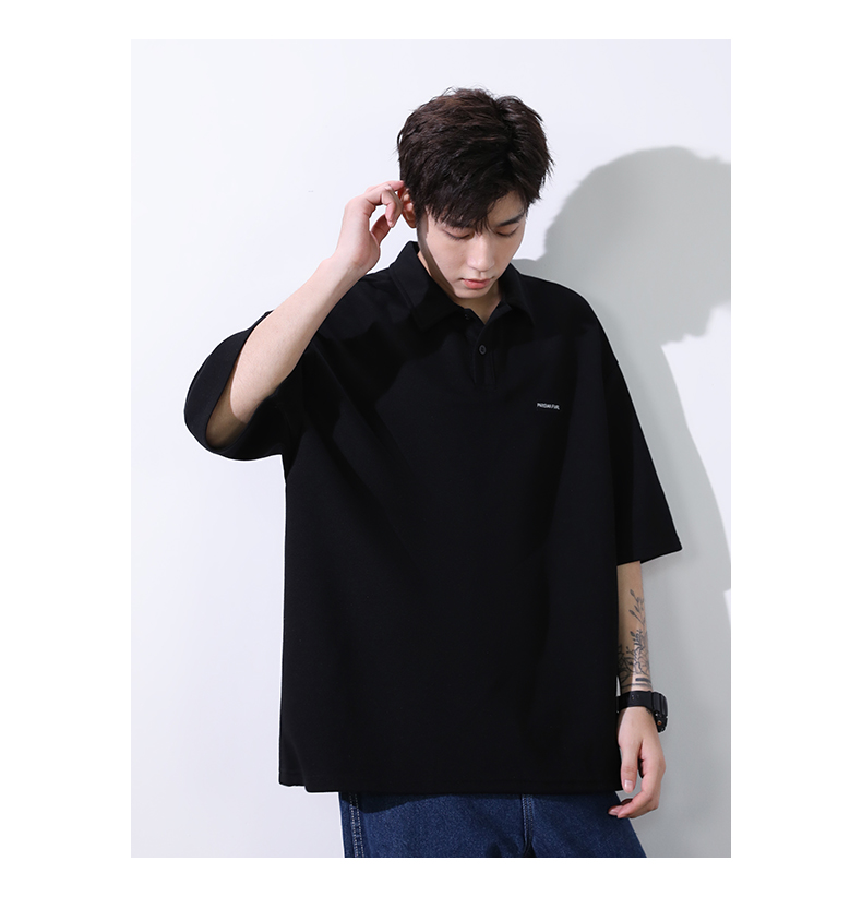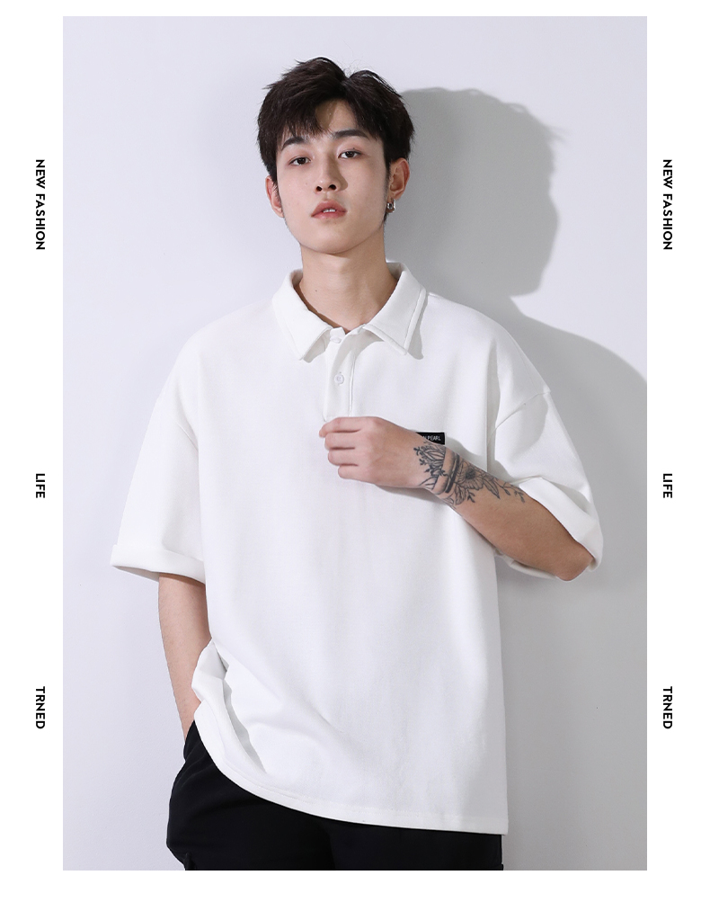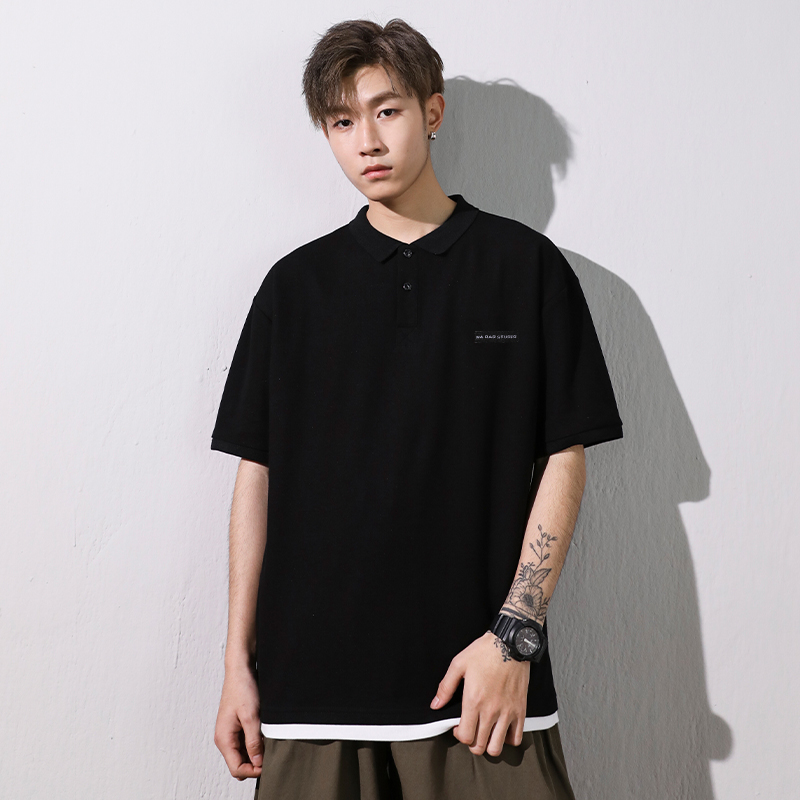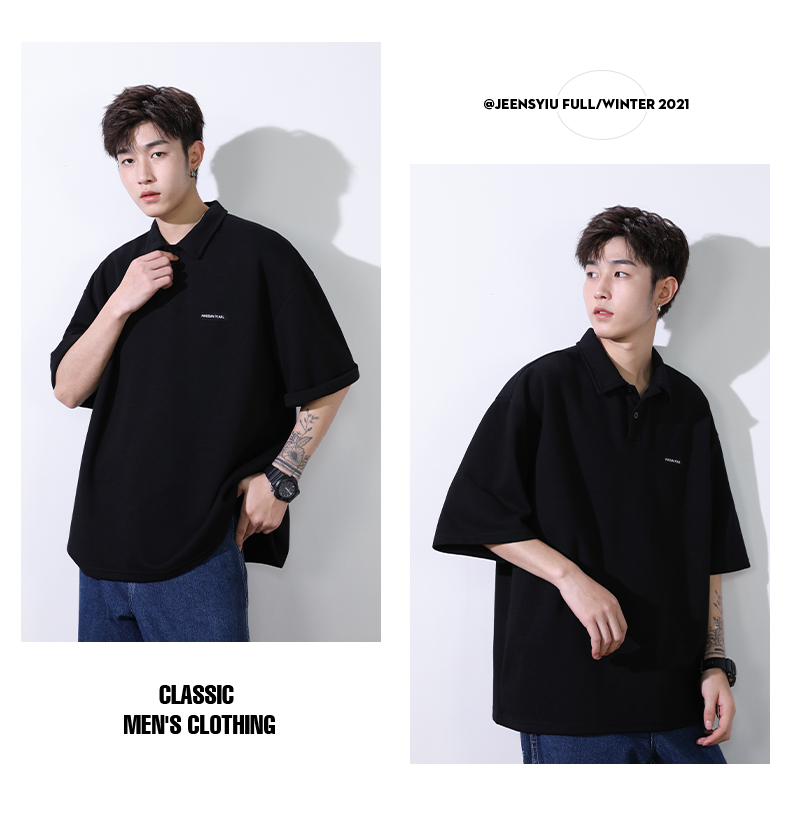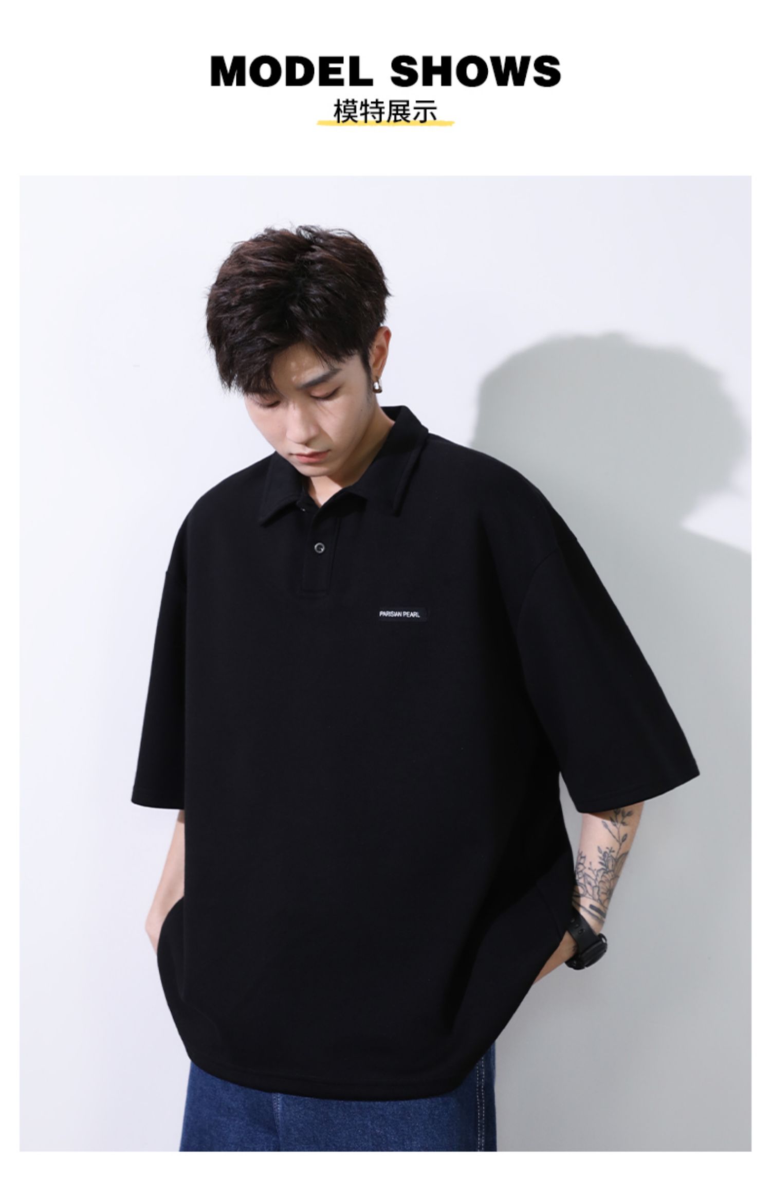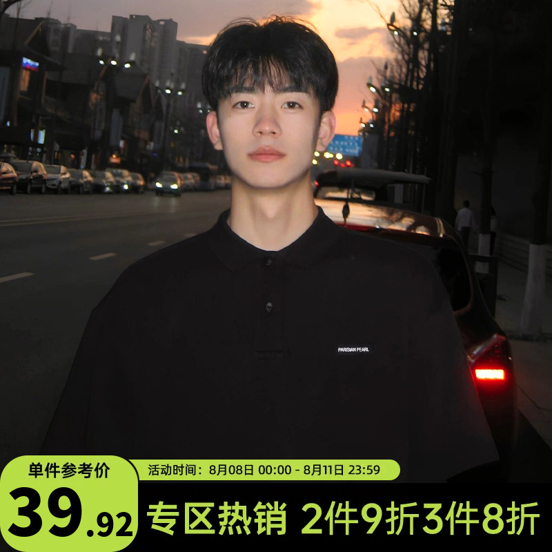 冰絲polo衫男夏季短袖T恤重磅痞帥翻領美式寬鬆襯衫領男士衣服潮
