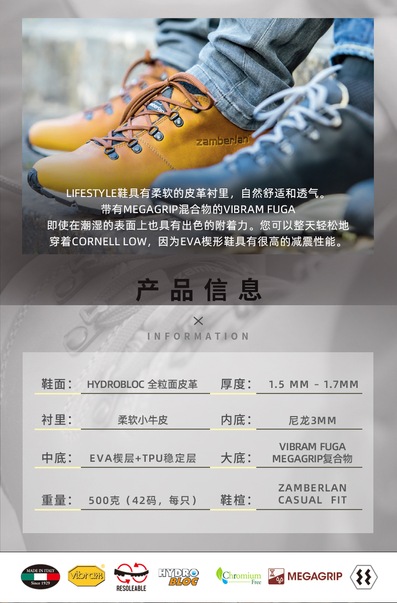 Zamberlan贊貝拉戶外徒步鞋男款康奈爾低幫休閒戶外男士鞋子323