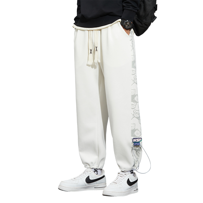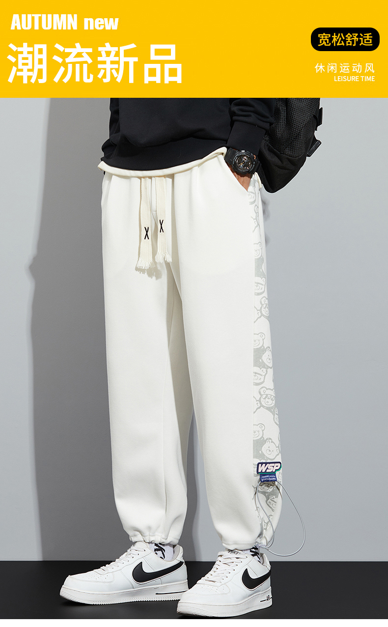運動褲子男士夏季薄款2023新款潮牌寬鬆休閒長褲男生束腳白色衛褲