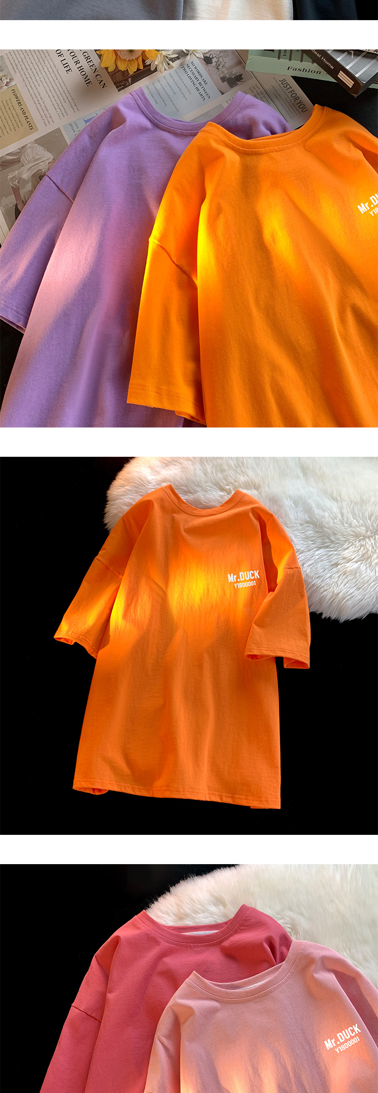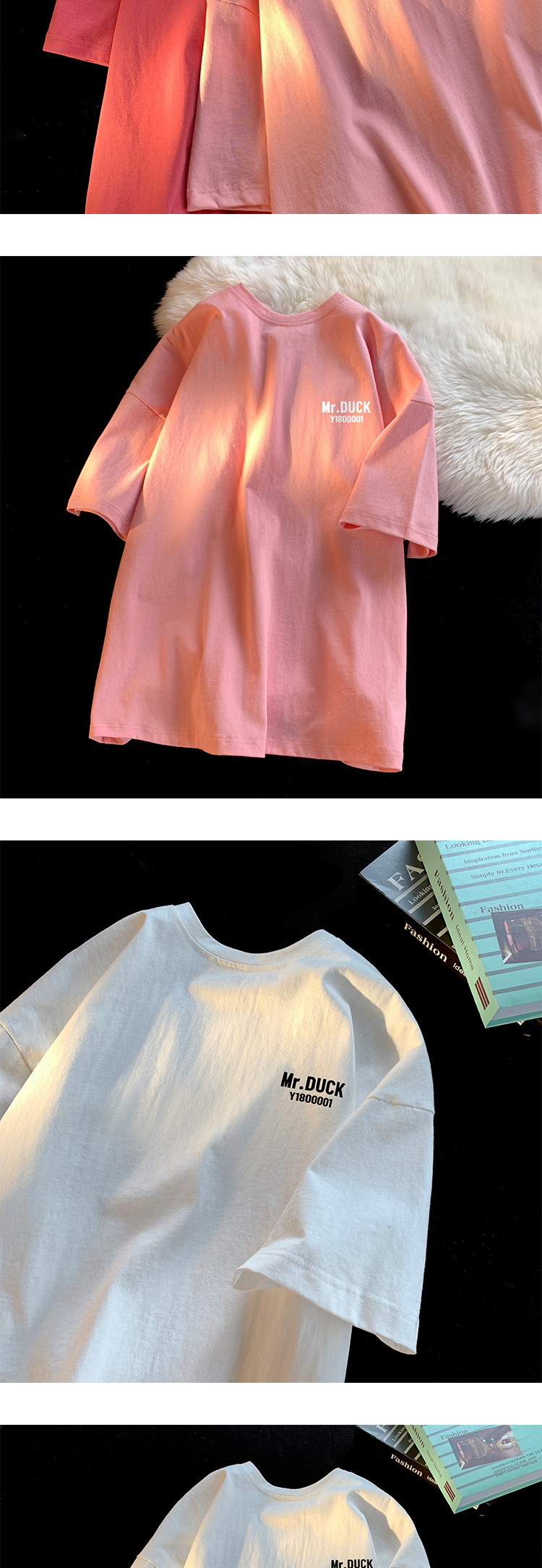 HUIMO 夏季簡約百搭休閒短袖T恤衫男女多色系半袖上衣寬鬆五分袖