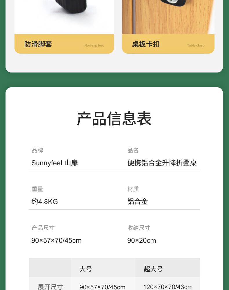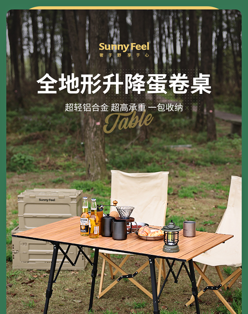 山扉sunnyfeel可升降蛋卷桌戶外鋁合金摺疊桌可調節加高露營桌椅