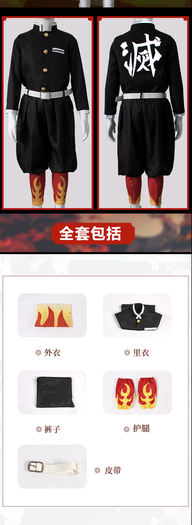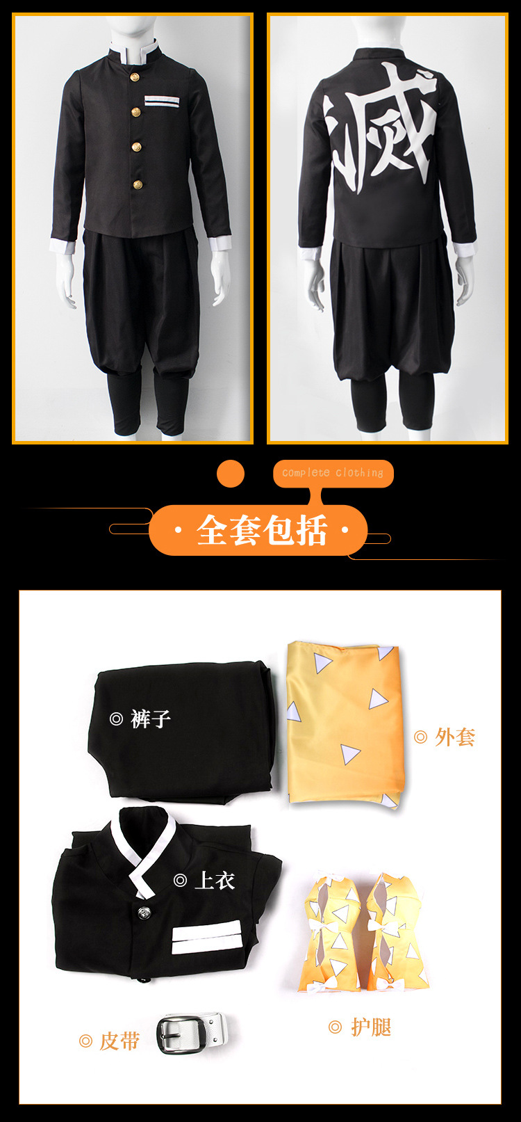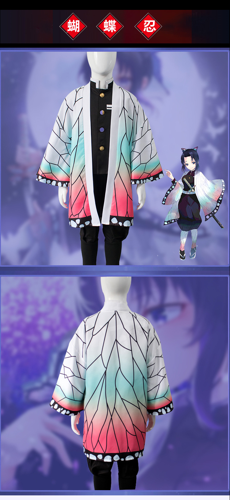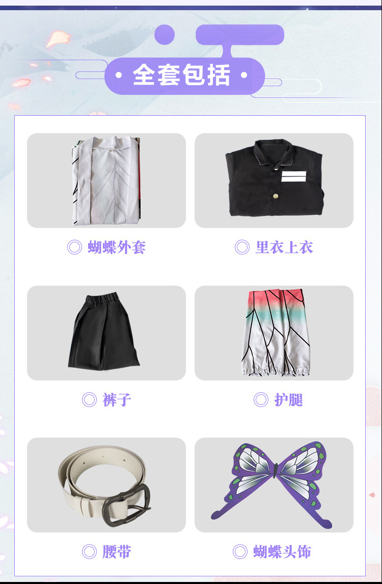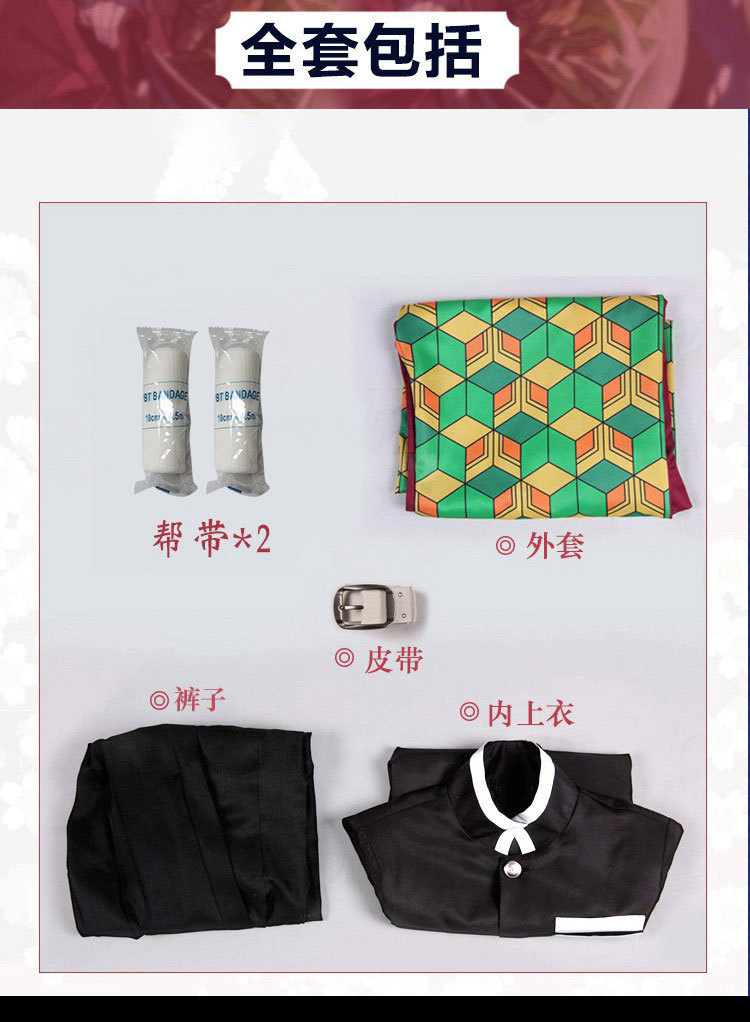 颜色 灶门炭治郎儿童套装,富冈义勇儿童套装,我妻善逸儿童套装,蝴蝶忍儿童套装(送头饰),炼狱杏寿郎儿童套装,祢豆子儿童套装,栗花落香奈乎儿童套装(送头饰),甘露寺蜜璃儿童套装,时透无一郎儿童套装,伊黑小芭内儿童套装,锖兔儿童套装
