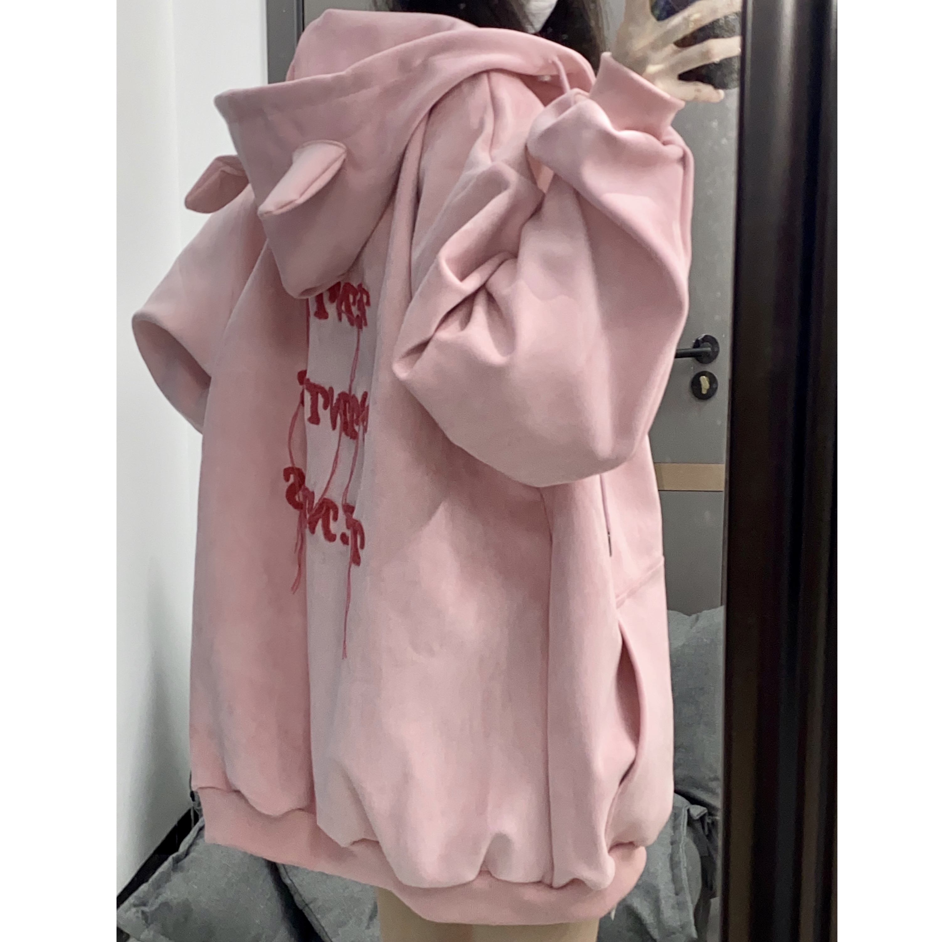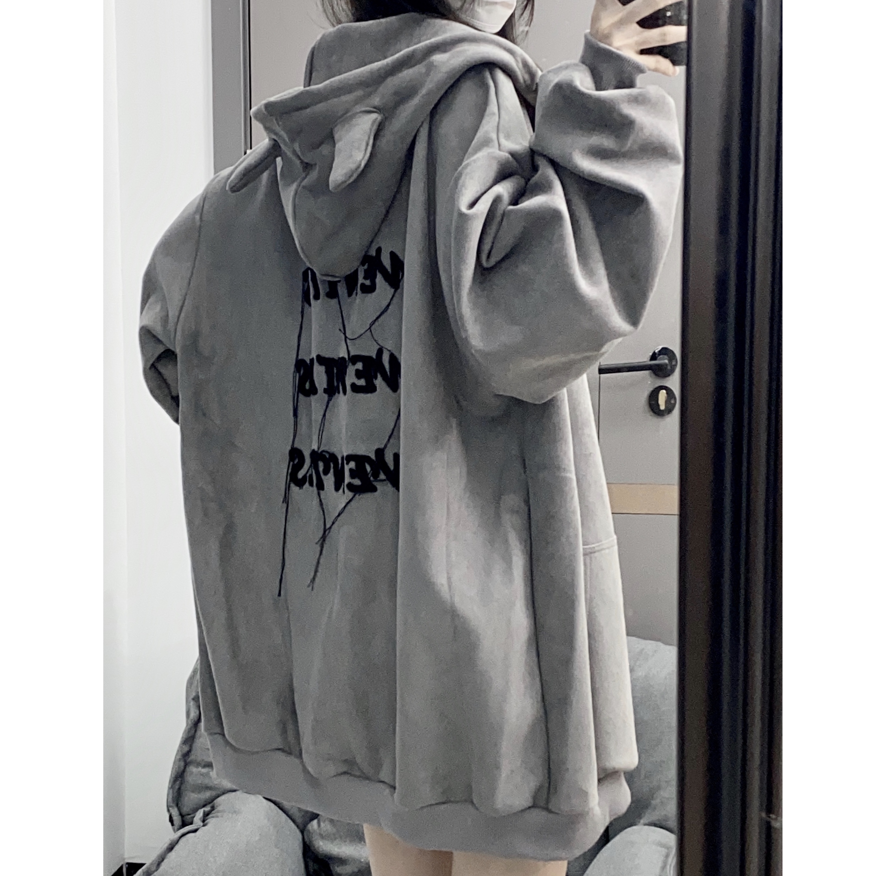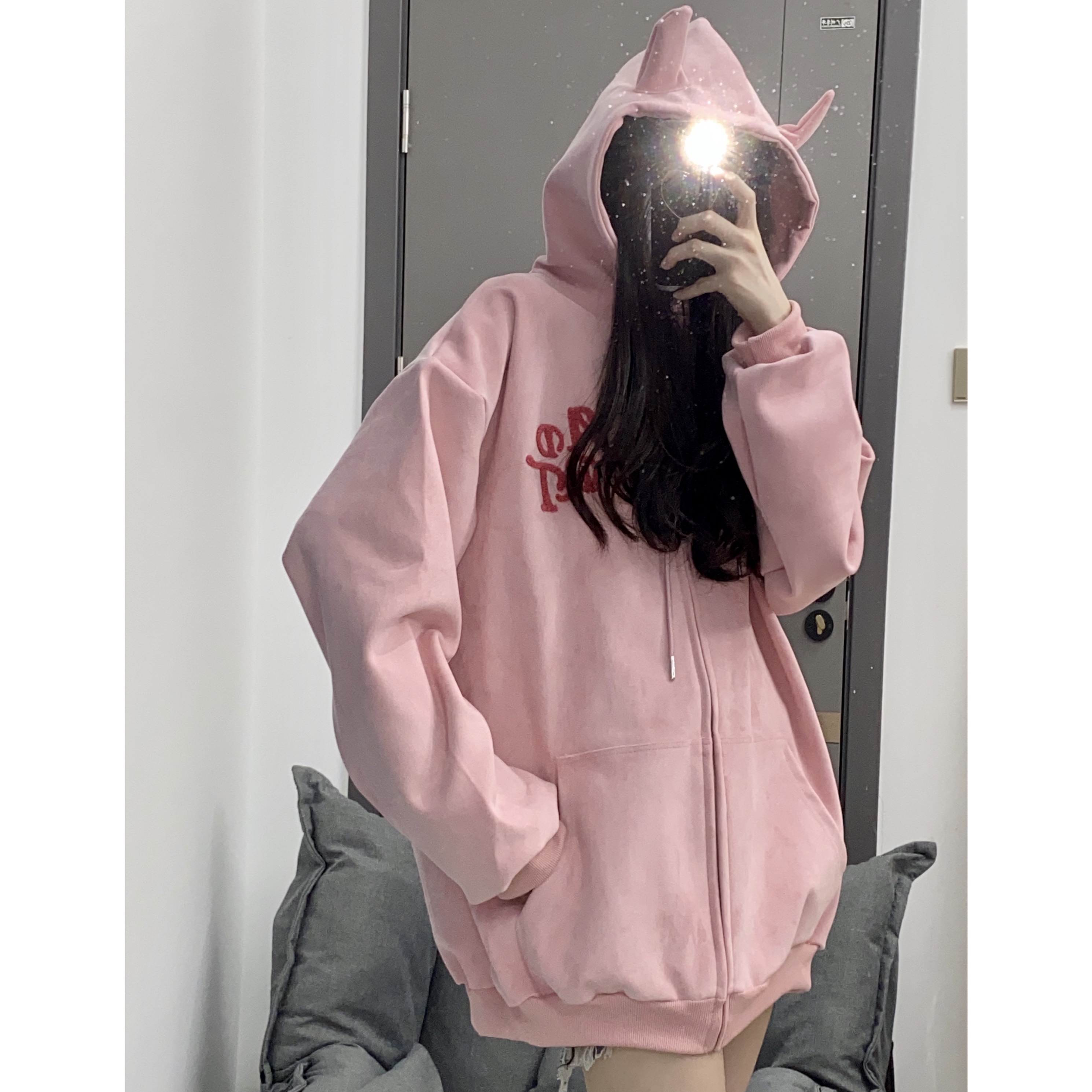 FanShu 小鋪 美式高街小惡魔連帽運動衫女秋季oversize百搭開衫外套