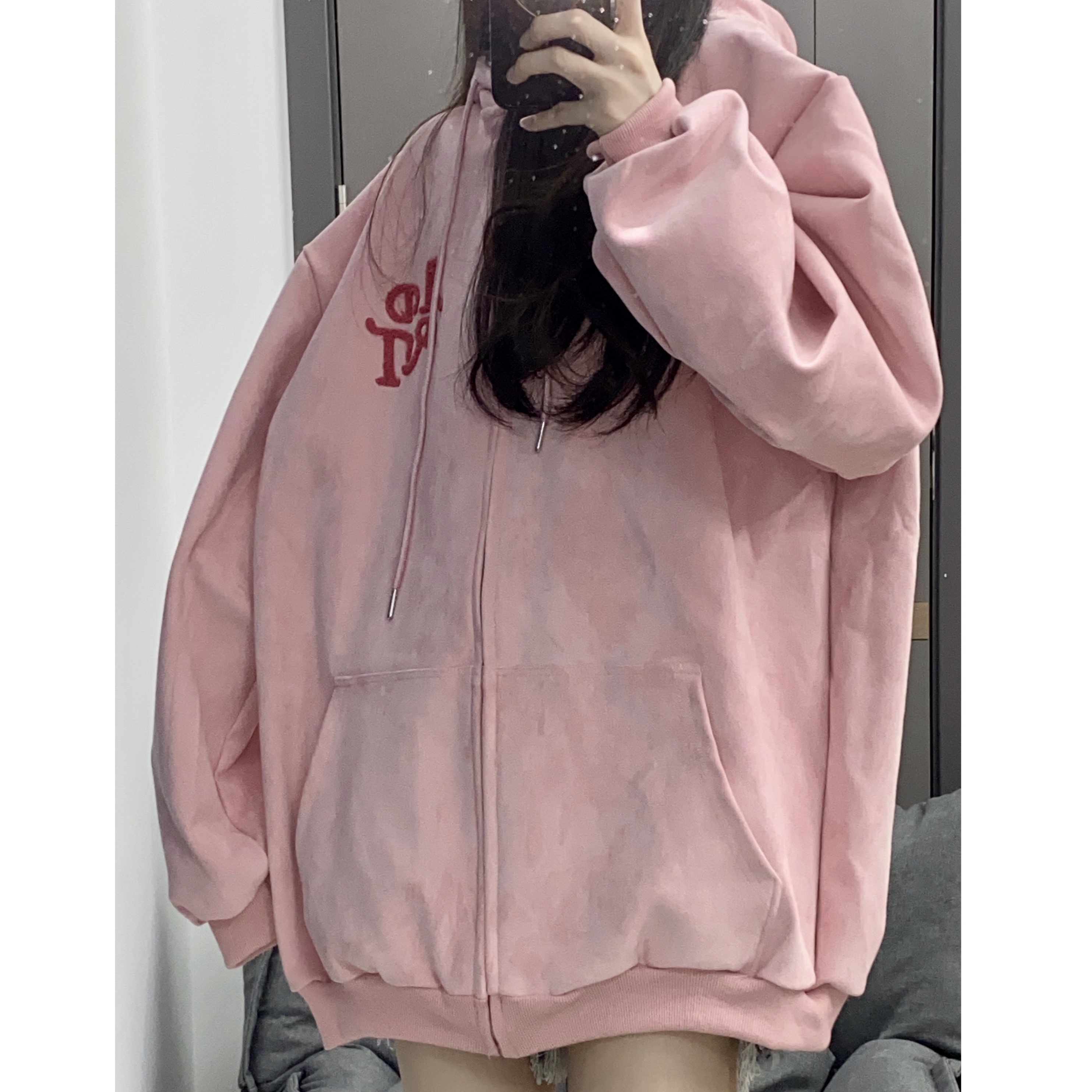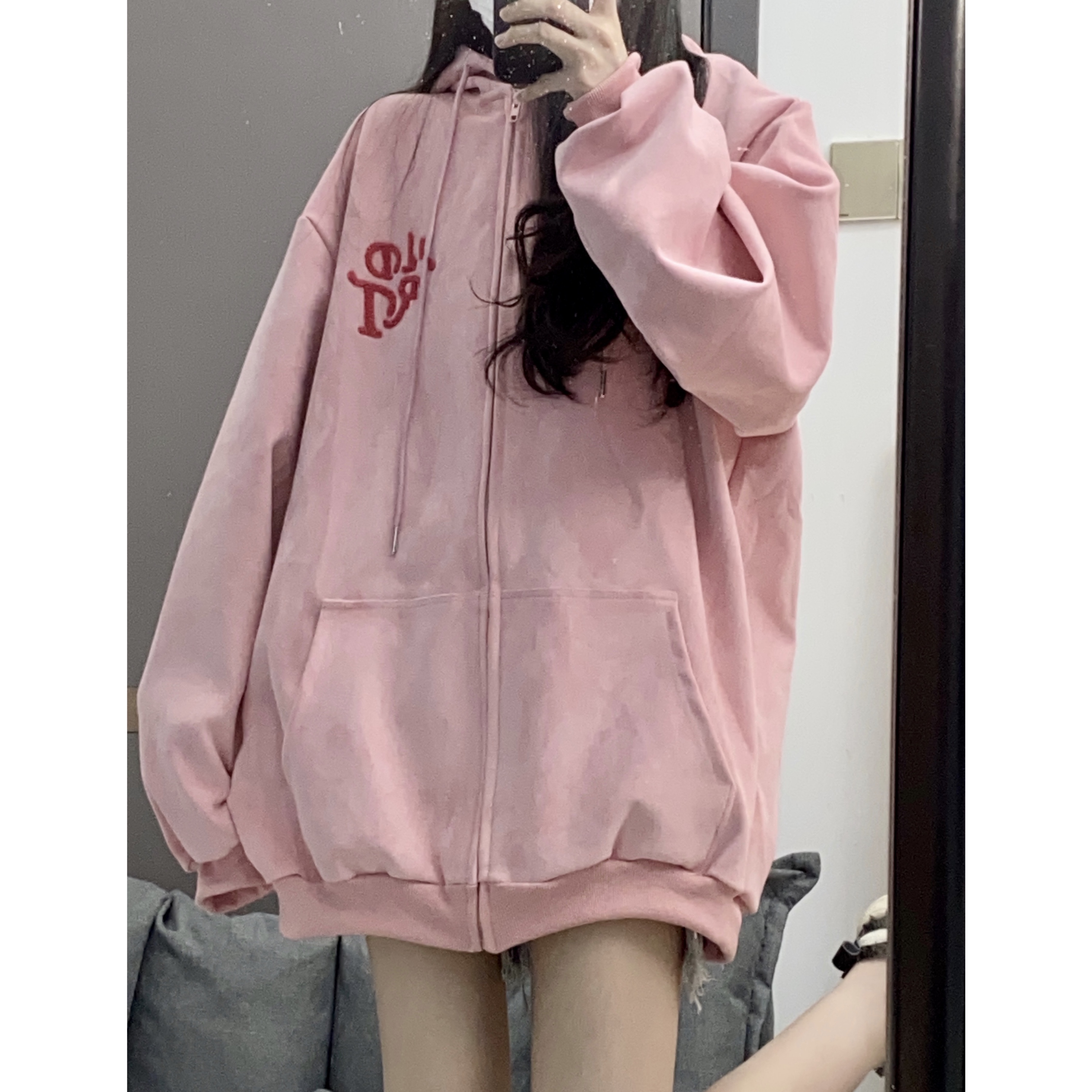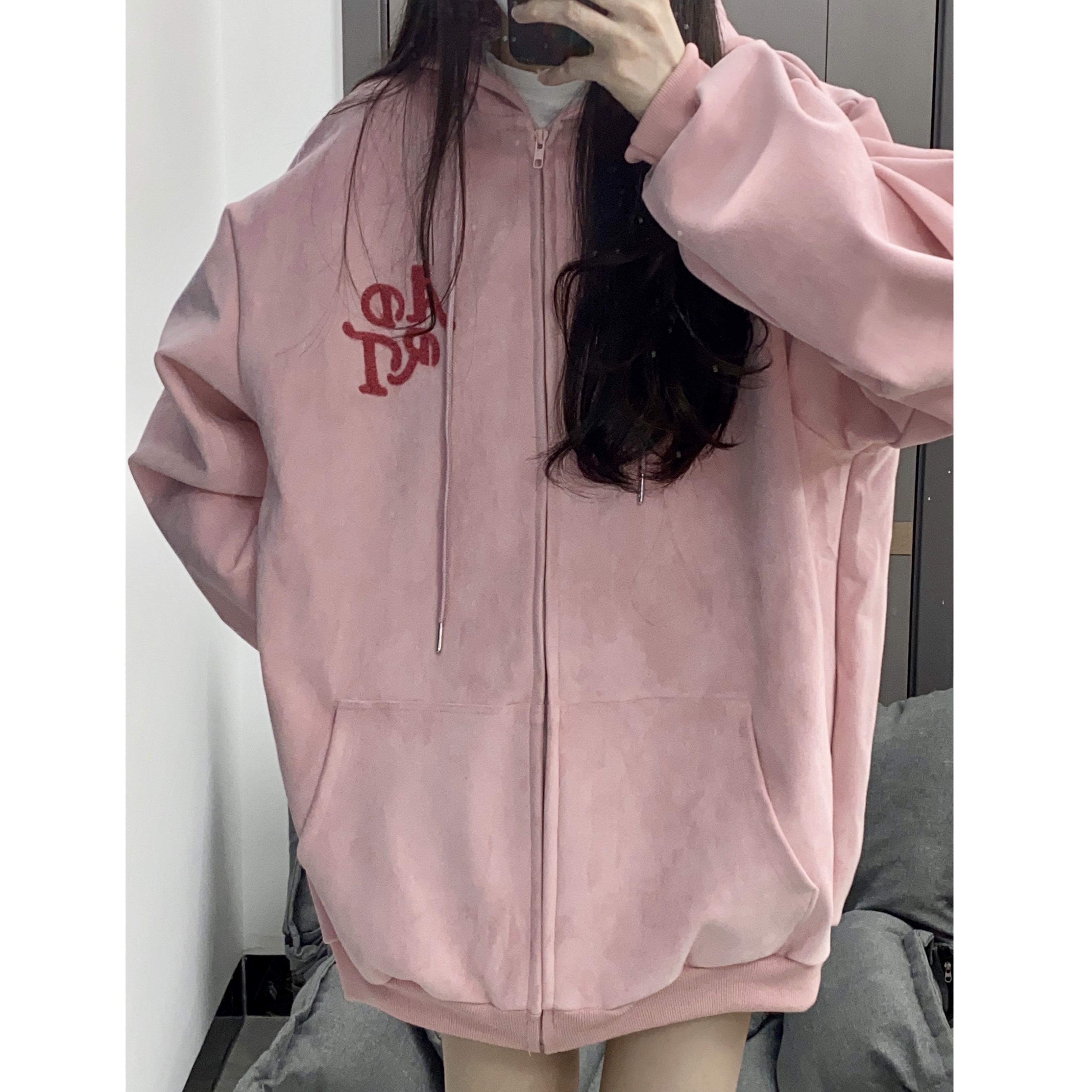 FanShu 小鋪 美式高街小惡魔連帽運動衫女秋季oversize百搭開衫外套