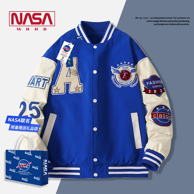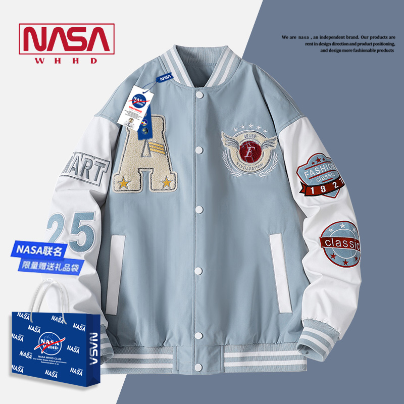 NASA聯名棒球服男女春秋季寬鬆休閒美式情侶裝潮牌刺繡夾克外套