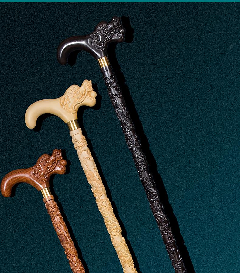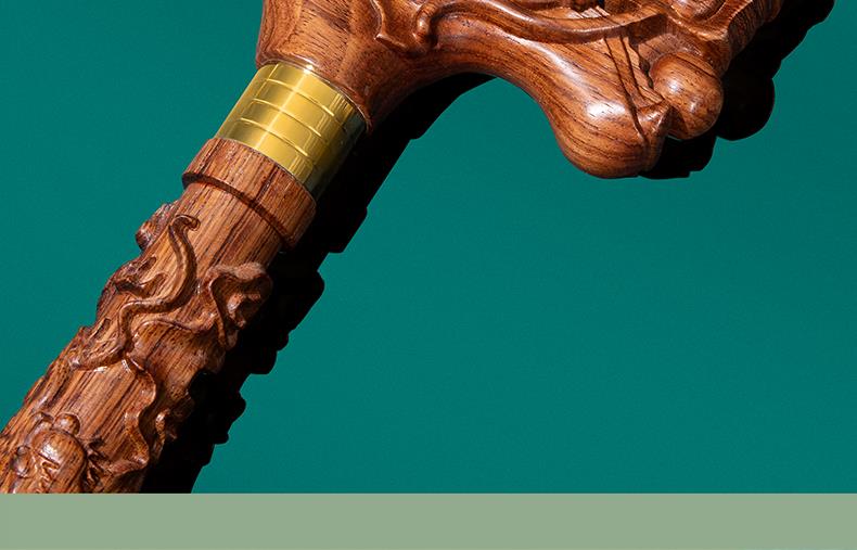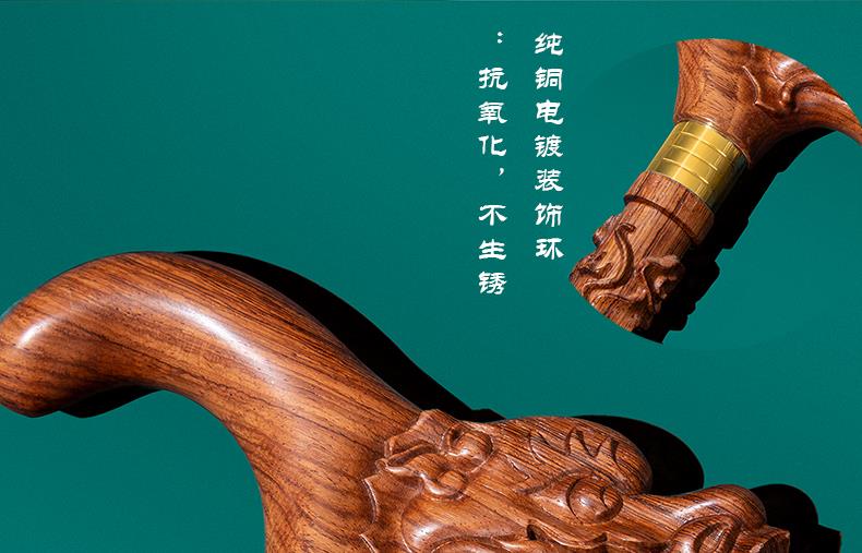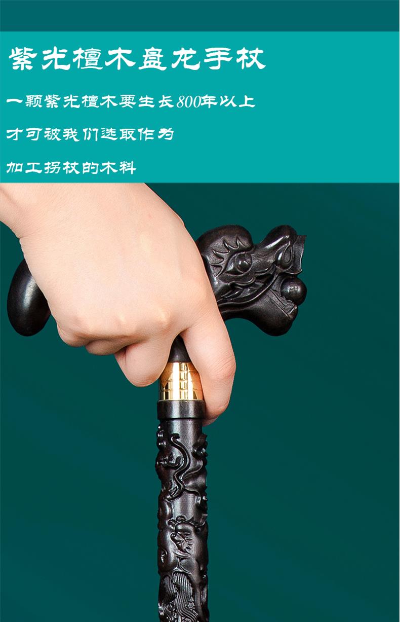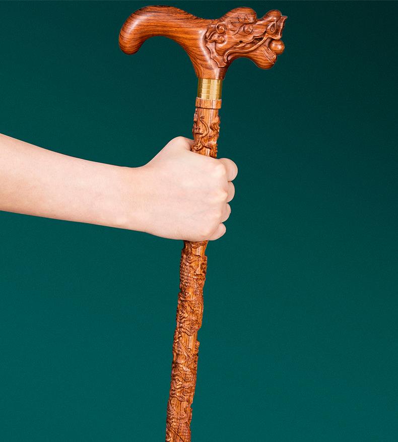 SAM老人柺杖實木手杖木質柺杖龍頭紅木盤龍柺棍黃花梨木禮品