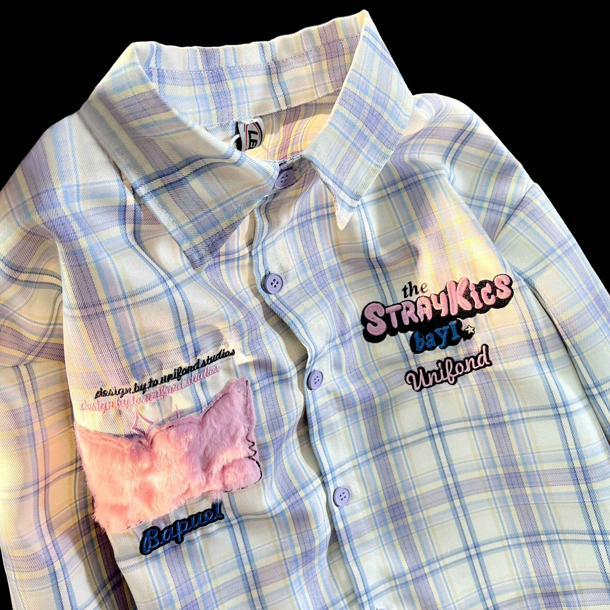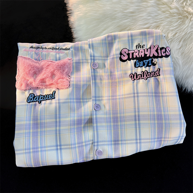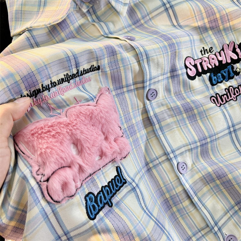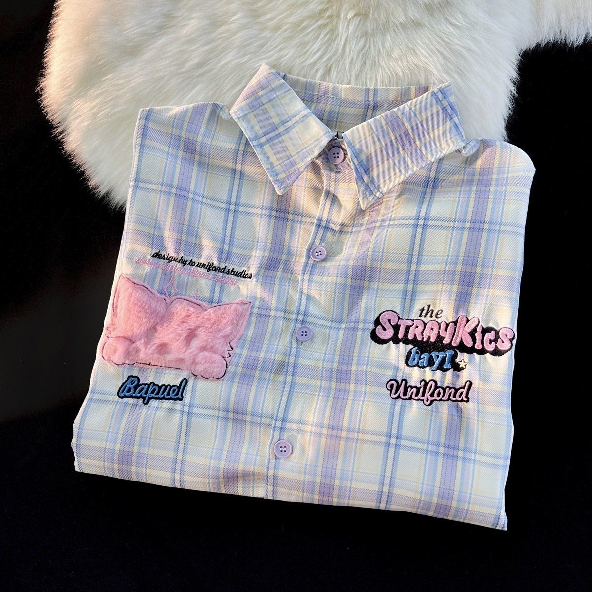 日系甜美風格子襯衫女秋季復古寬鬆韓系慵懶風chic長袖襯衫防曬衣