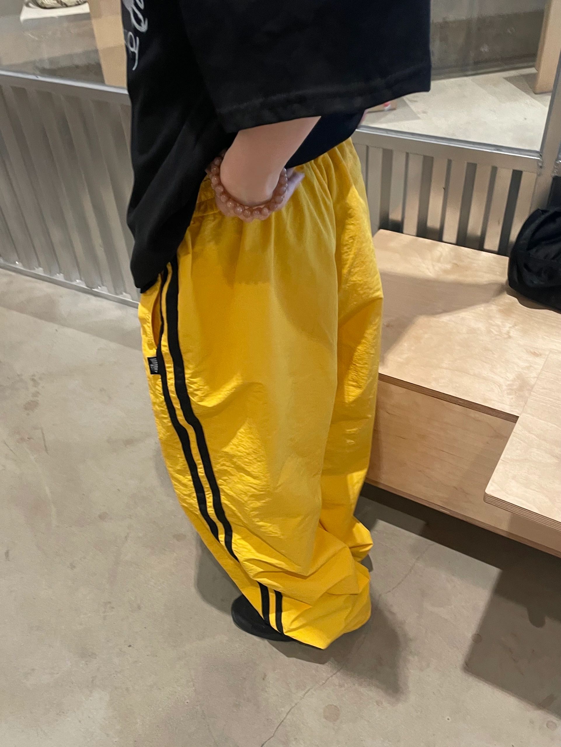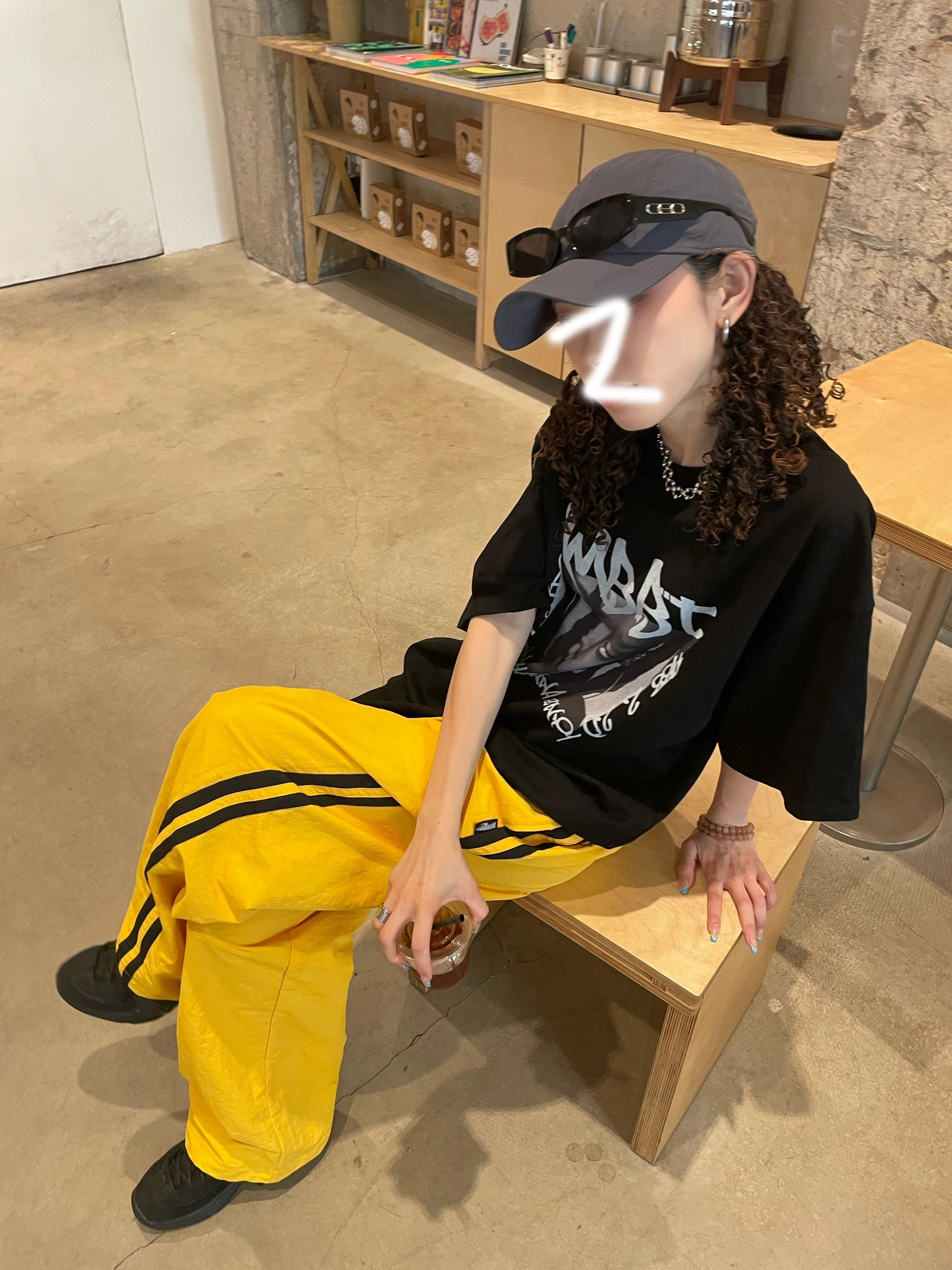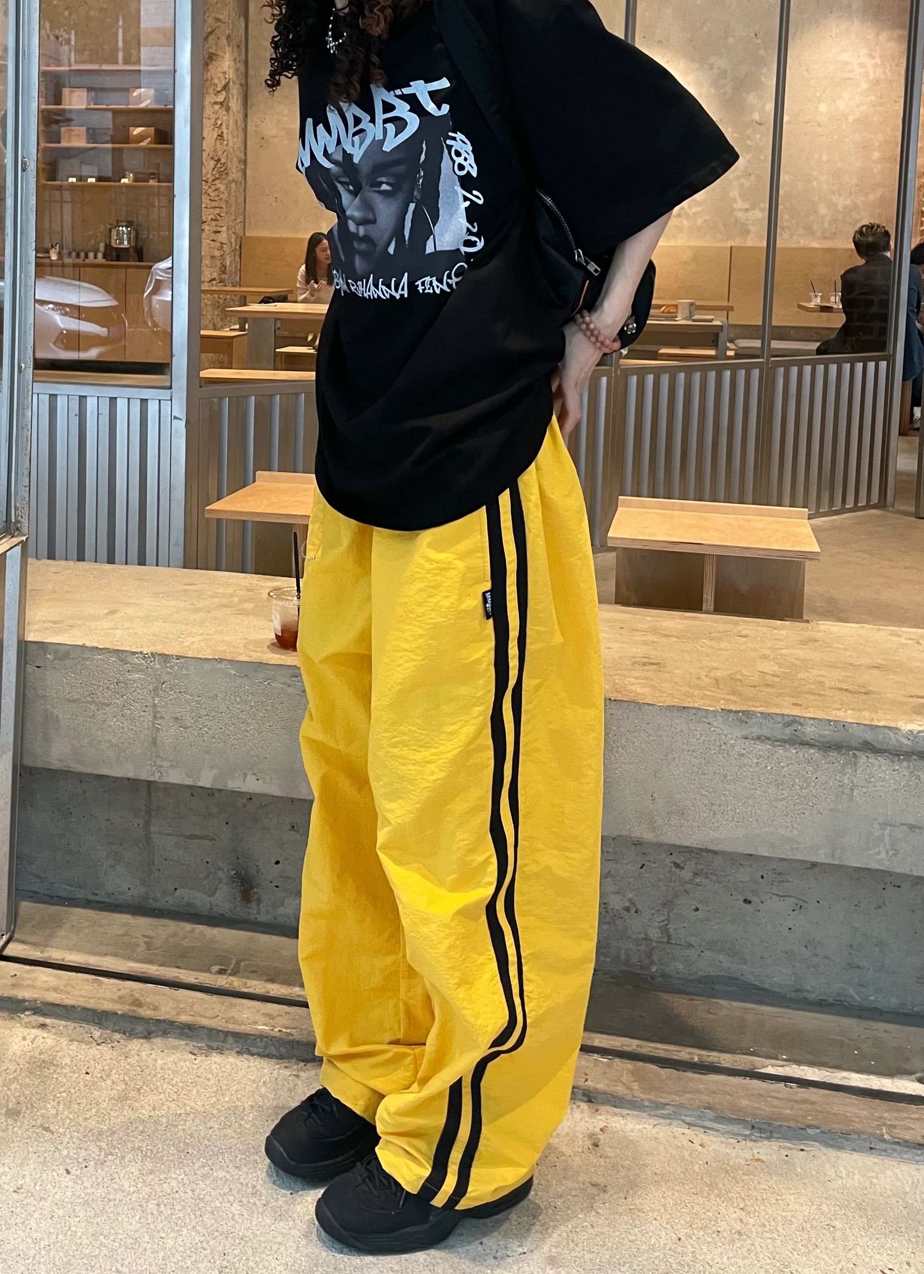 黃色運動褲女小眾設計感條紋褲子大尺碼胖mm顯瘦速乾工裝褲闊腿褲潮