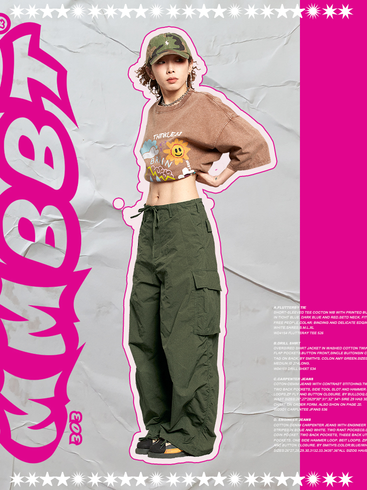 MMBBT降落傘工裝褲女寬鬆闊腿日系褲子慵懶墜感復古休閒運動嘻哈