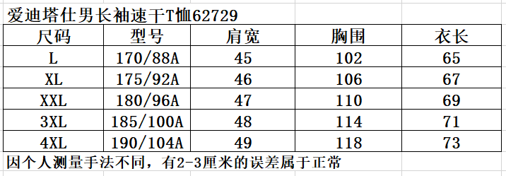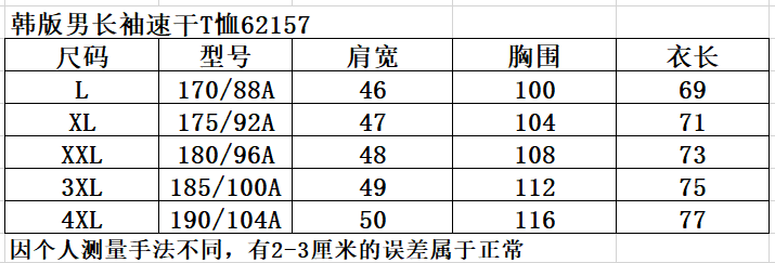 ***下为韩国品牌索定户外男士长袖T恤62729,国内生产,圆领,春夏款,弹力速干,不属于特别薄的款式,做工精细,用料高端,尺码偏小一码,因平时国内L为175厘米,而这个品牌为170厘米。