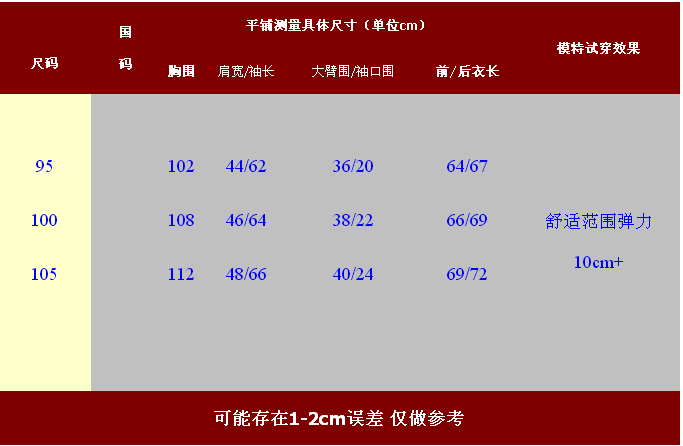 S(165/84A)肩宽44厘米   胸围96厘米  衣长67厘米