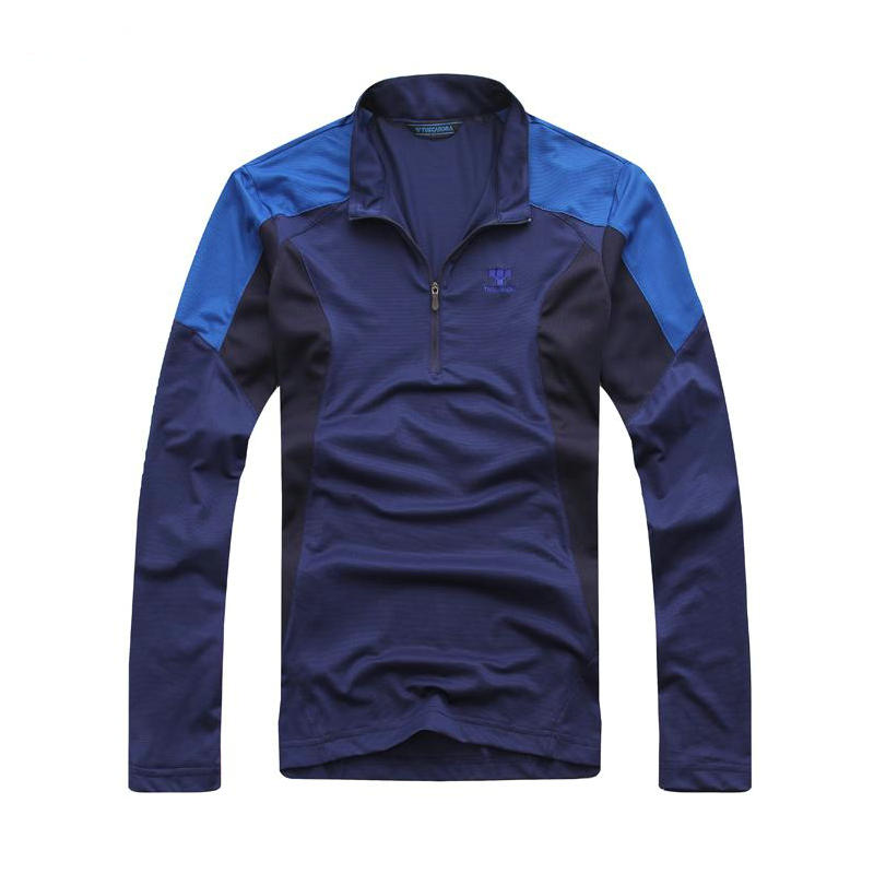 春秋夏戶外休閒登山騎行半拉鍊速乾防嗮T恤男士款彈力拼色長袖