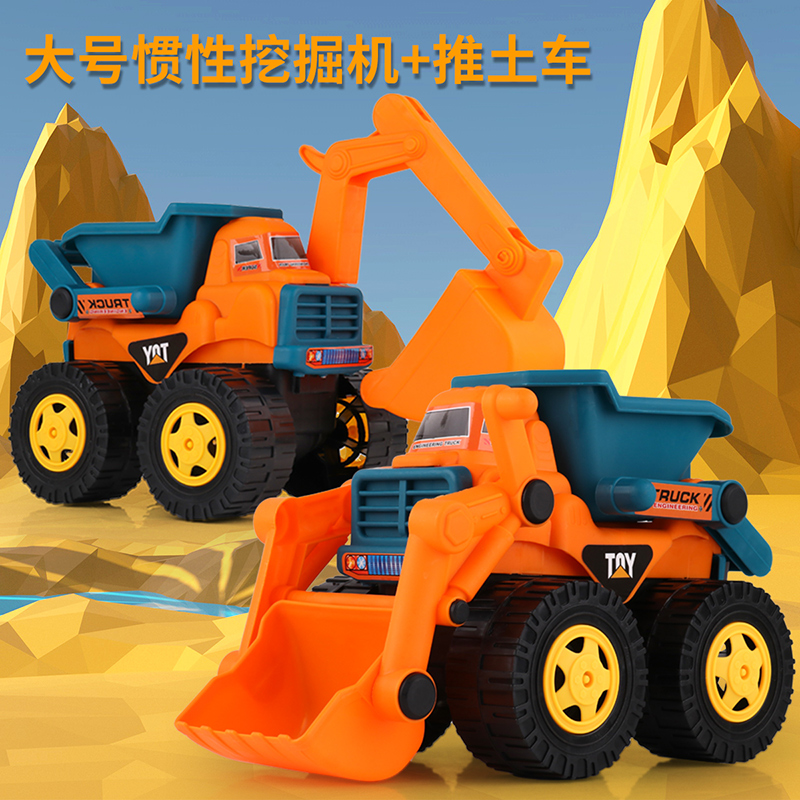 大号挖掘机惯性工程车号推土机玩具男孩儿童挖沙铲车沙滩玩具