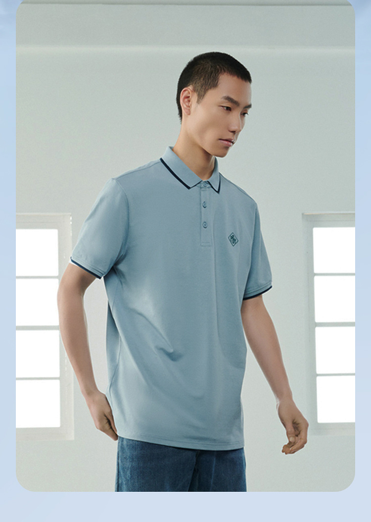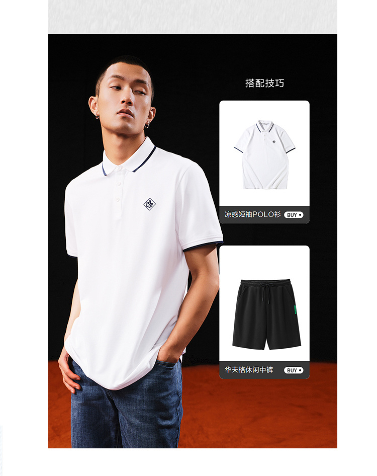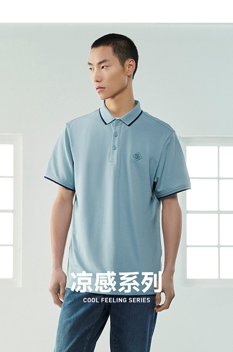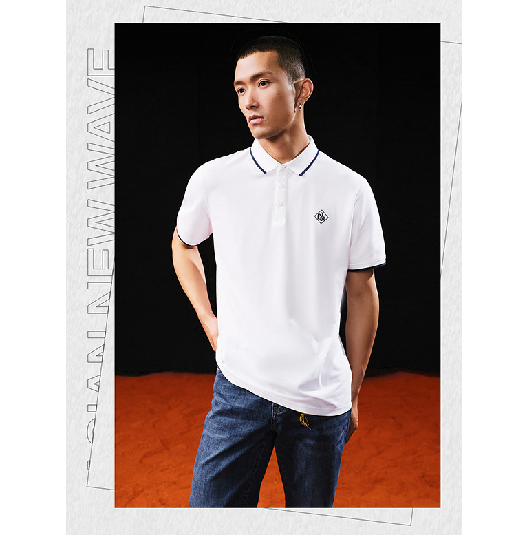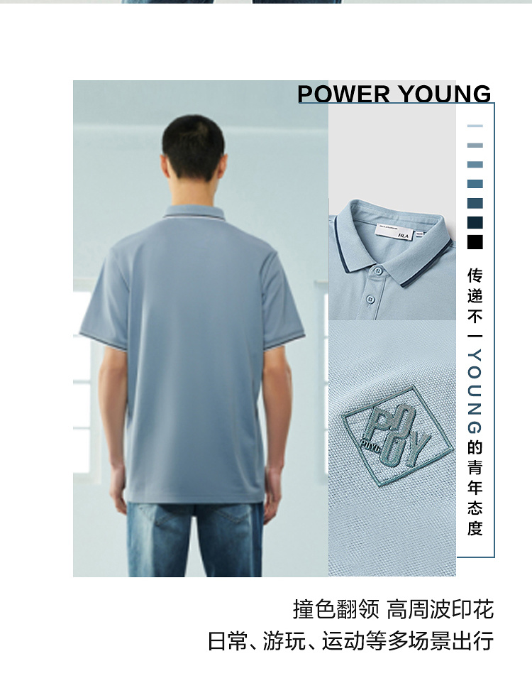 【涼感】海瀾之家POWER YOUNG短袖POLO衫23春夏新款撞色黑白T恤男