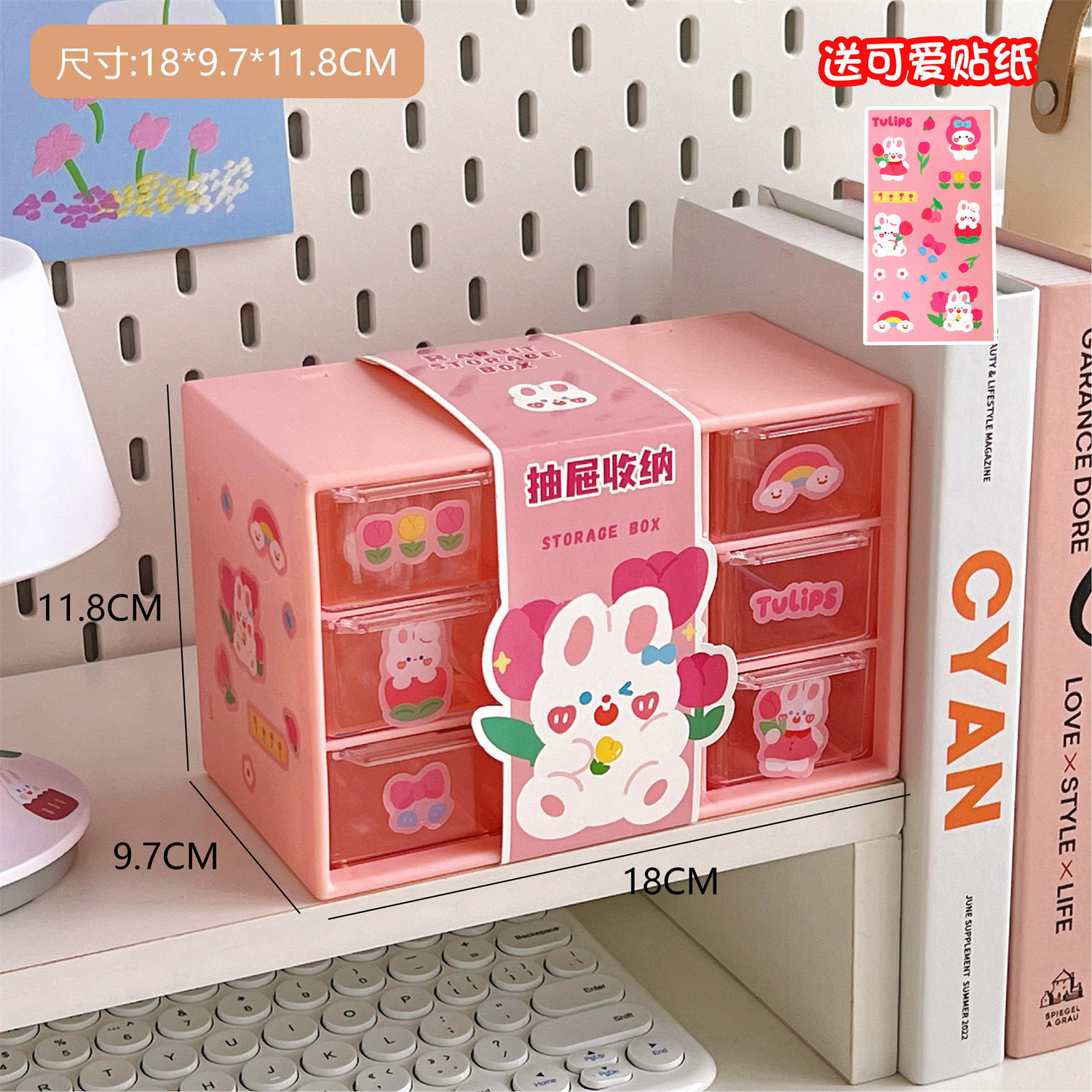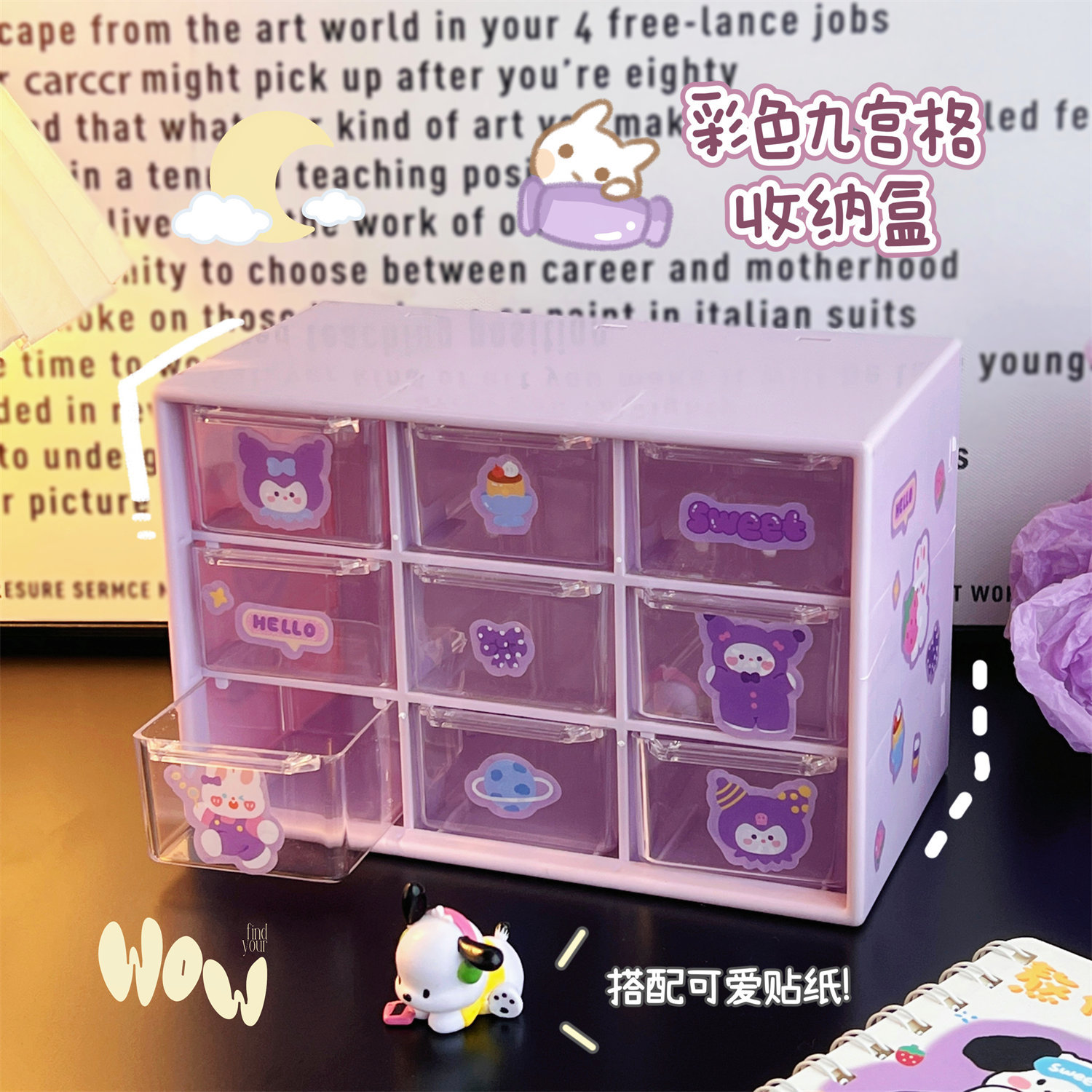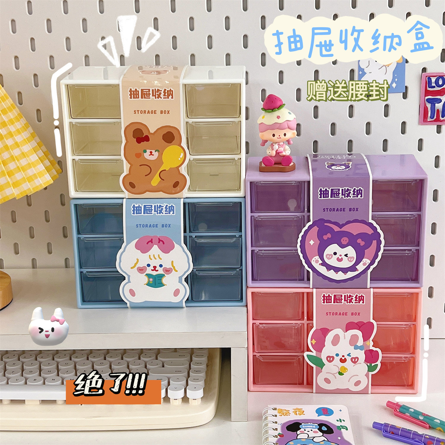 学生少女心ins腰封九宫格防尘抽屉式收纳盒桌面文具首饰化妆品盒