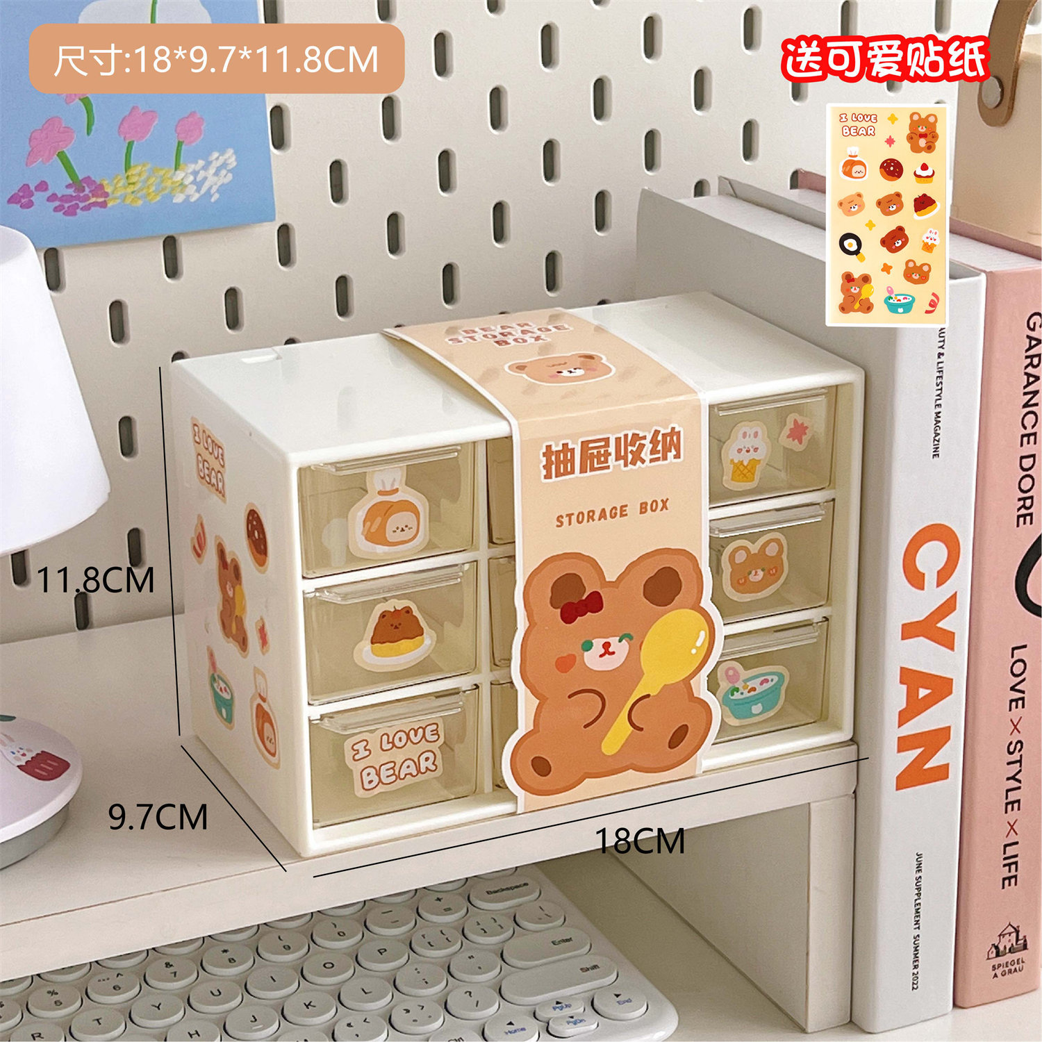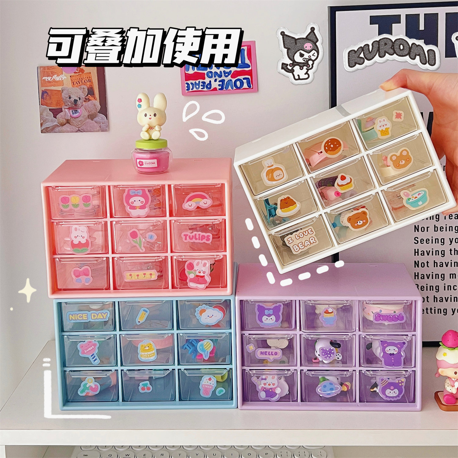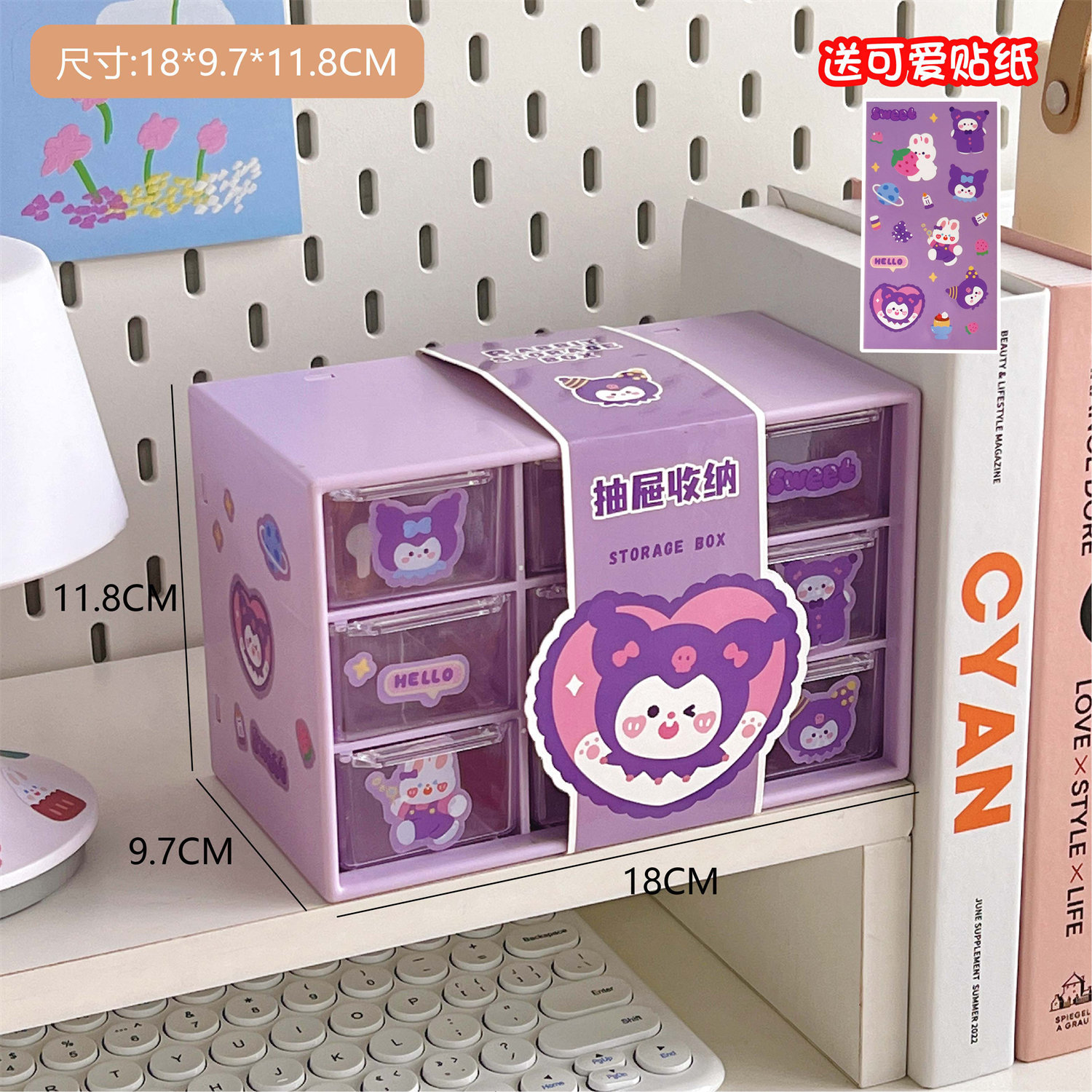 学生少女心ins腰封九宫格防尘抽屉式收纳盒桌面文具首饰化妆品盒