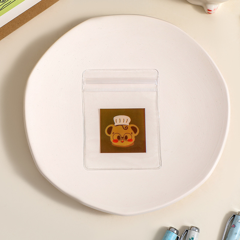 颜色 1#5*7cm【透明】,2#7*10cm【透明】,3#9*13cm【透明】,4#6*8cm【厨师小熊】,5#6*8cm【橙子】,6#6*8cm【花朵】,7#6*8cm【樱桃】,8#6*8cm【面包】,9#6*8cm【小白花】,10#6*8cm【小红花】,11#6*8cm【小羊】,12#8*12cm【蛋糕】,13#8*12cm【梨子】,15#8*12cm【三明治】,17#8*12cm【招财猫】,20#8*12cm【黑熊】