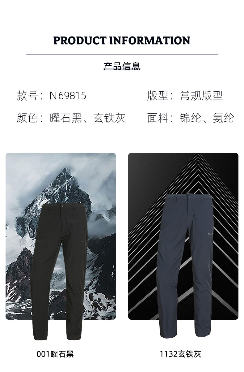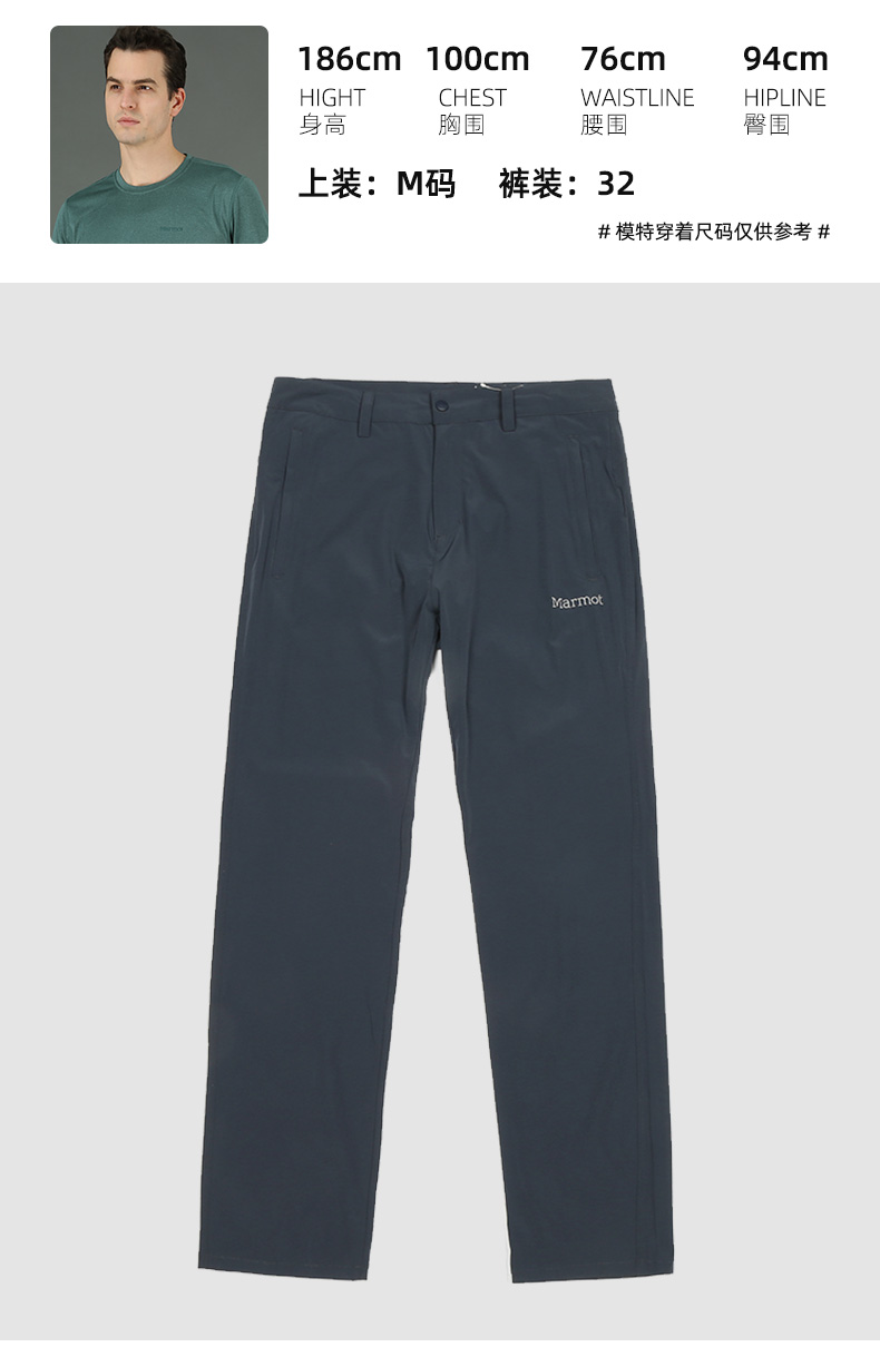 Marmot土撥鼠春夏款城市戶外運動輕量透氣男士速乾褲長褲