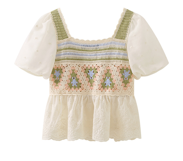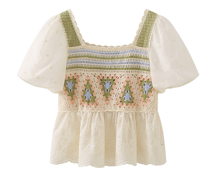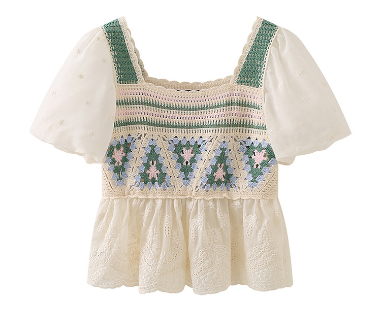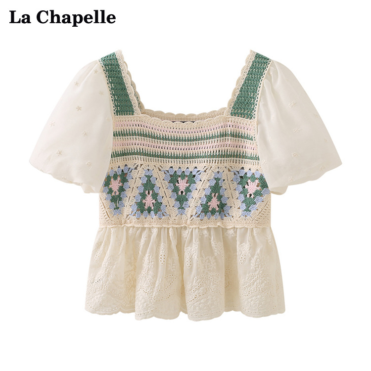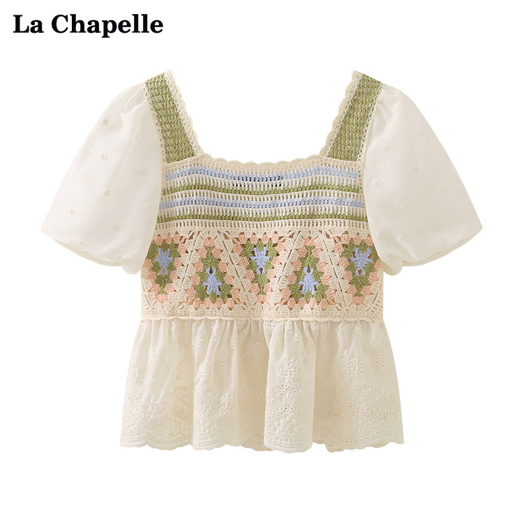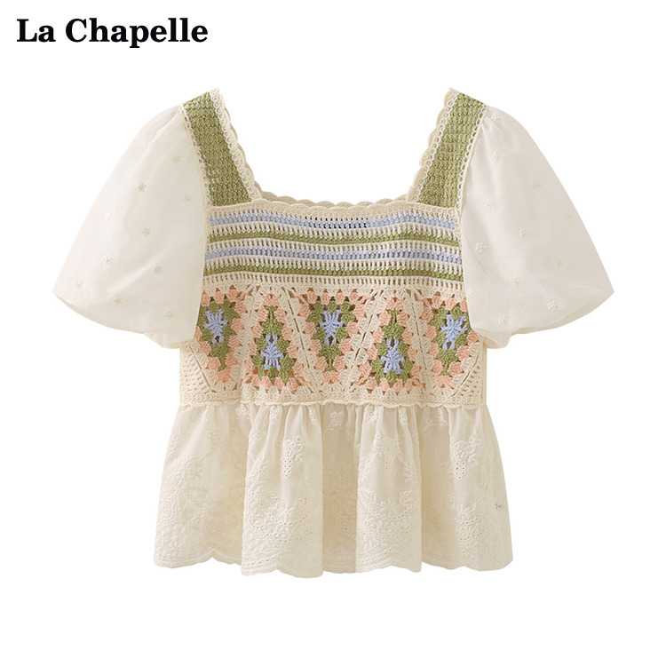 拉夏貝爾/La Chapelle夏季新款短袖泡泡袖方領上衣女設計感襯衫