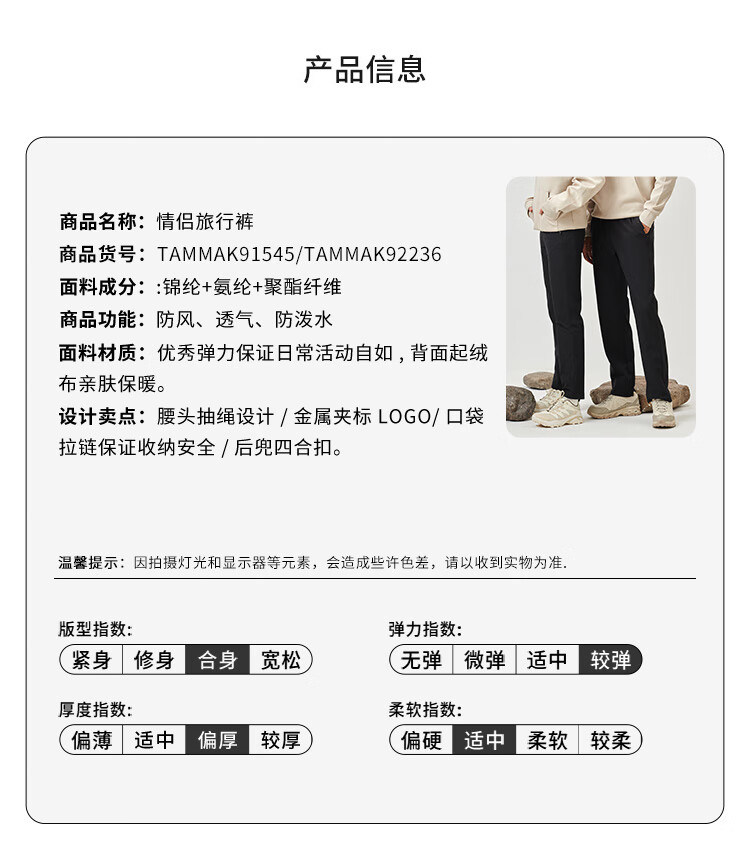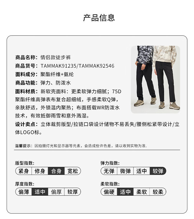 探路者軟殼褲男女22秋冬戶外加絨保暖徒步褲TAMMAK91545/91235