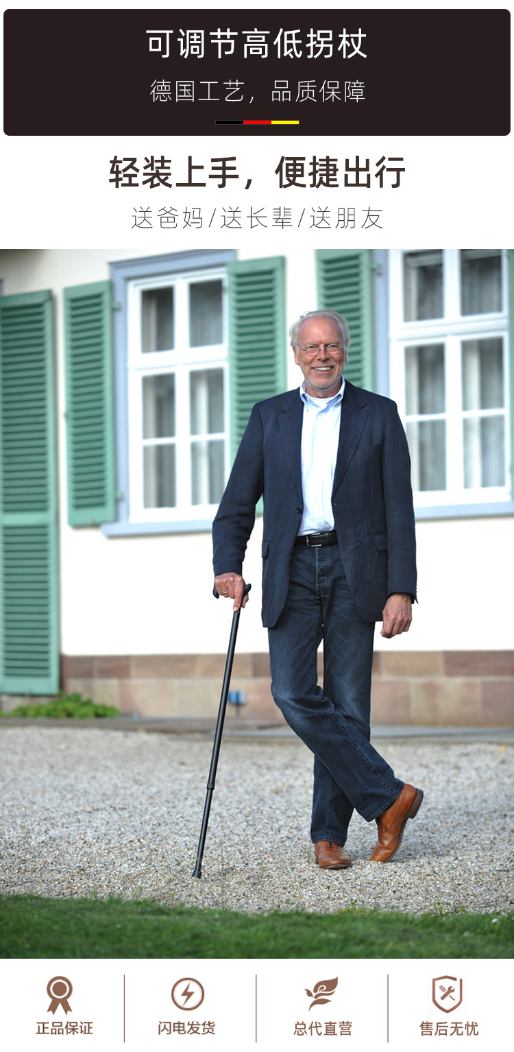 德國高仕卓手杖碳纖輕便防滑可調節老人老年人掌型柺杖歐洲衚衕