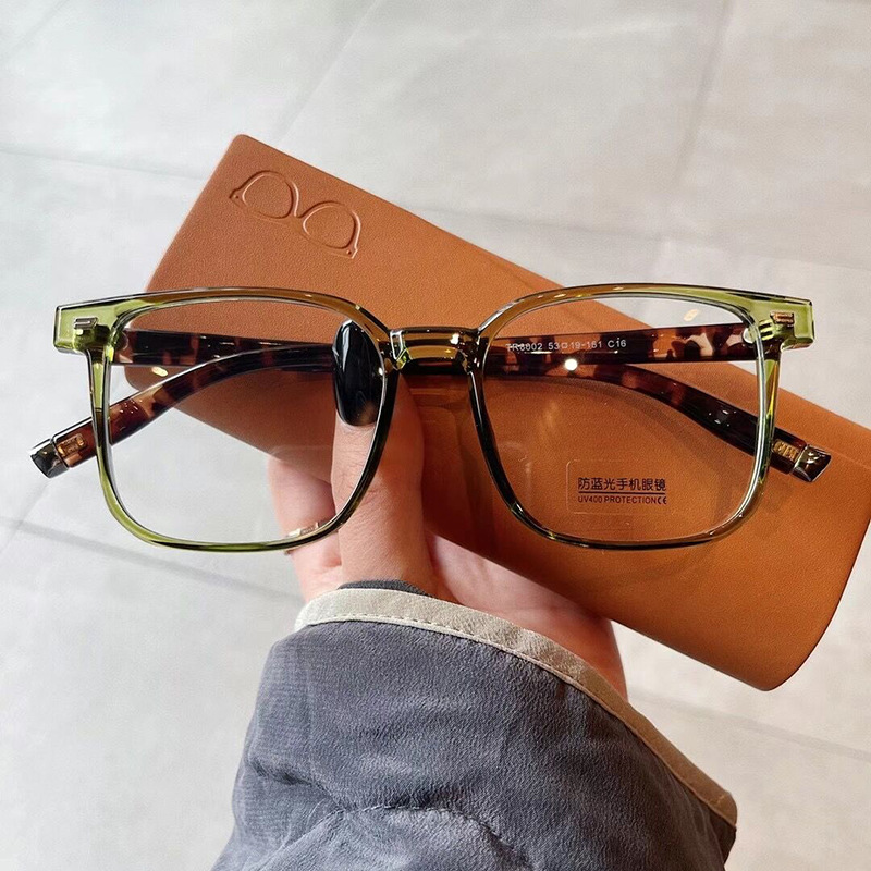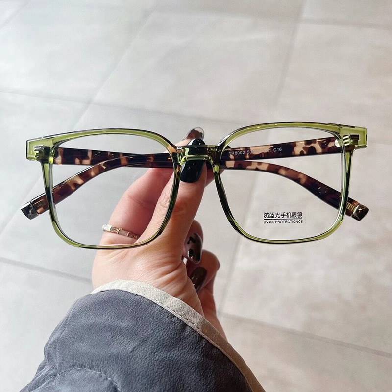 千艾新款防蓝光眼镜 个性米钉素颜平光镜韩版TR90绿色近视眼镜框