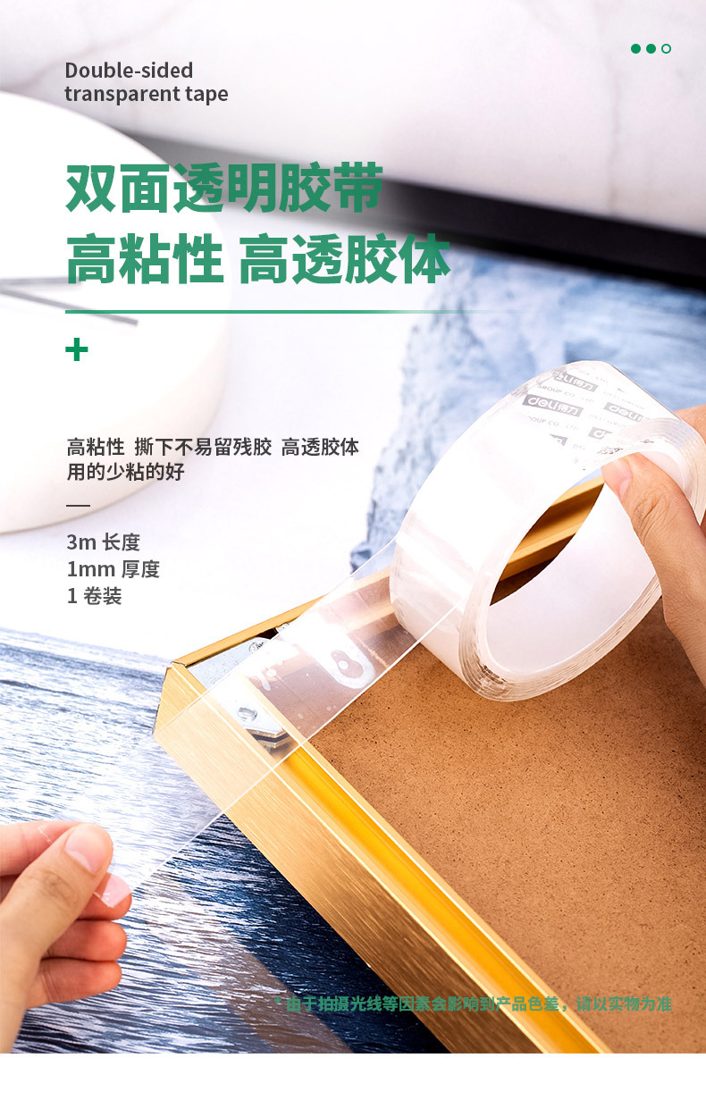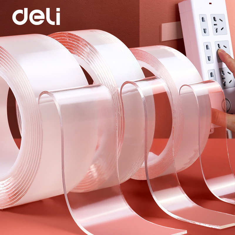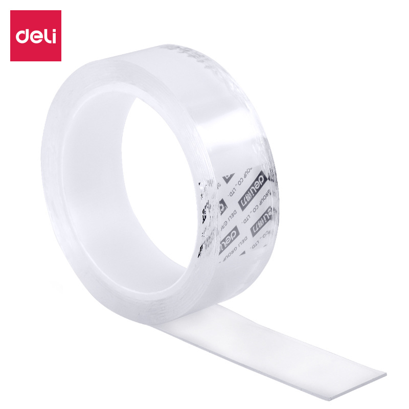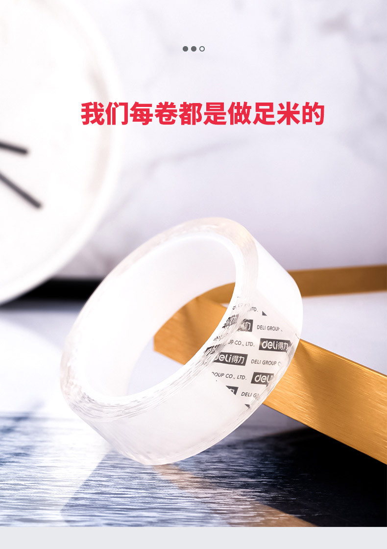 得力33601双面胶带纳米加厚吸附胶卷强力纳胶带无痕双面透明胶带