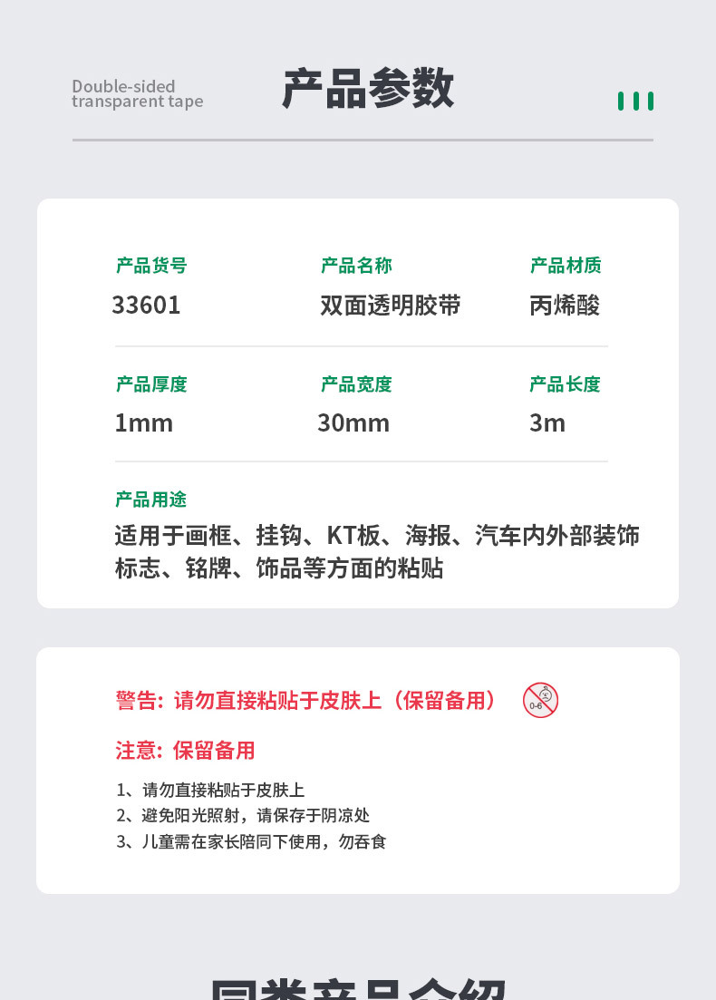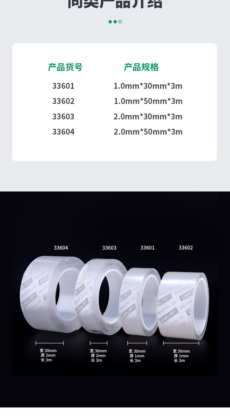 颜色 33601(1mm*30mm*3m),33603(2mm*30mm*3m),33604(2mm*50mm*3m)