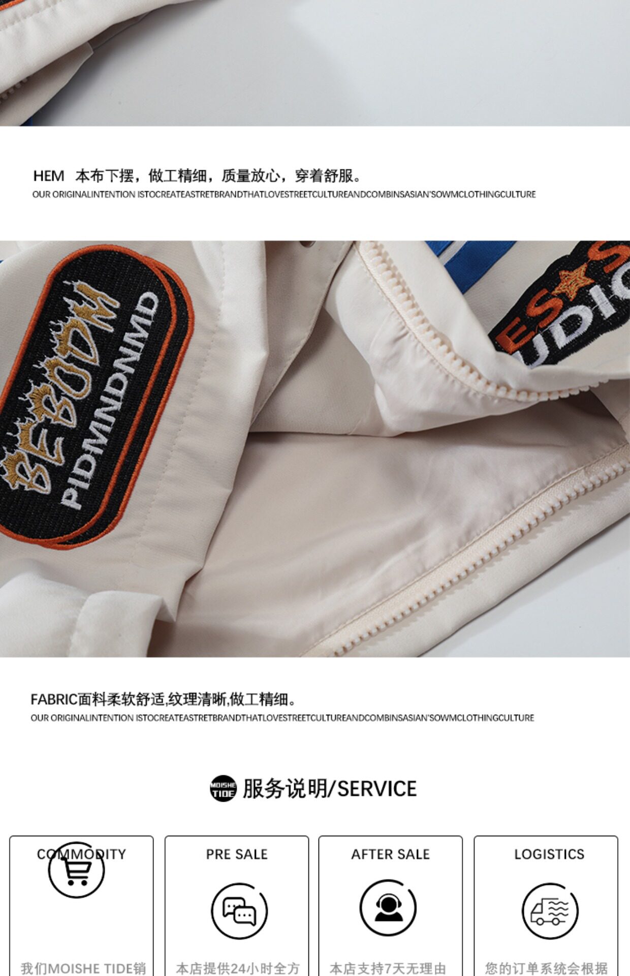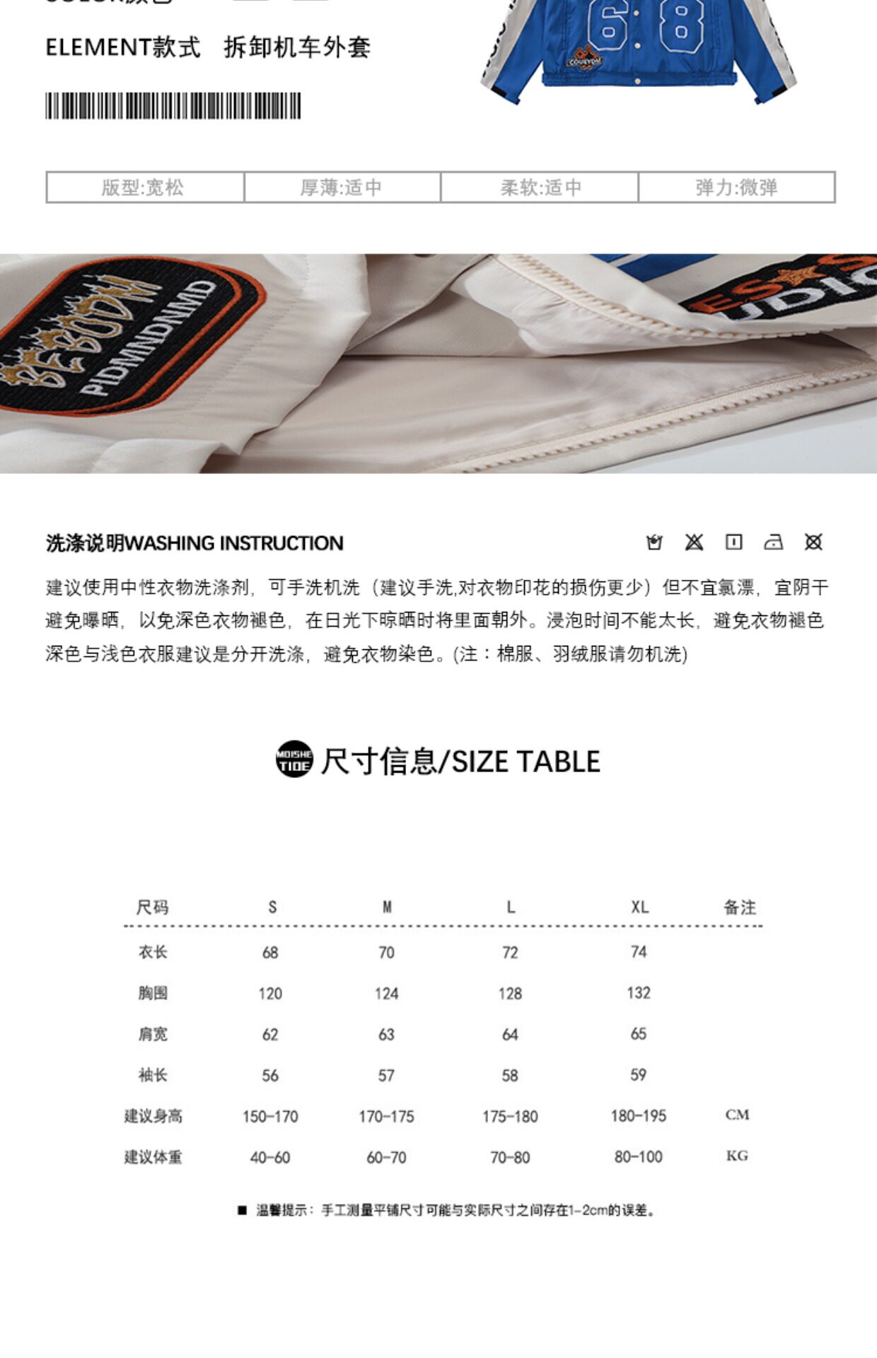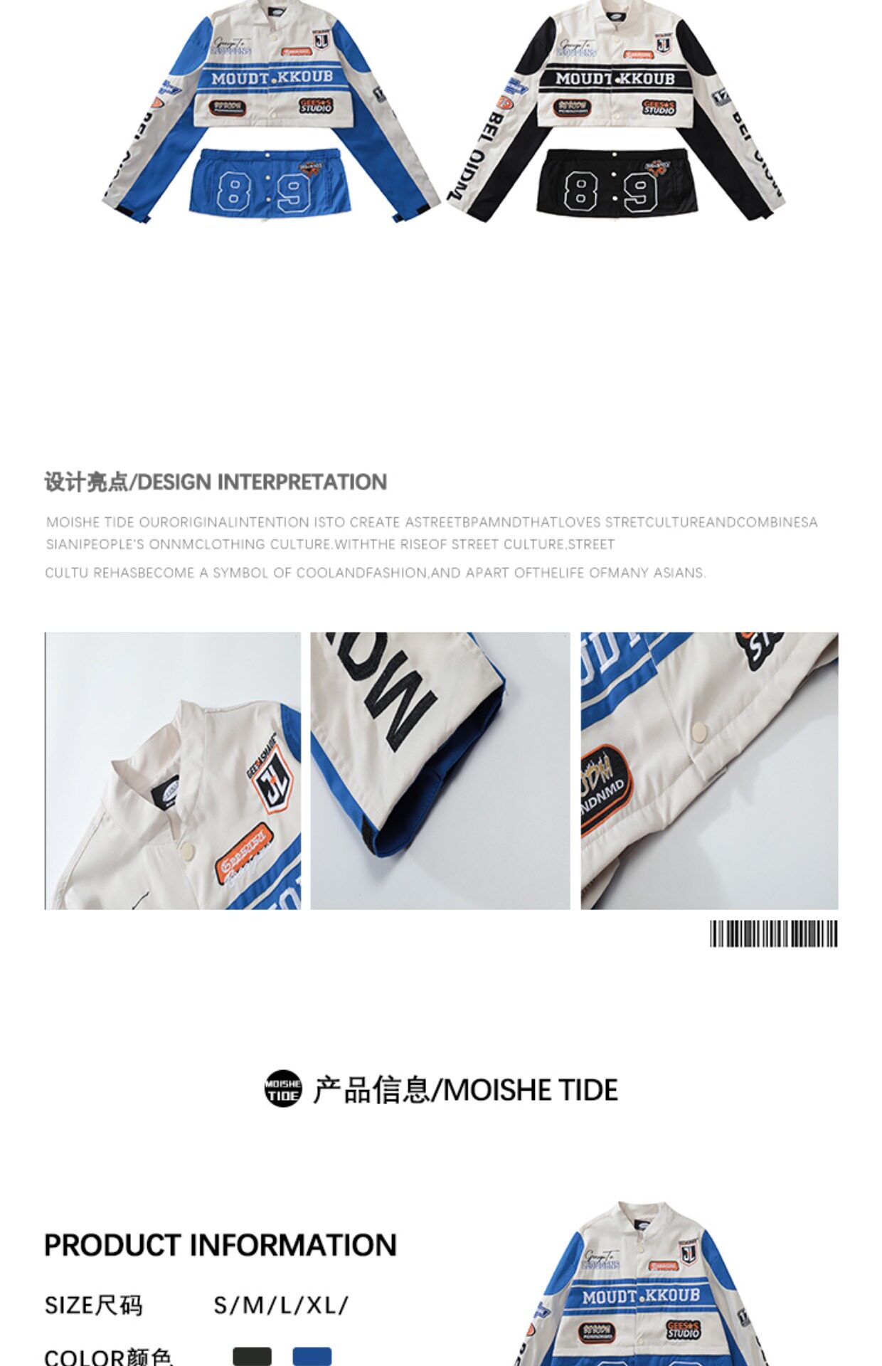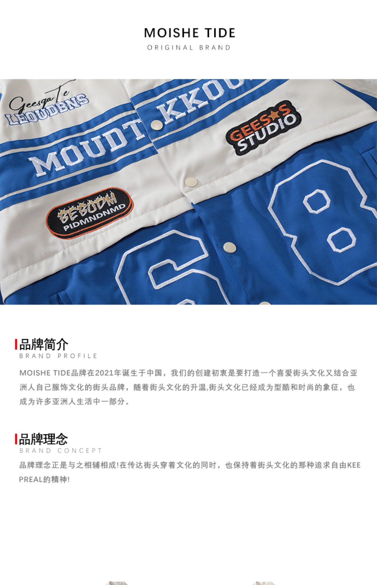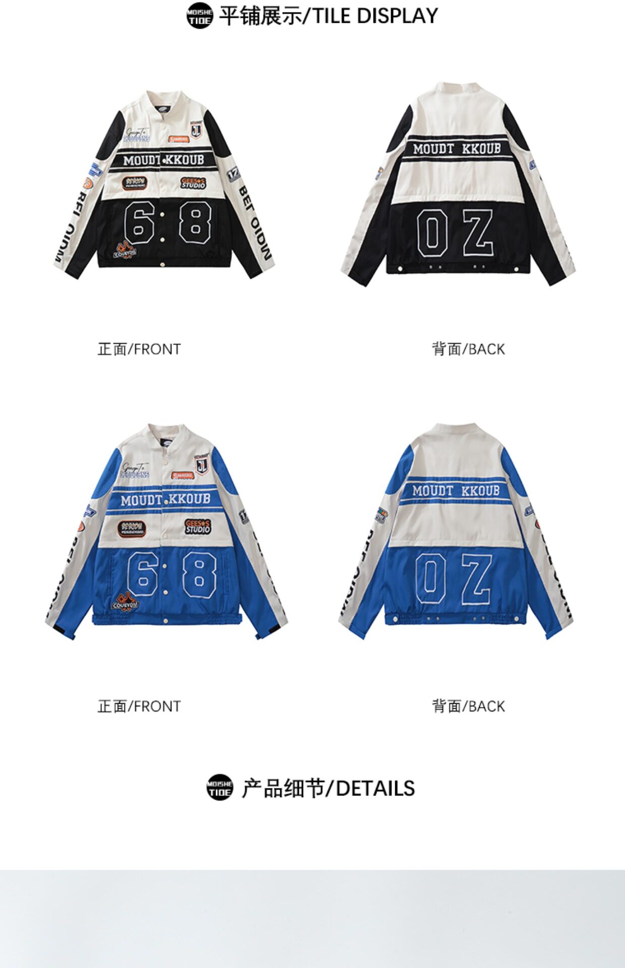 MOISHE TIDE美式嘻哈可拆卸機車服外套男女寬鬆ins情侶棒球服夾克