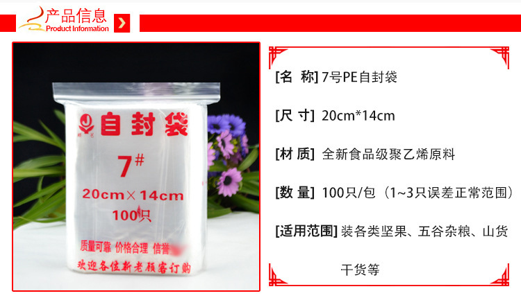 厂家批发7号pe自封袋保鲜食品袋塑料包装袋100只透明封口袋