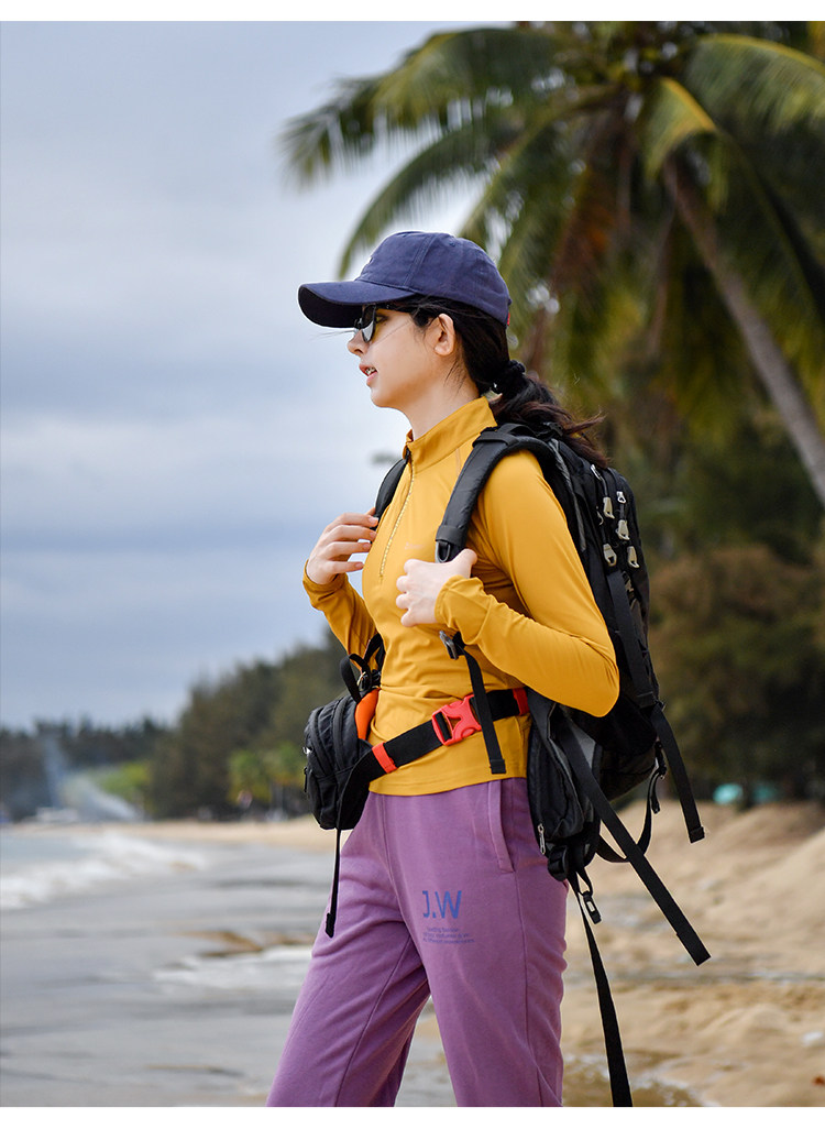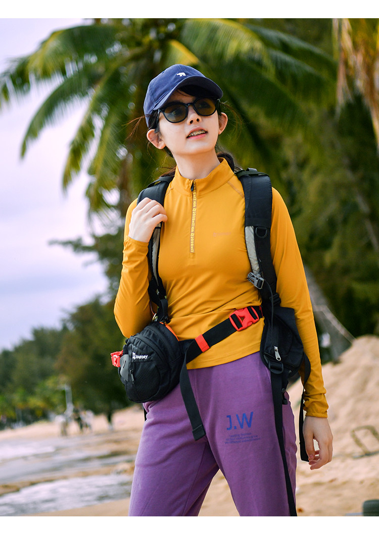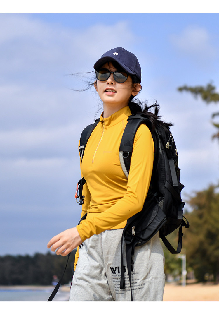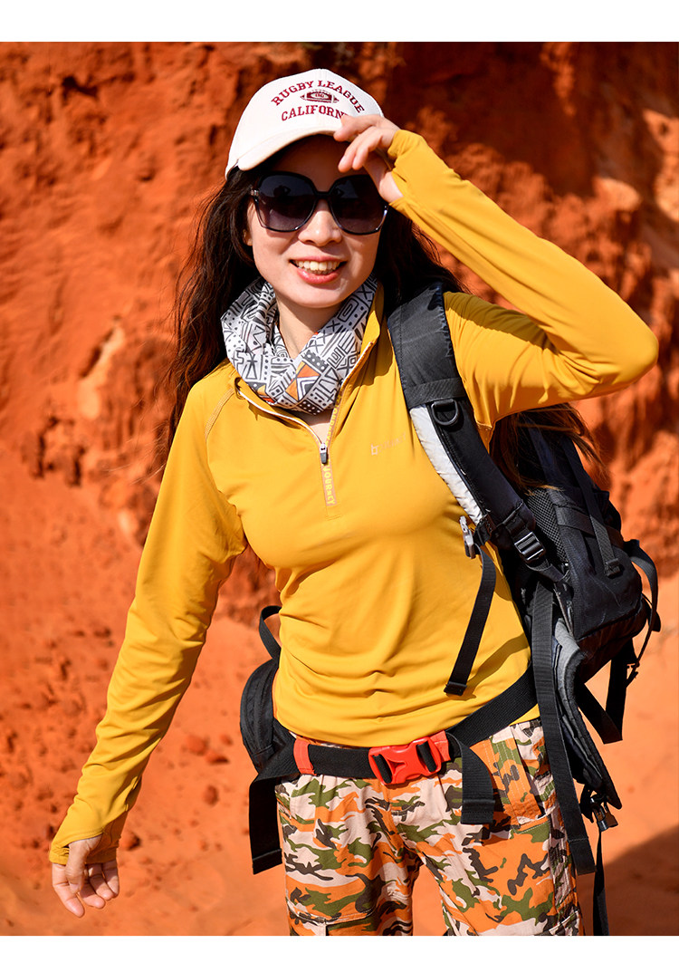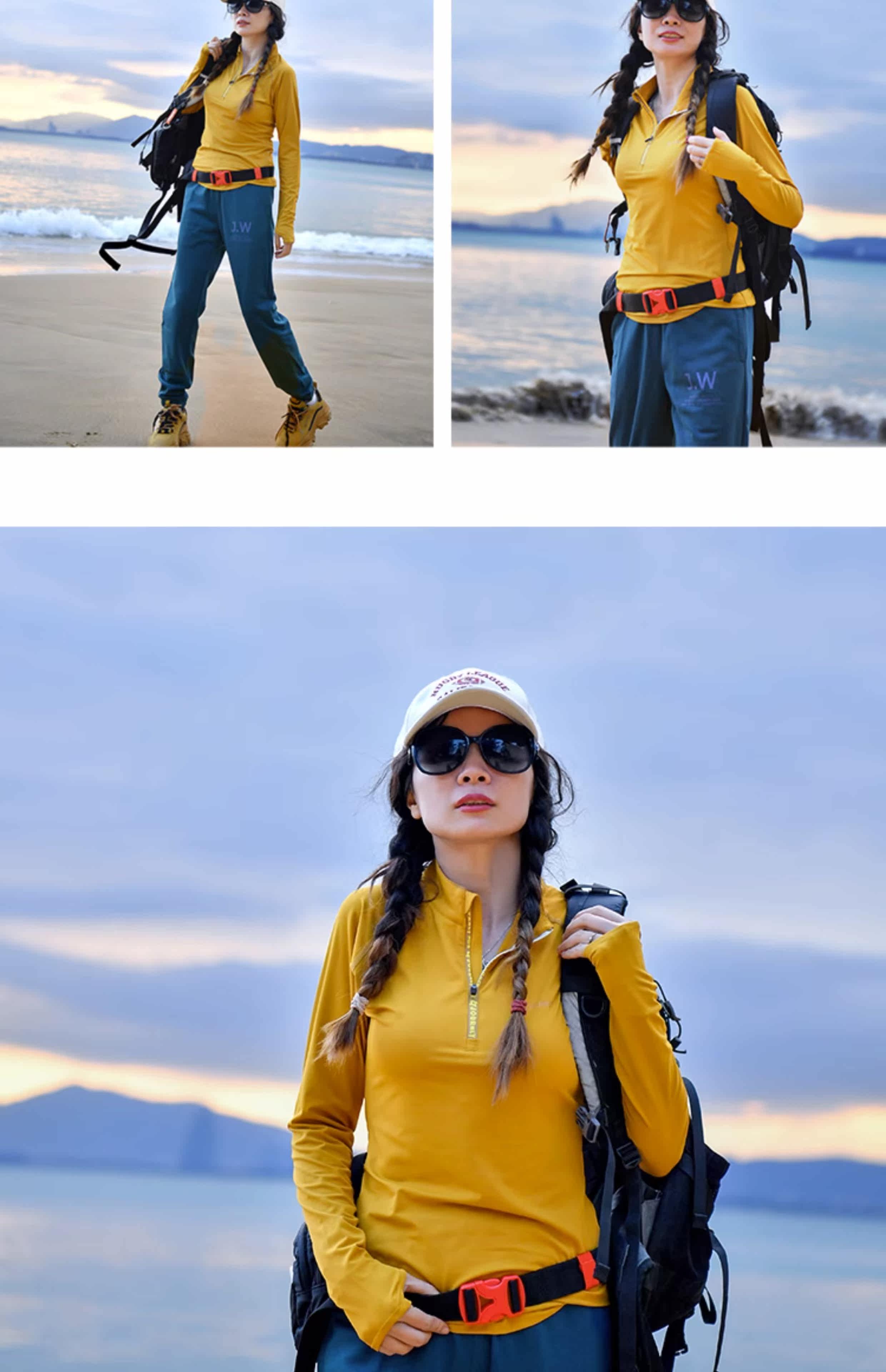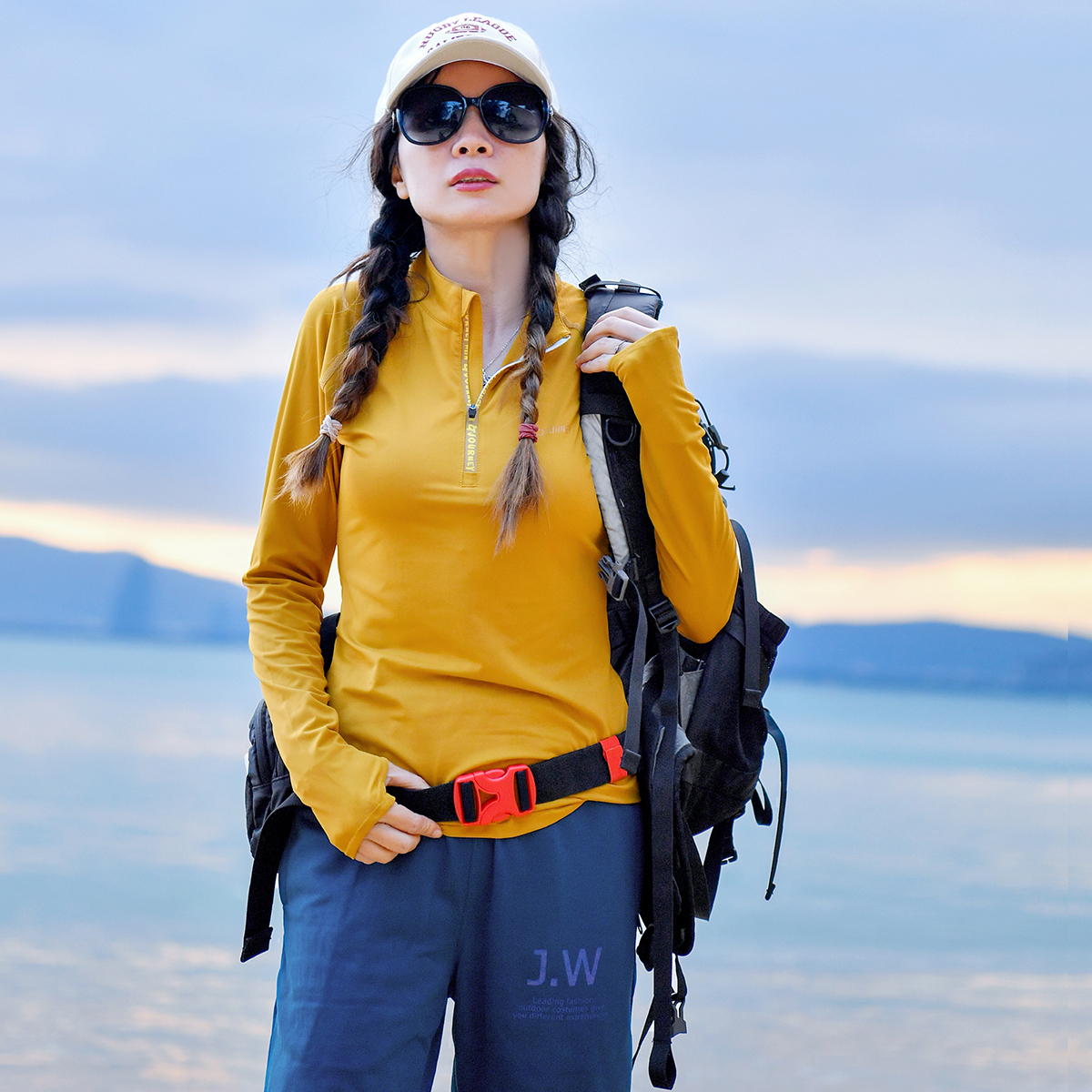 北京森林戶外休閒旅行登山立領長袖合身顯瘦彈力透氣速乾衣T恤女
