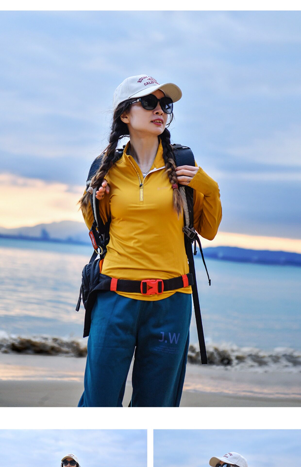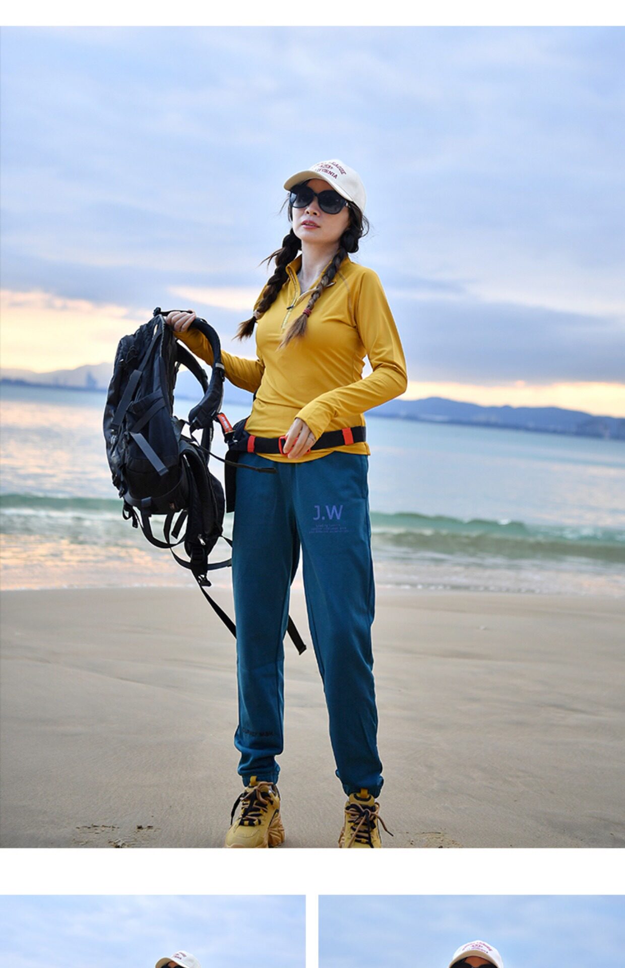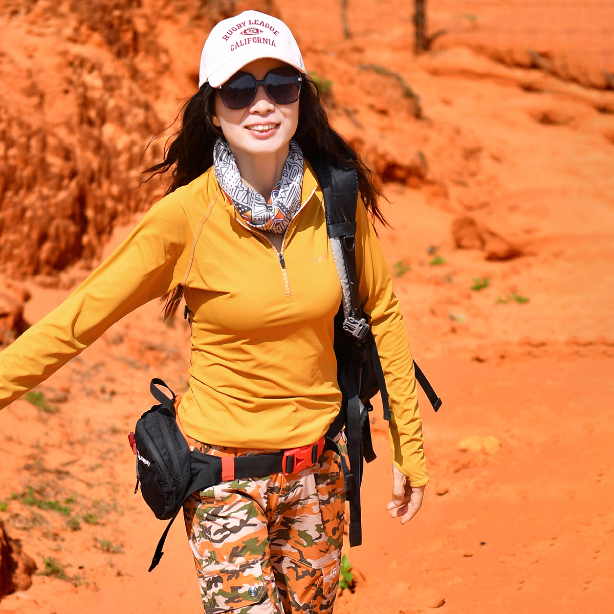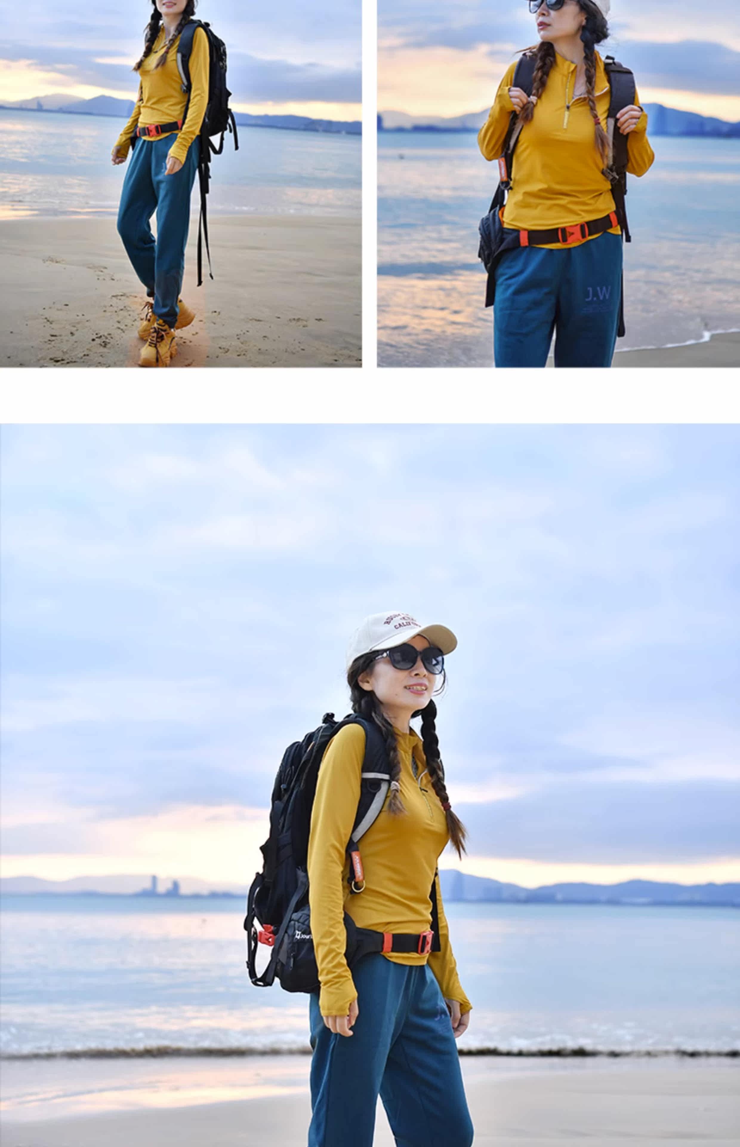北京森林戶外休閒旅行登山立領長袖合身顯瘦彈力透氣速乾衣T恤女