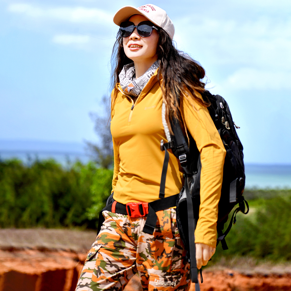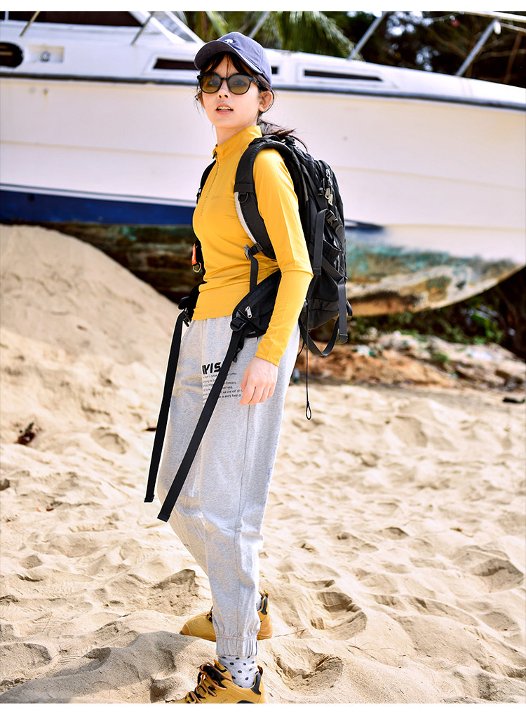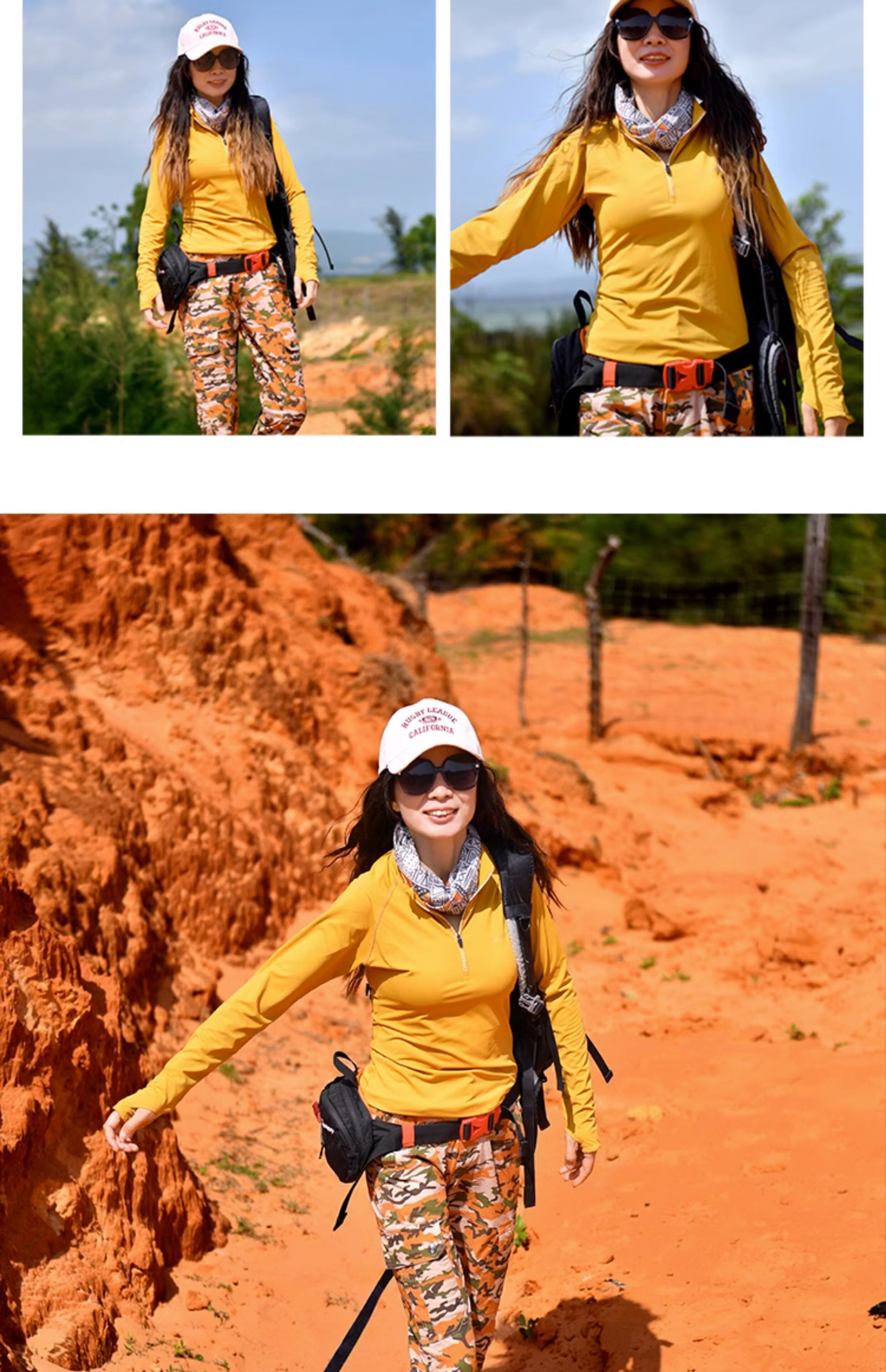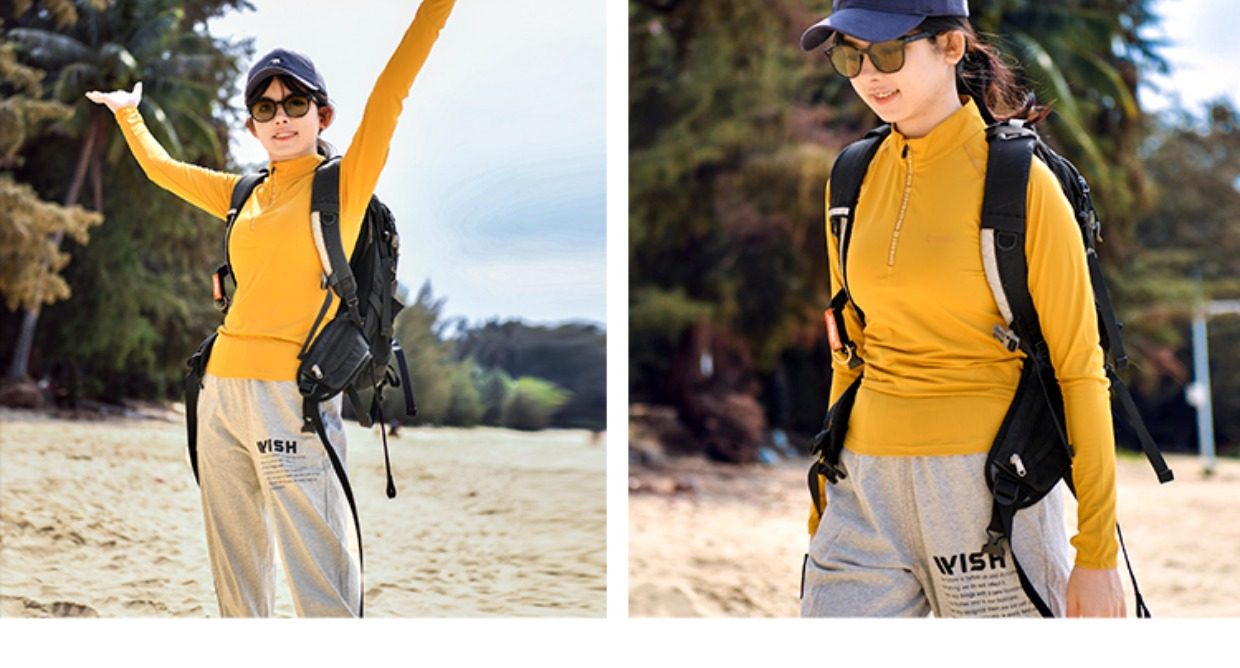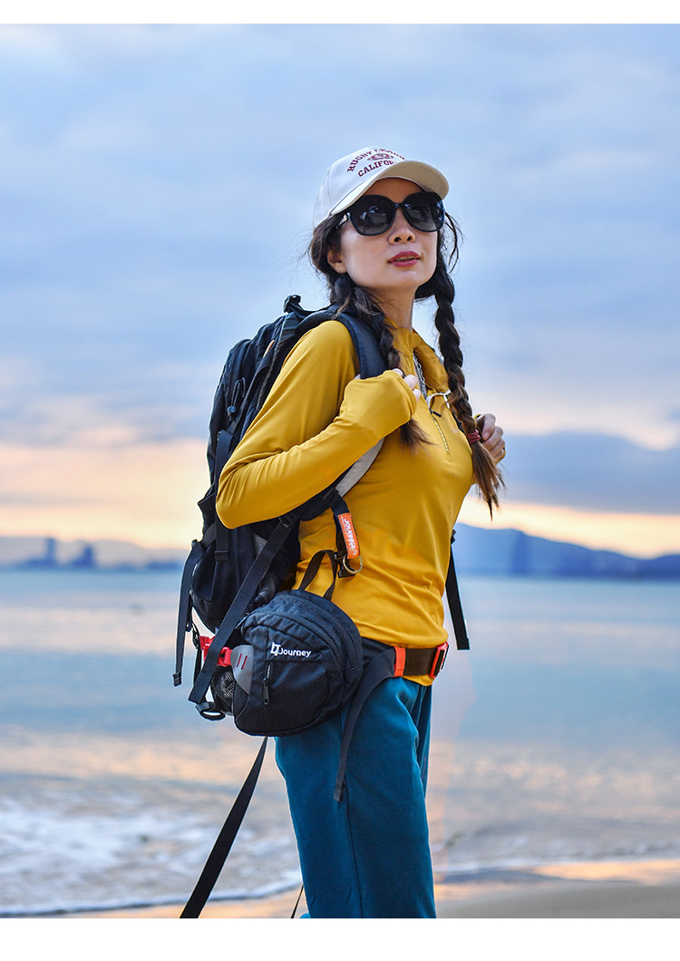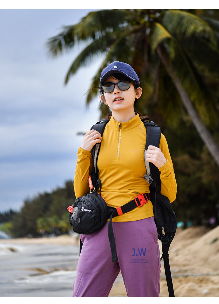 北京森林戶外休閒旅行登山立領長袖合身顯瘦彈力透氣速乾衣T恤女