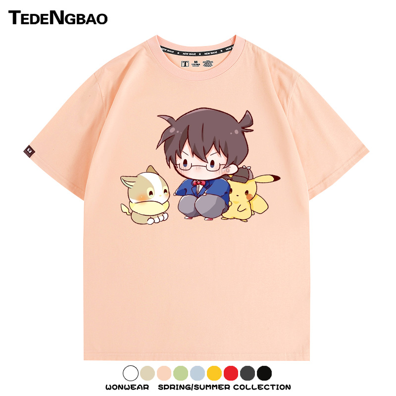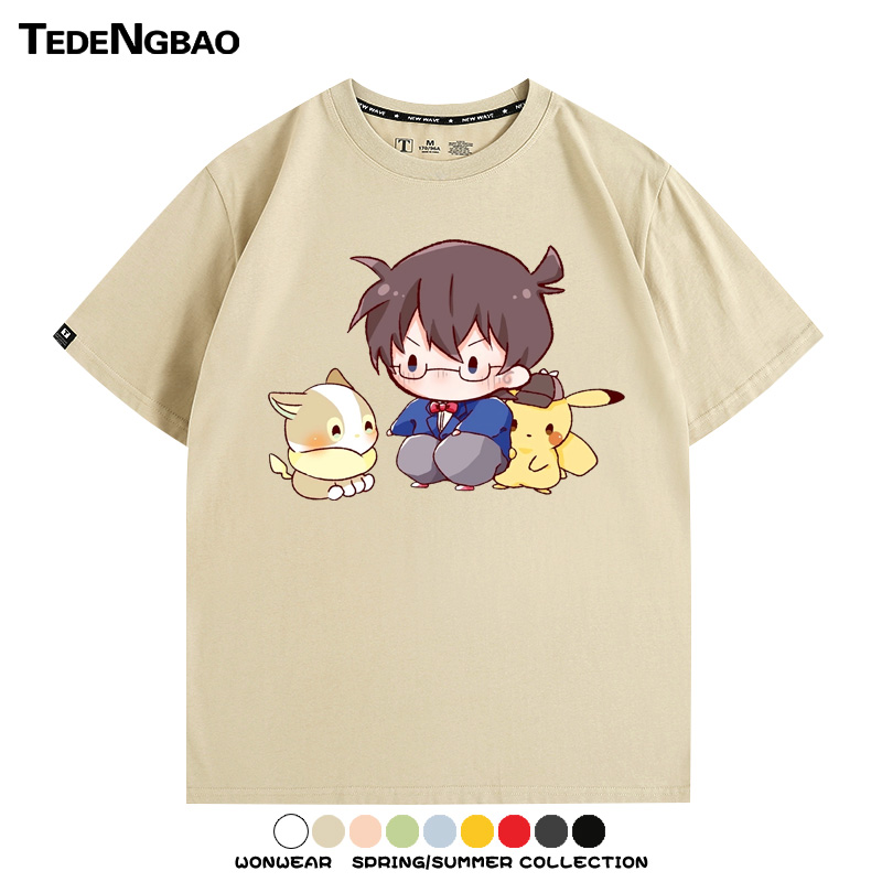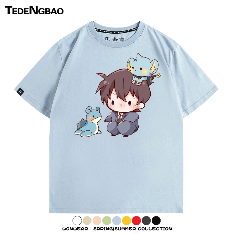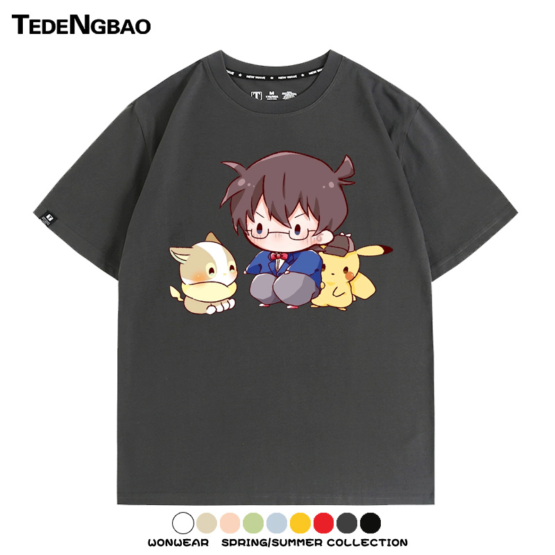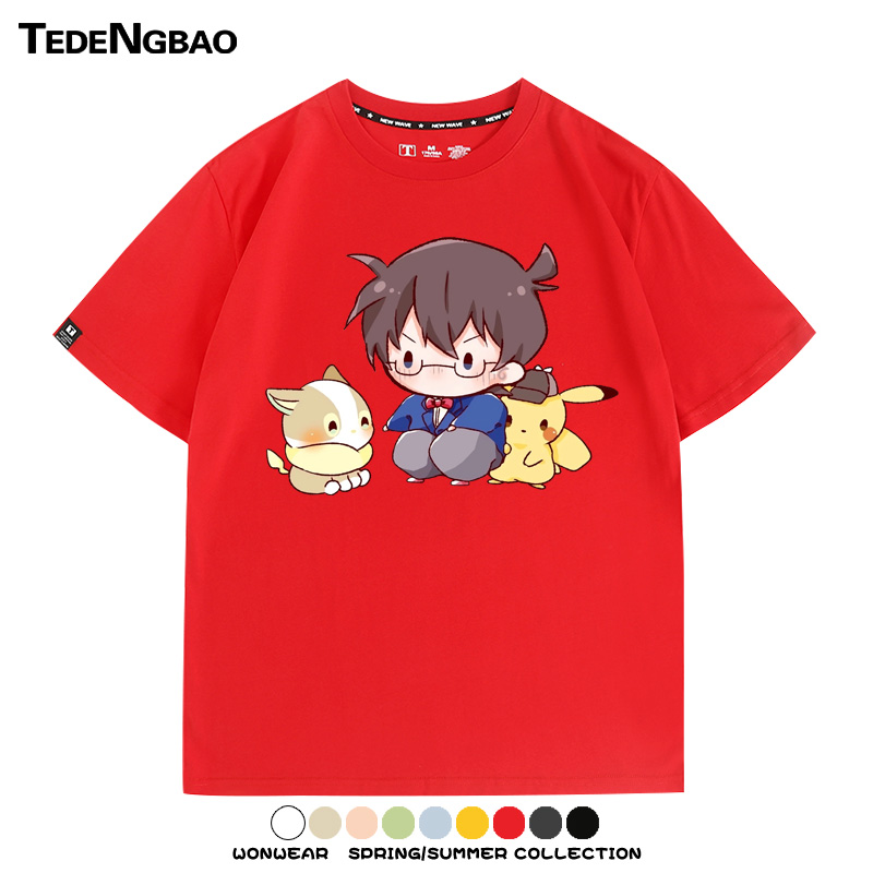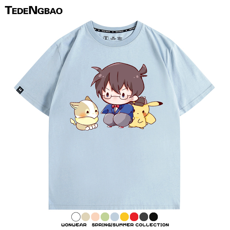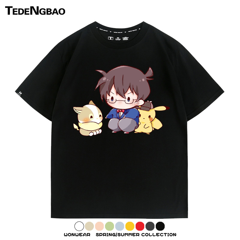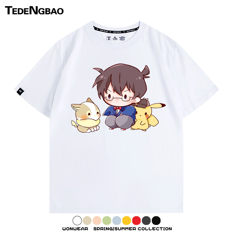 名偵探柯南精靈寶可夢聯名卡通情侶裝短袖上衣服動漫周邊T恤衫夏
