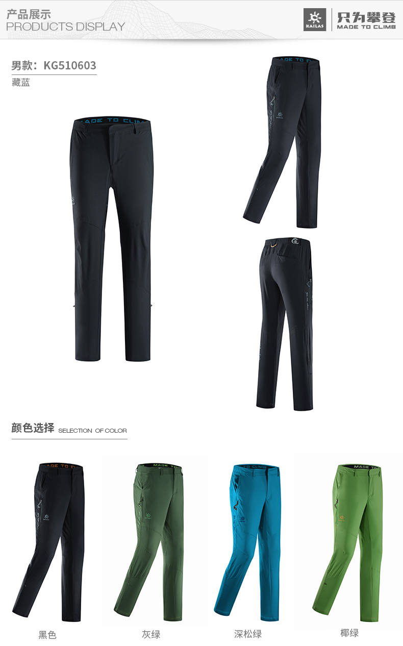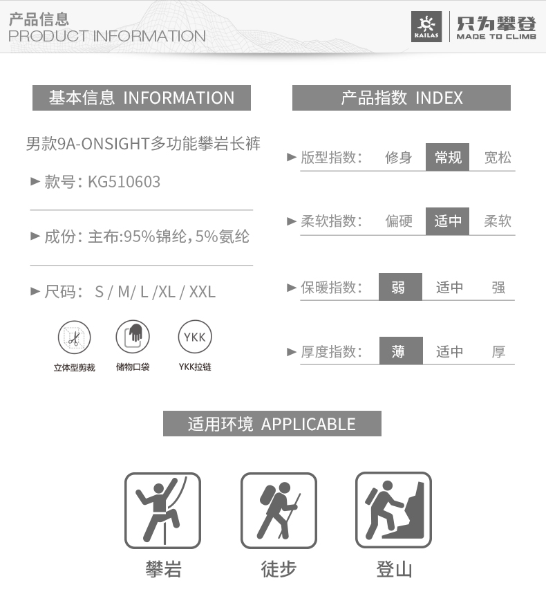 凱樂石戶外運動男款9A多功能攀巖旅行彈力耐磨長褲KG10603