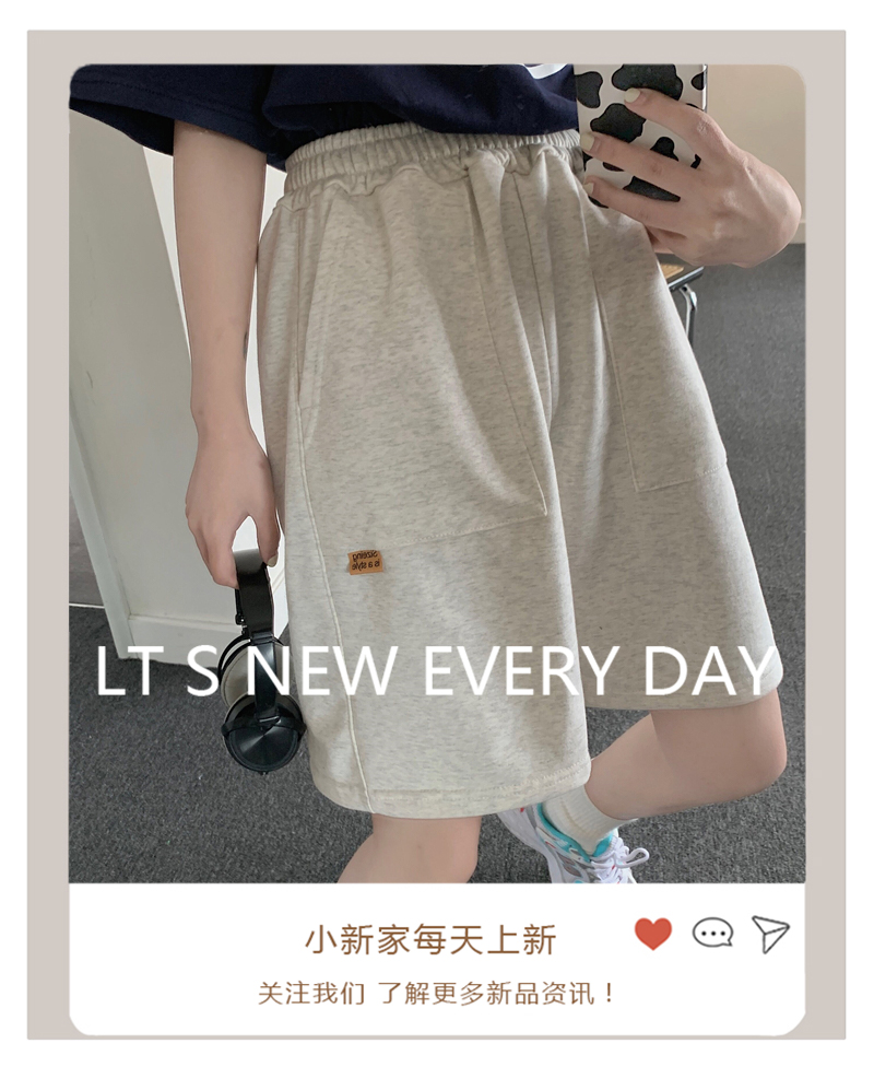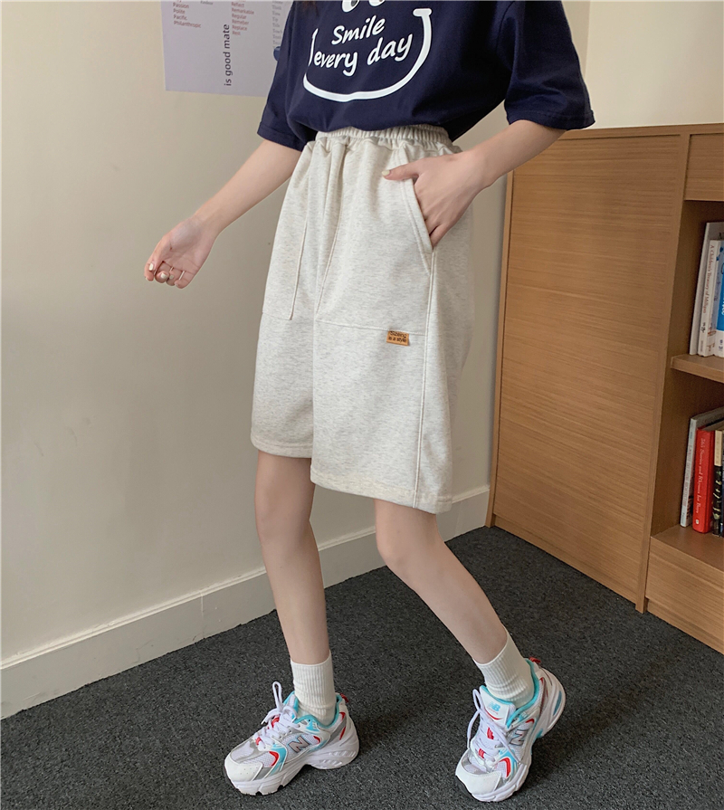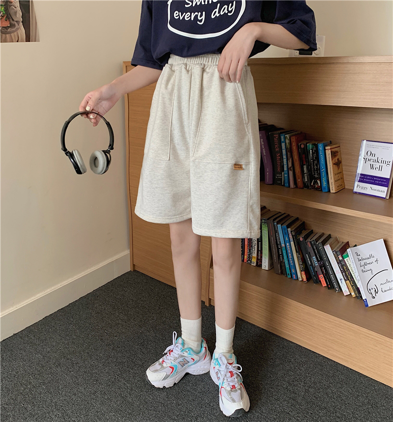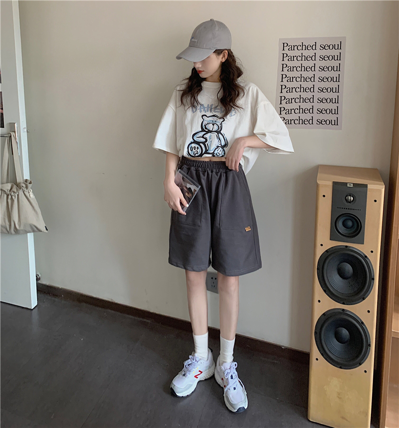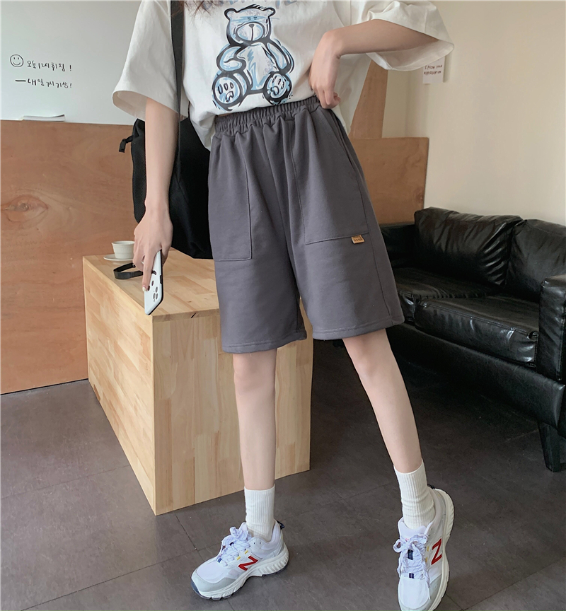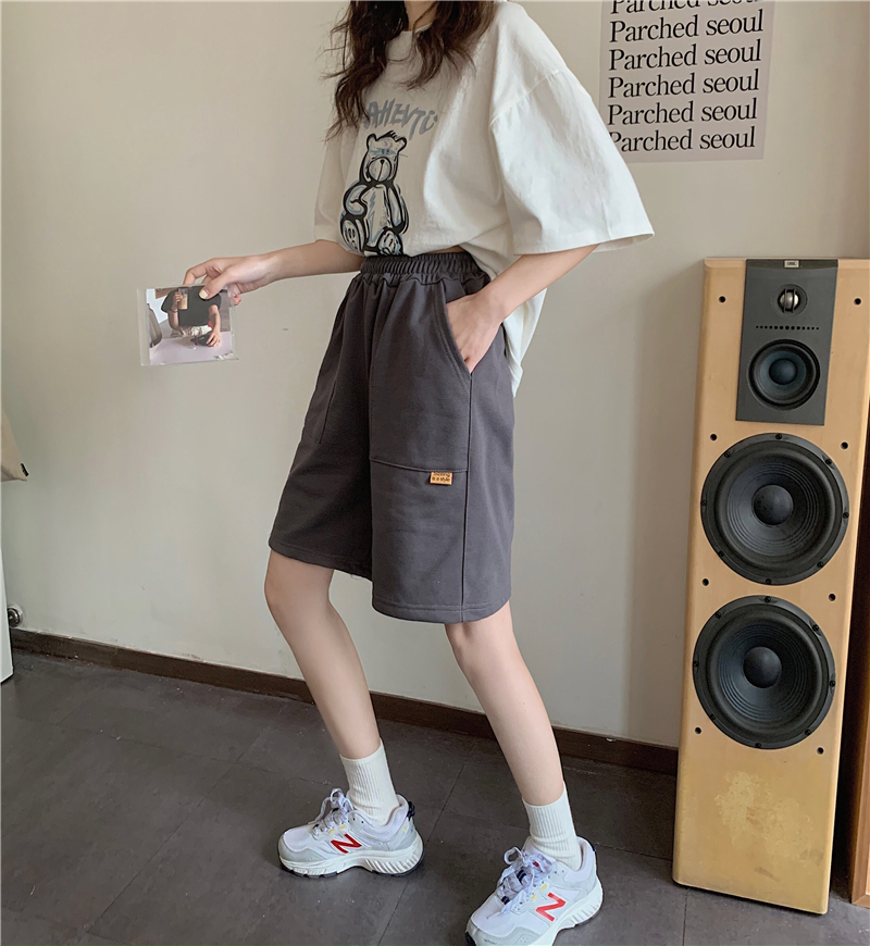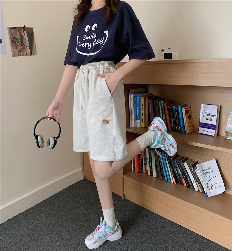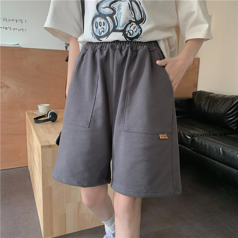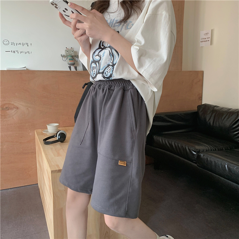 灰色運動闊腿休閒短褲女夏高腰寬鬆直筒褲子五分褲五分褲2023年新款