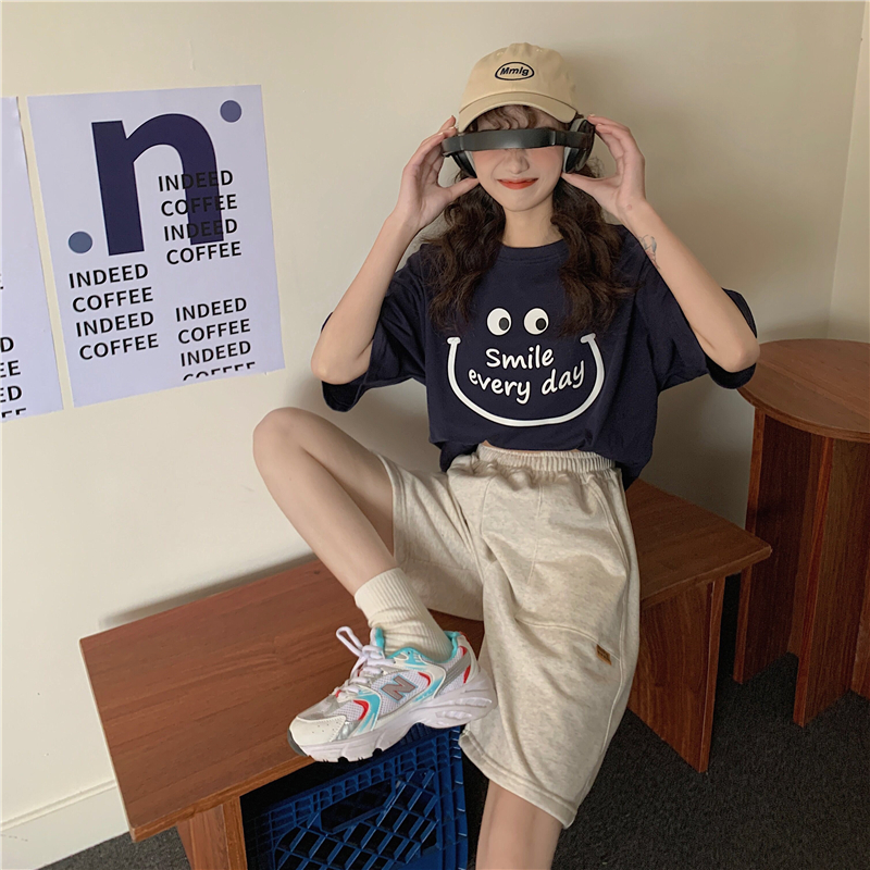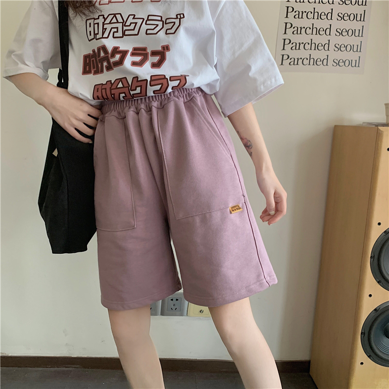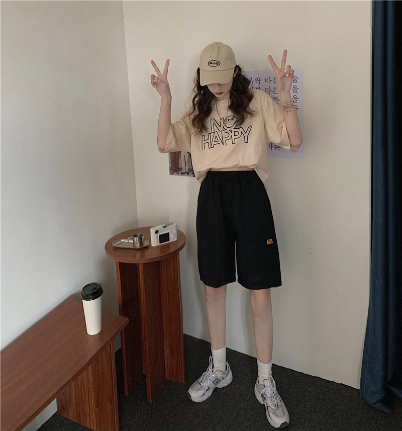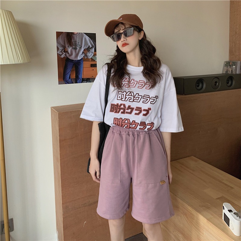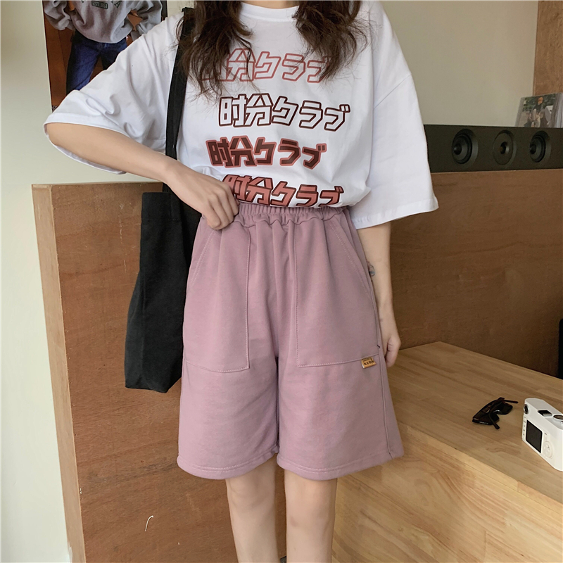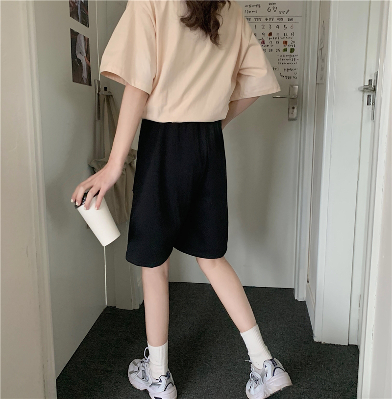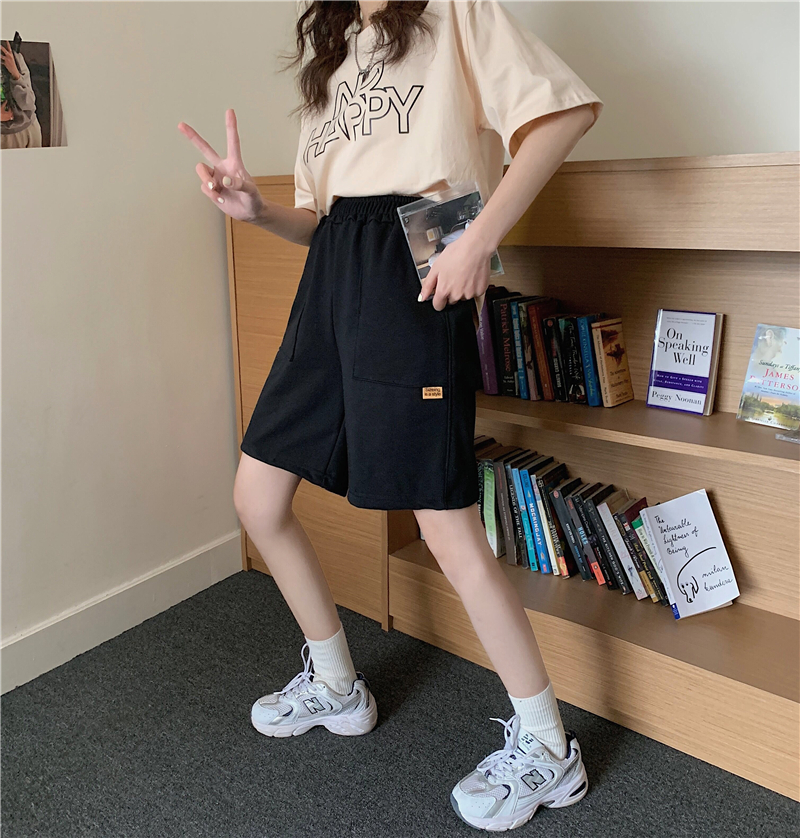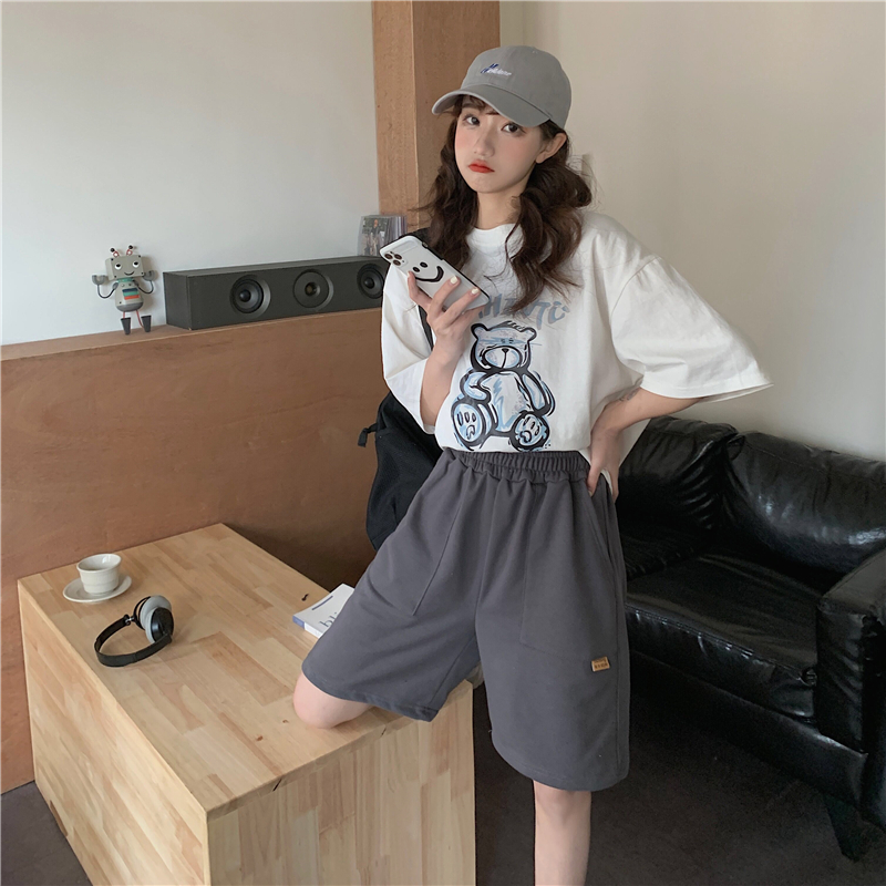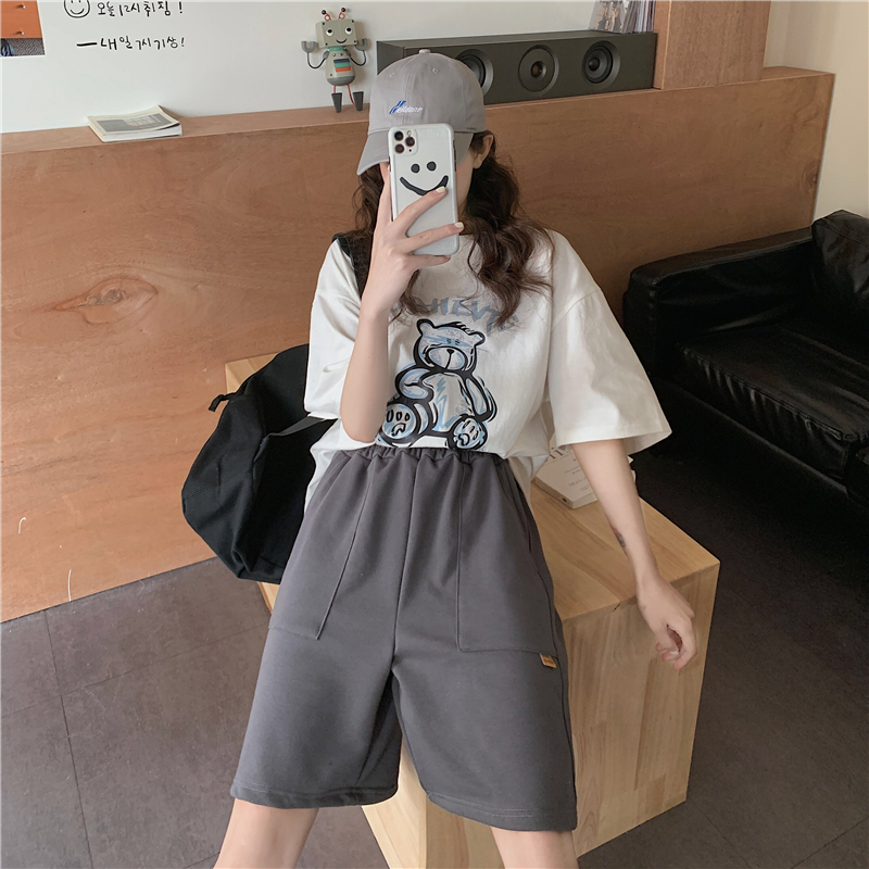 灰色運動闊腿休閒短褲女夏高腰寬鬆直筒褲子五分褲五分褲2023年新款
