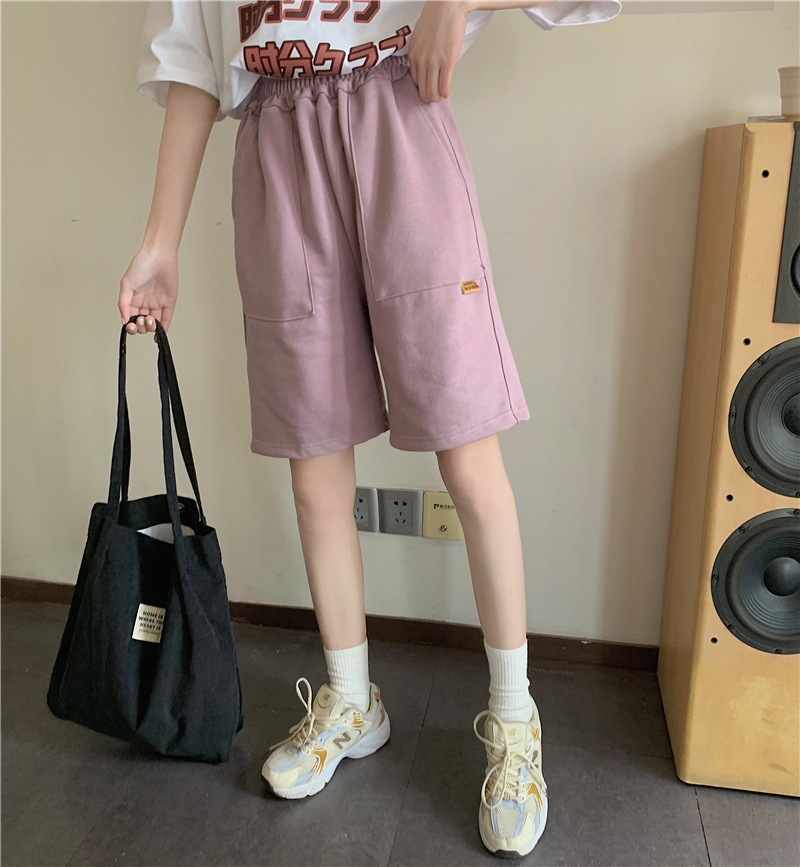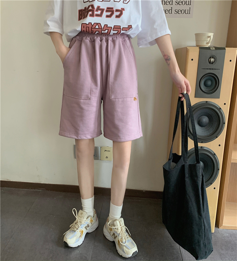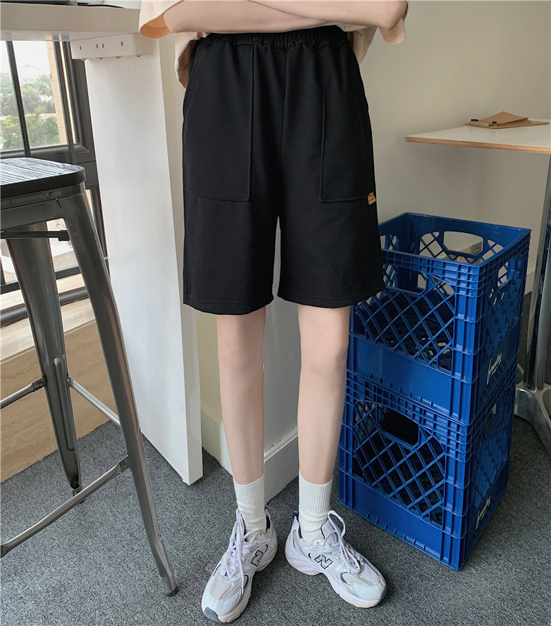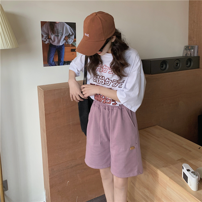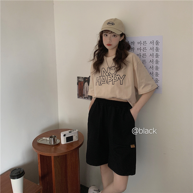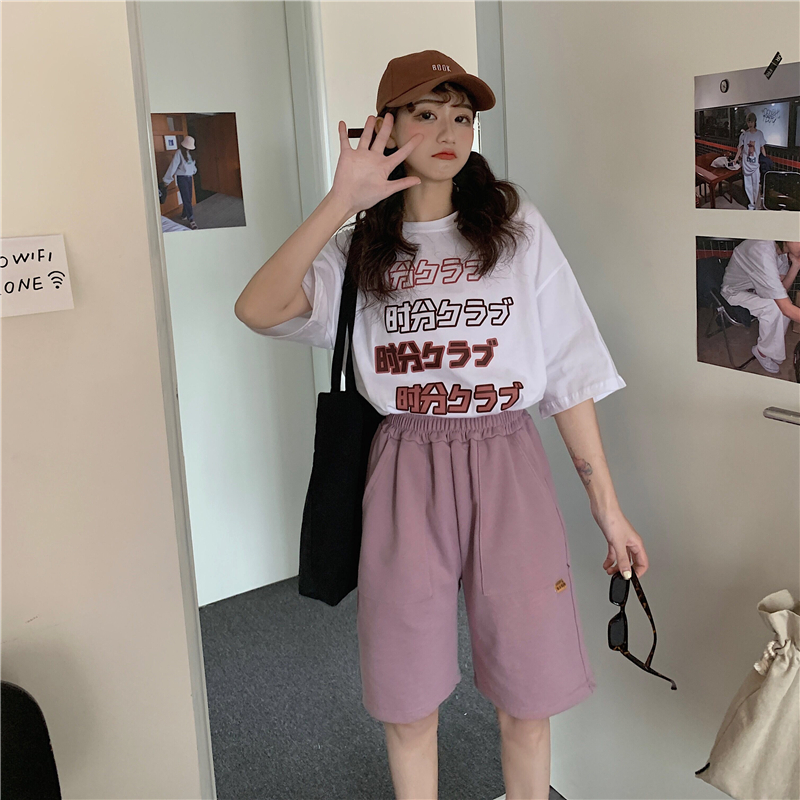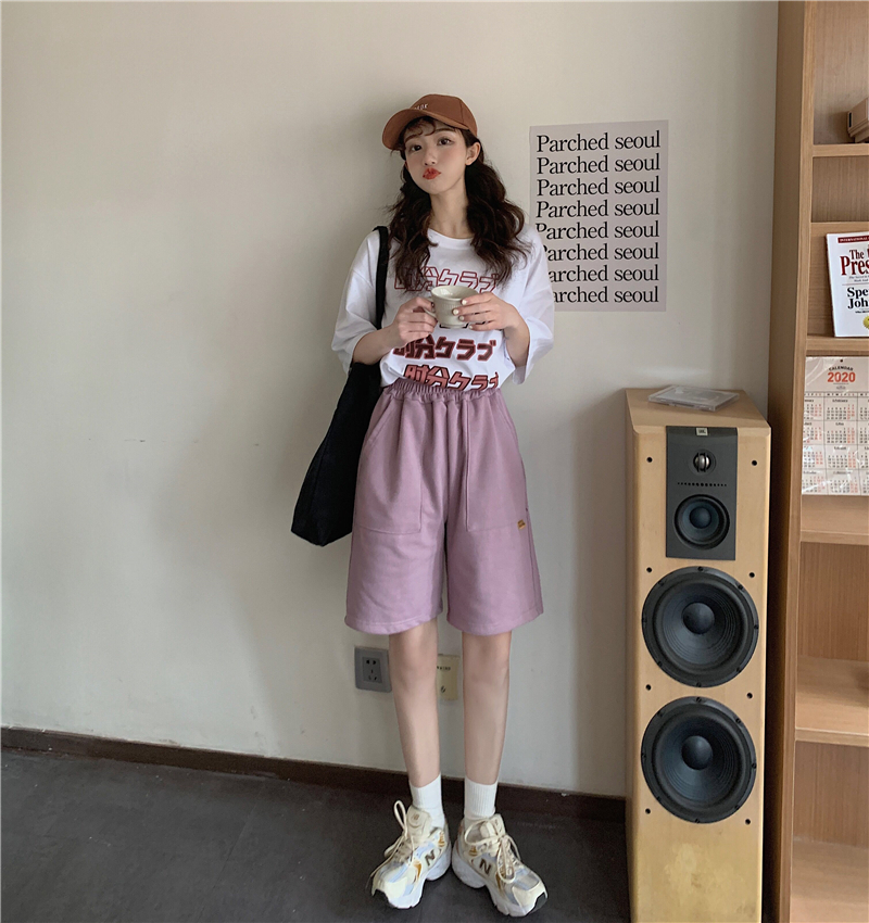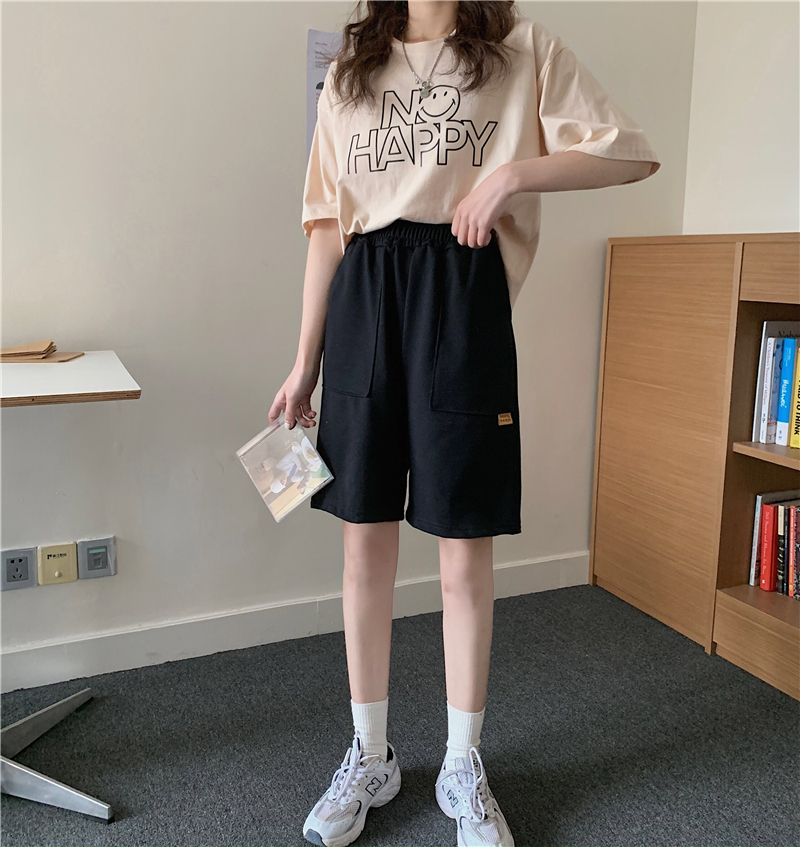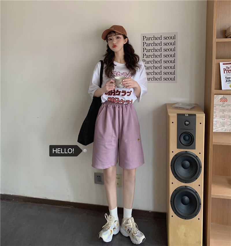 灰色運動闊腿休閒短褲女夏高腰寬鬆直筒褲子五分褲五分褲2023年新款
