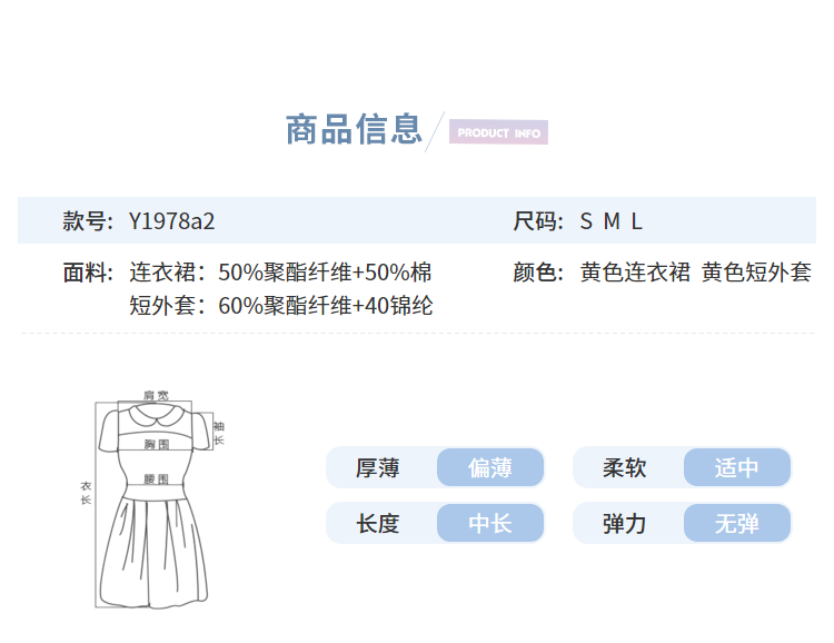 顏色分類 黃色洋裝,黃色短外套,白色連衣裙
